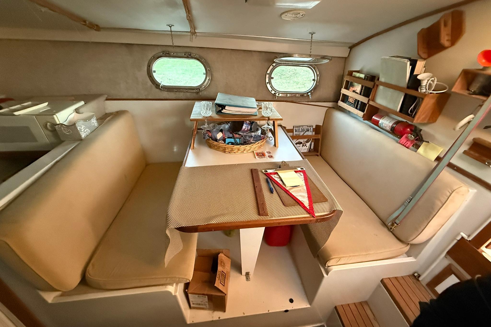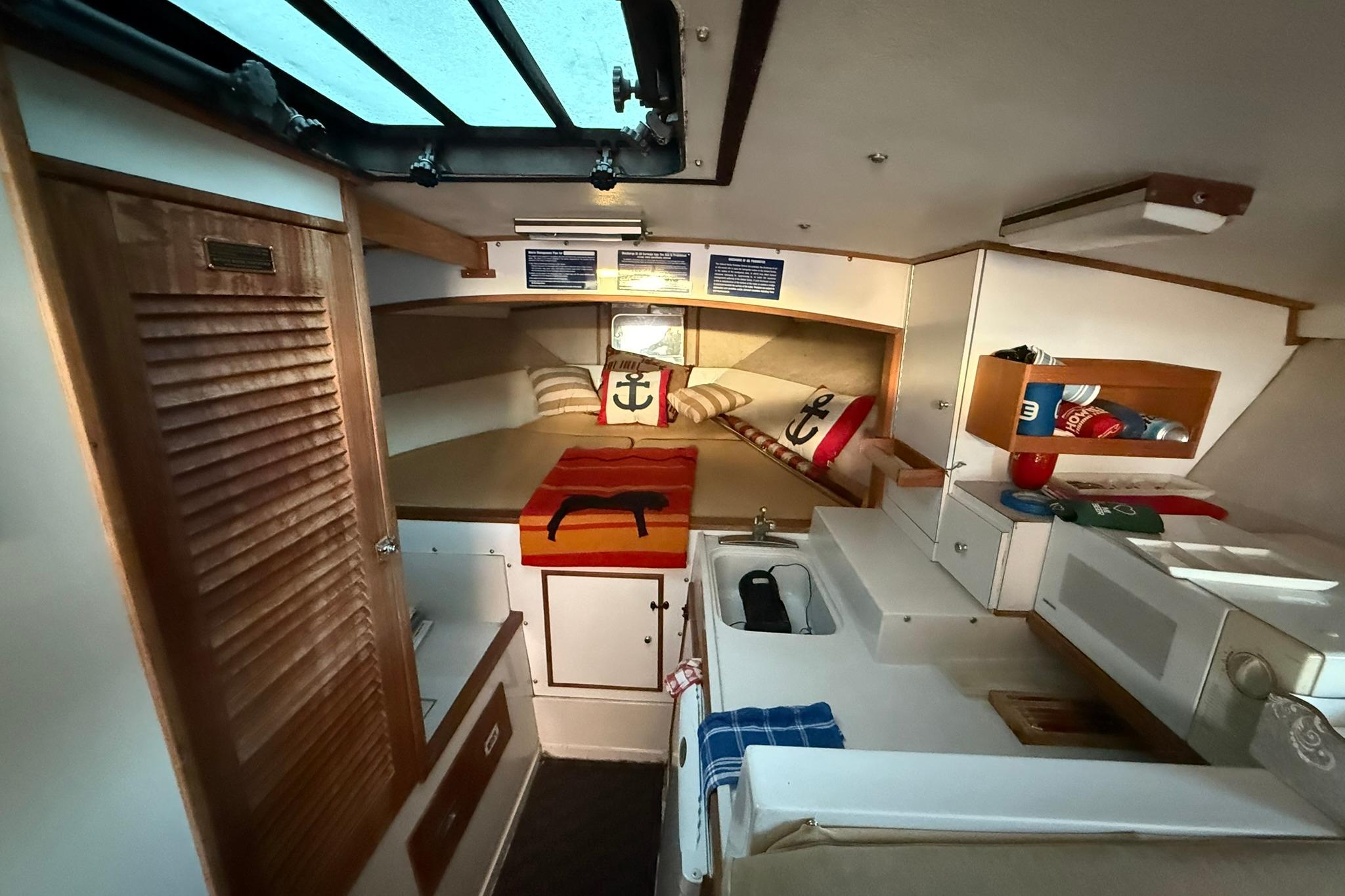 - 2021: The hull sides were professionally painted with stunning blue AwlGrip, complete with a new boot stripe.