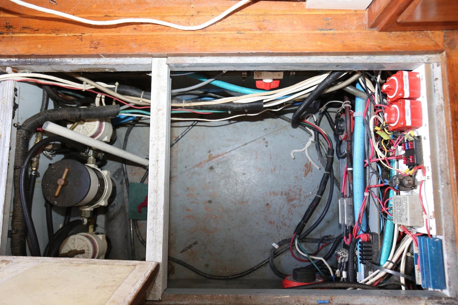Wiring, switching and plumbing in place for wind and diesel generators since removed.