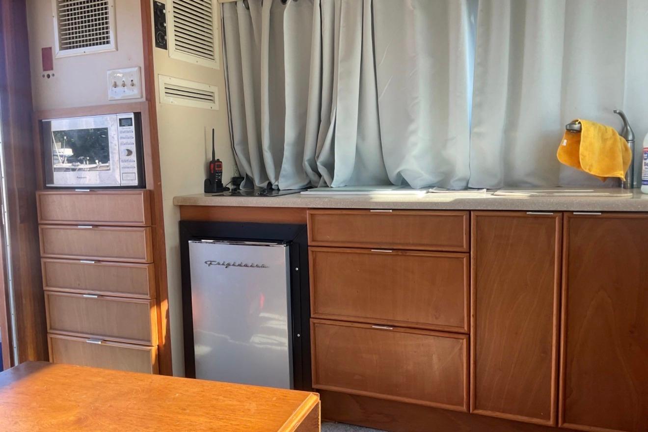 Salon has been upgraded with new galley, storage and carpet
