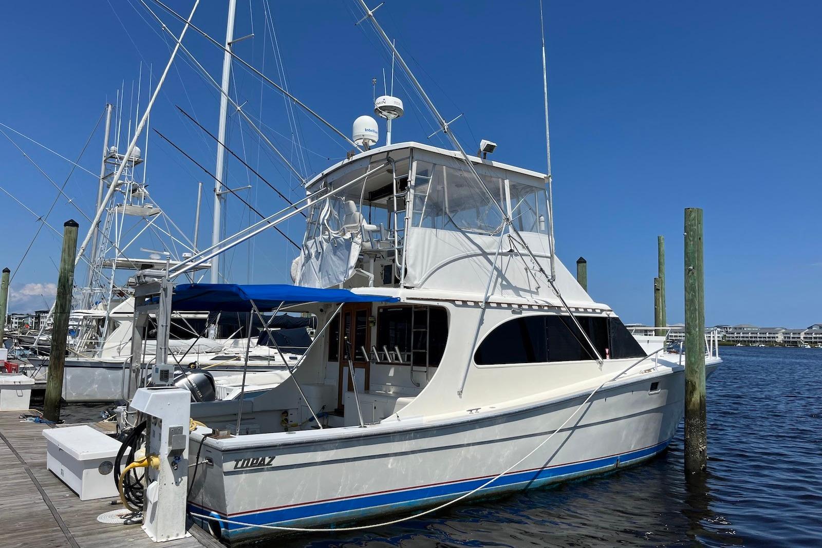 “Huntress” is a 1989 Topaz 44’ Sportfisherman. She is a limited production, offshore-ready vessel built with durability, performance and functionality in mind. Known for their solid fiberglass construction and wide beams, the Topaz 44 delivers a smooth stable ride, and is suitable for serious fishing, diving or extended cruising. This particular vessel has seen several thoughtful upgrades that enhance her reliability, comfort and versatility on the water. She is equipped with powerful Detroit 6V92 engines that cruise at 15-17 knots at two gallons per mile, Northern Lights generator and much more.