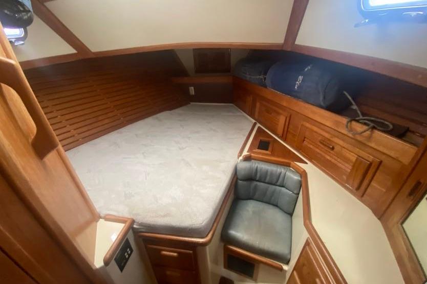 The roomy aft stateroom features a large 7? Double berth, abundant storage, private head access and HVAC. There are four ports allowing plenty of light and ventilation.