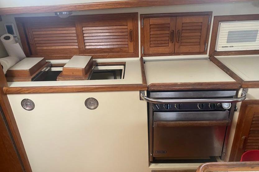 Her voluminous salon and two cabin, two head layout easily accommodates a crowd for extended cruising, while the large full galley will please the serious chef. Pacific Seacraft's use of quality components and joinery is evident. Her traditional interior design is timeless and attention has been paid to the details expected for long blue water passage making.