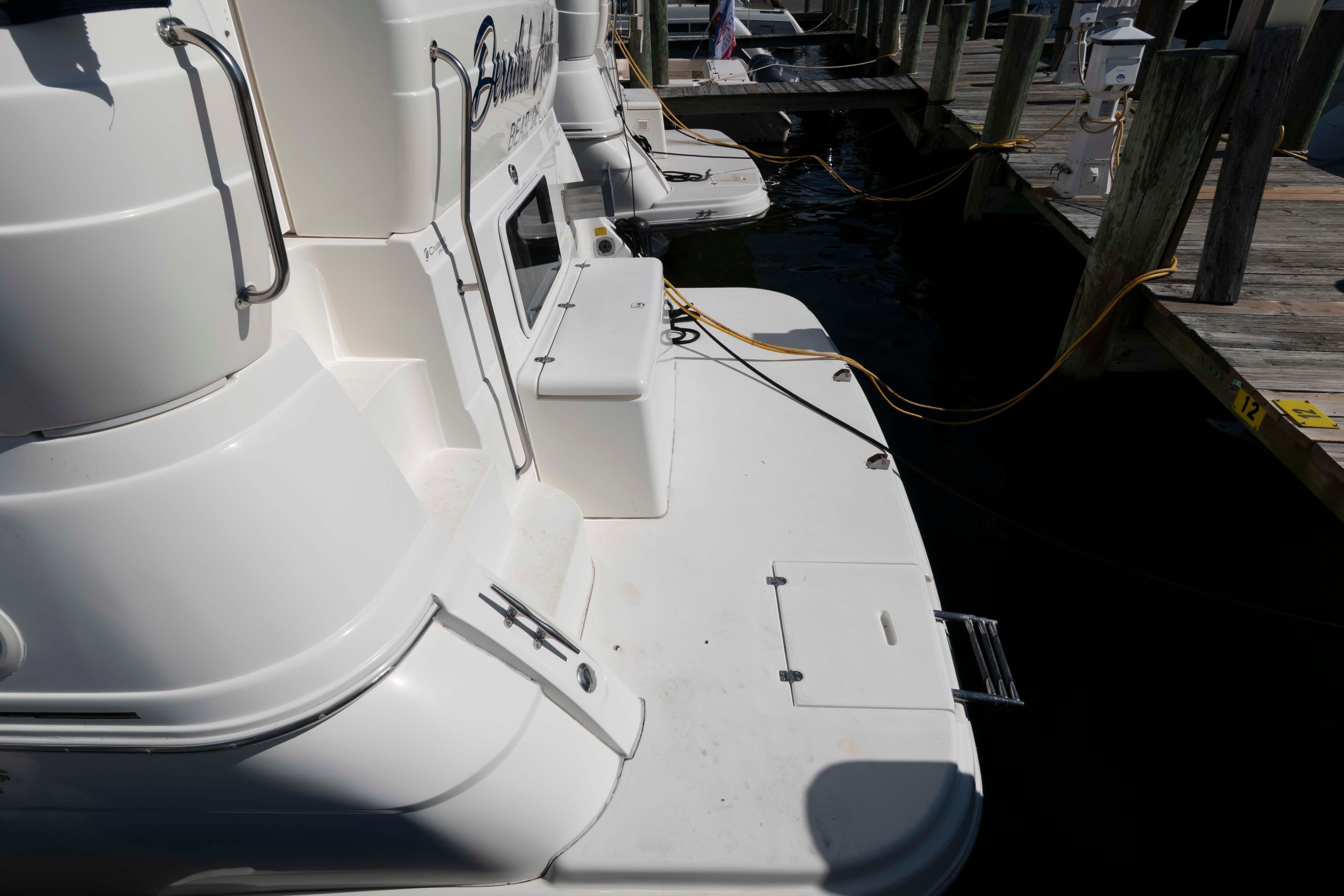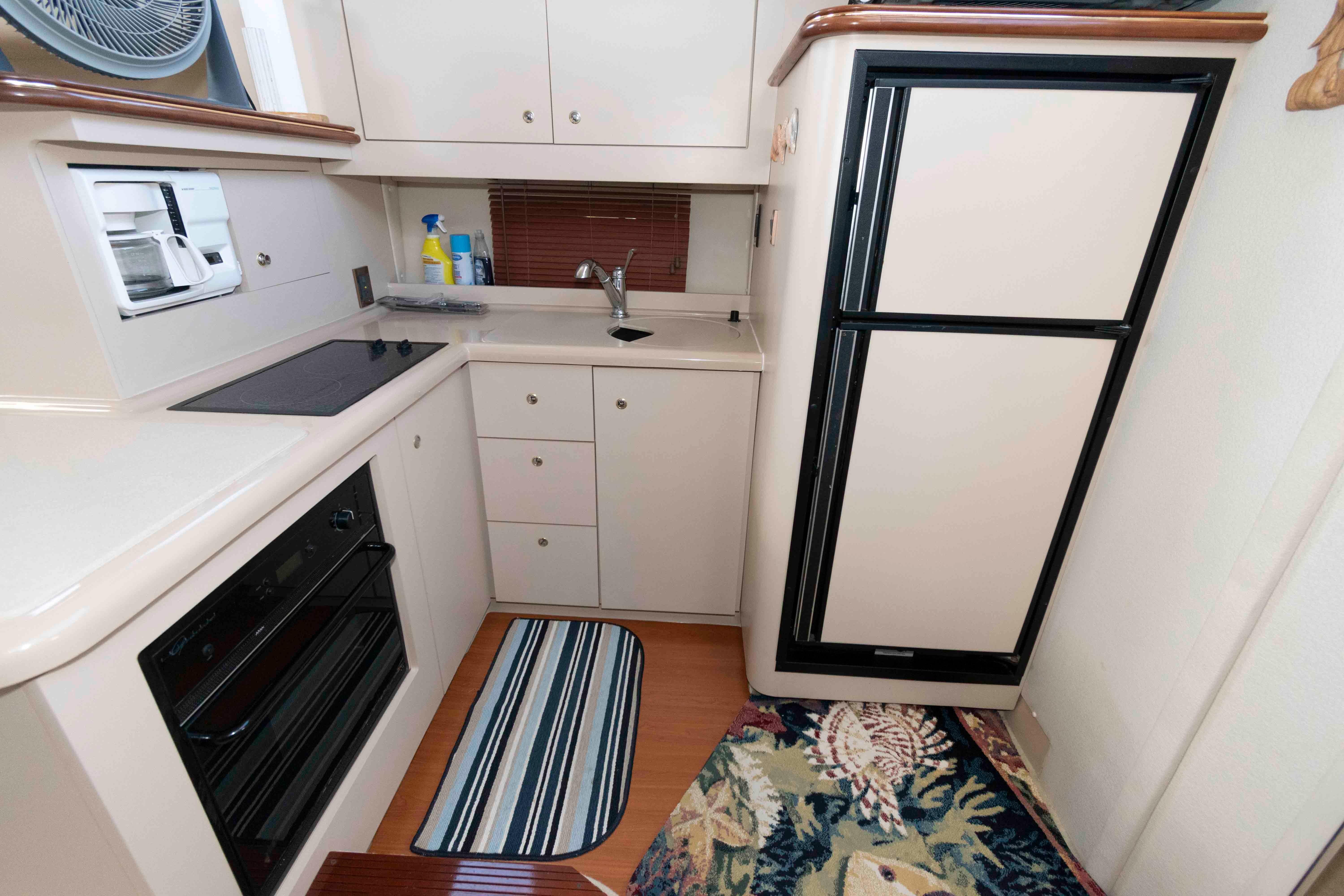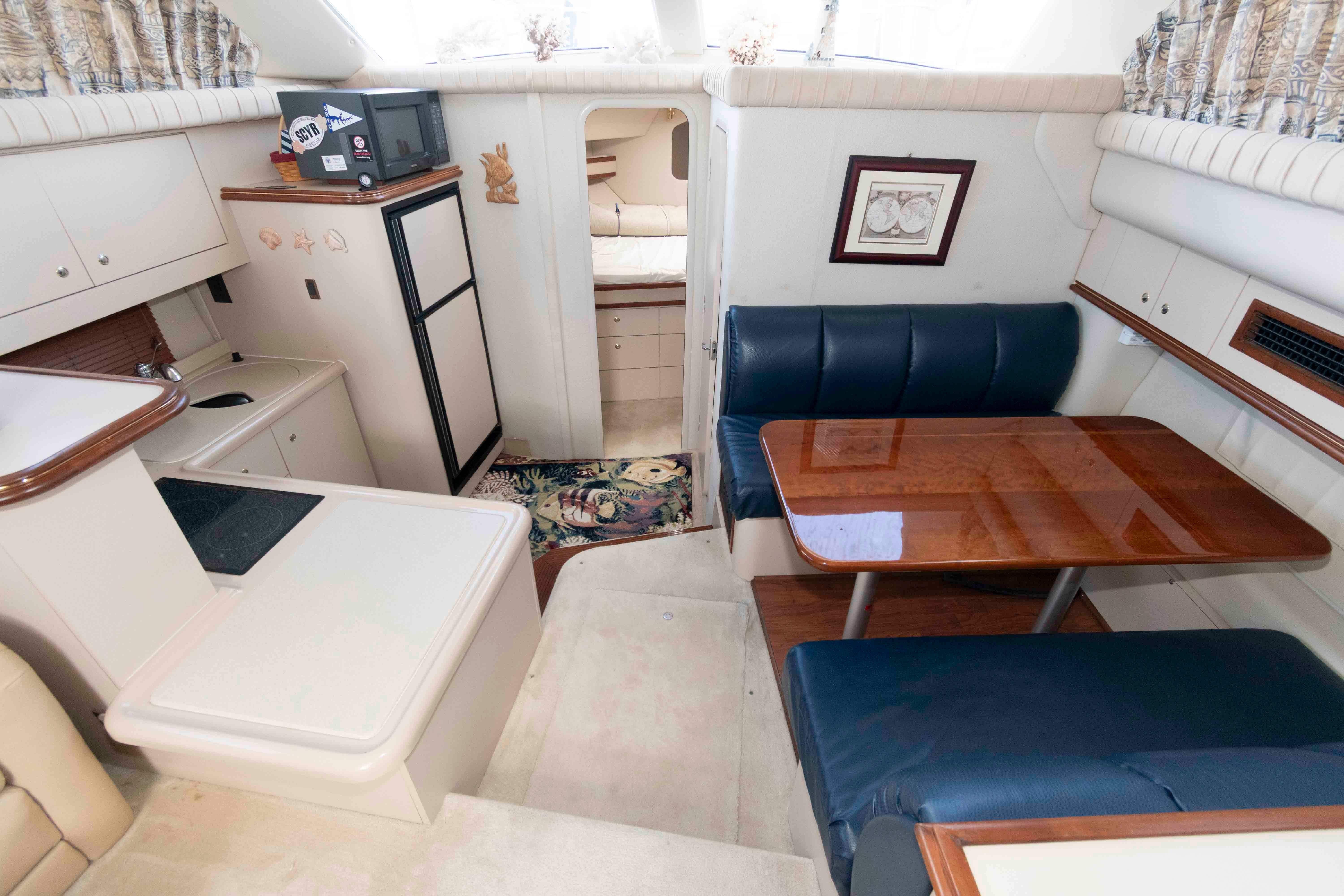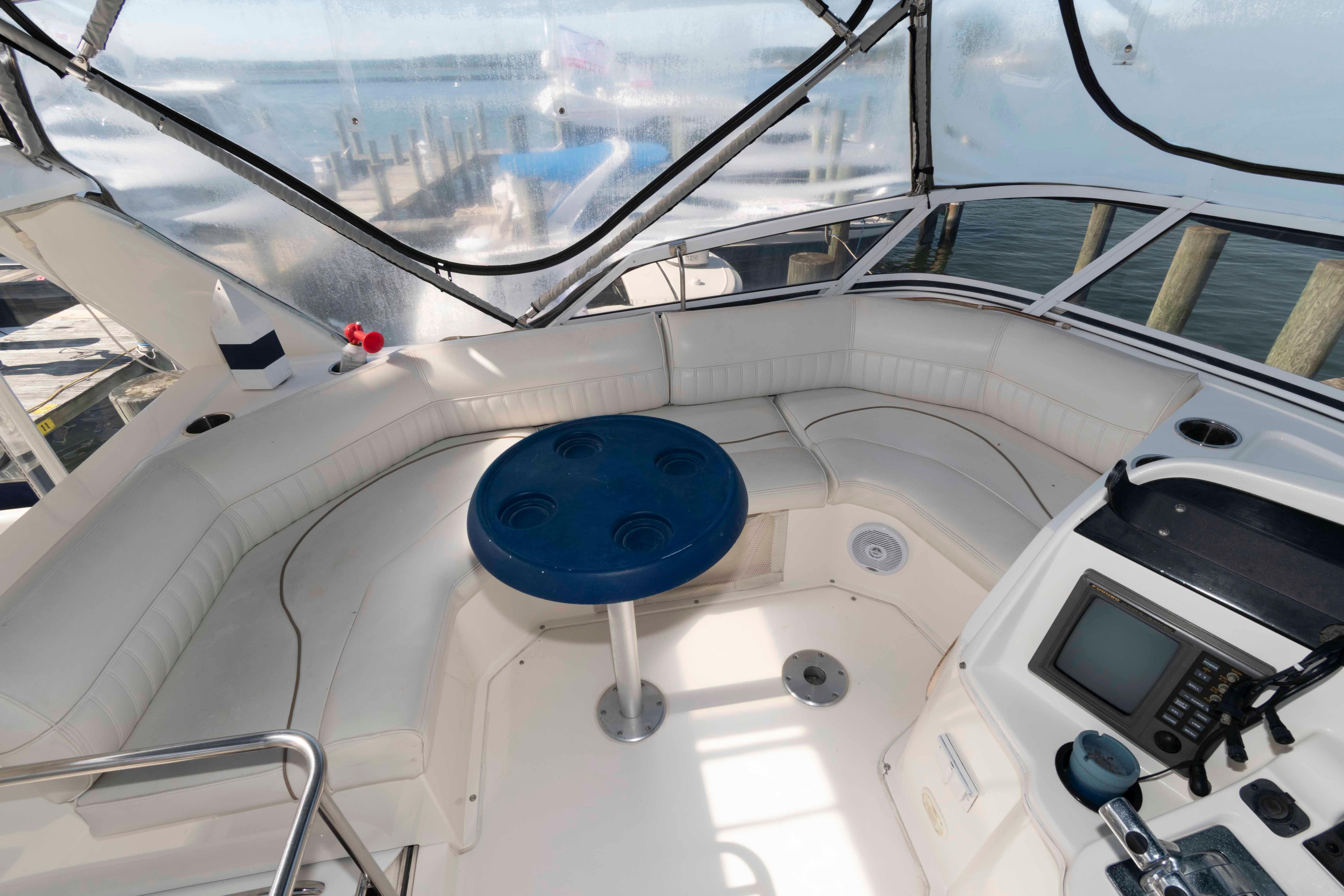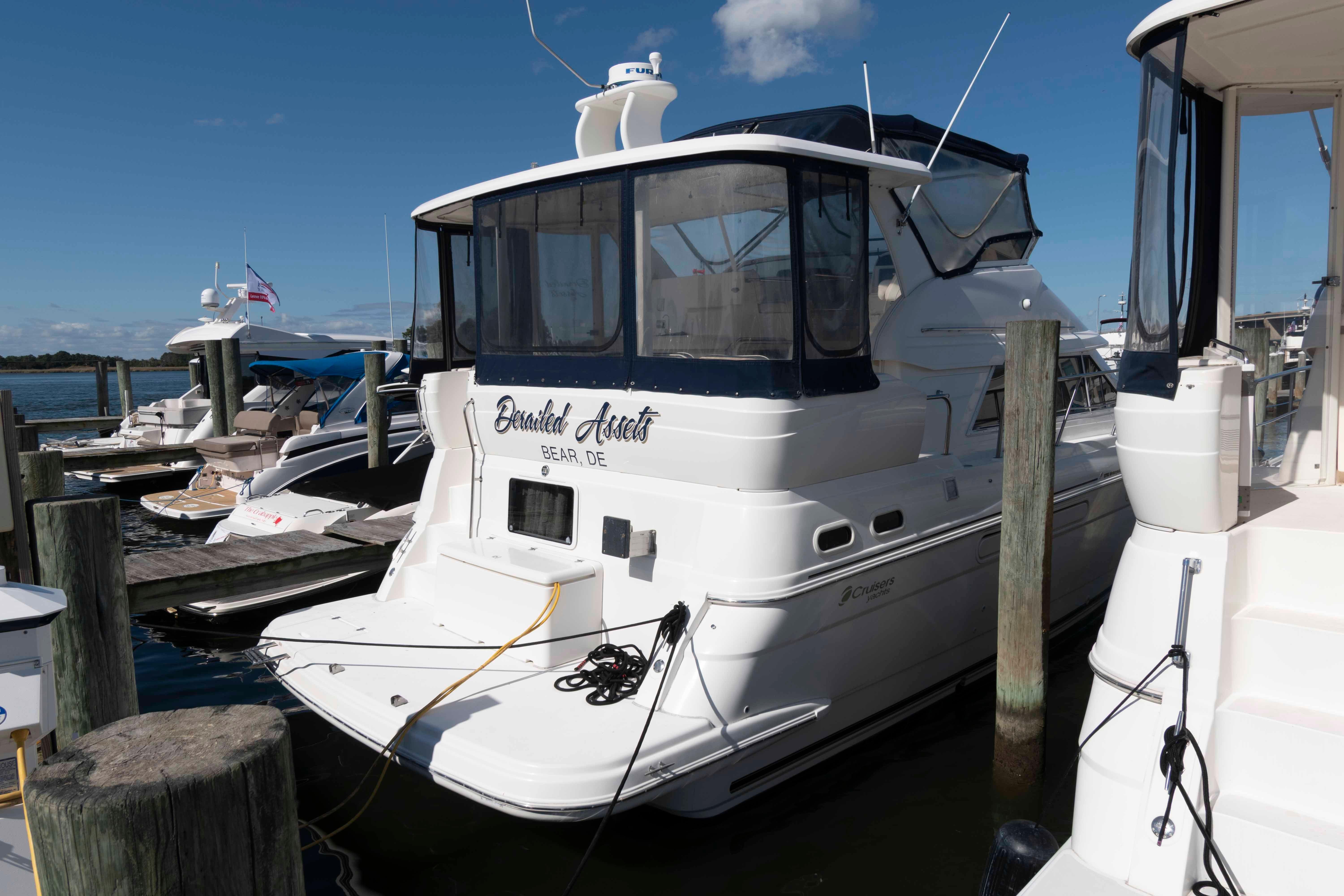Cruising comfort for the whole family is taken to new levels with the Cruisers 3750 Motoryacht. This deluxe aft-cabin design offers smooth handling, excellent living space, molded-in steps instead of ladders, and all the comforts of home to make for a great experience in pleasure cruising. The ergonomically designed helm station offers paired gauges, accessible controls, and room for additional electronics. The 3750's aft deck features optional wing doors, a well-appointed wet bar, plenty of space for relaxing or entertaining on board, and convenient molded-in steps to all areas of the boat and swim platform. This cruiser's bright, spacious salon features a booth-style dinette - double berth to starboard, a galley to port, and 6-foot, 6-inch headroom throughout. In addition, her full-service galley includes a large refrigerator and freezer, microwave oven, electric stove, as well as impressive counter and storage space. The master stateroom aft boasts a large island double berth with inner spring mattress and generous storage for cruising vacations, whereas the forward stateroom offers a large double berth and ample storage space. The master head, part of the aft-cabin suite, features standing headroom, a large vanity and sink and, as a special touch, a bath tub with shower; the forward head includes a shower and standing headroom.