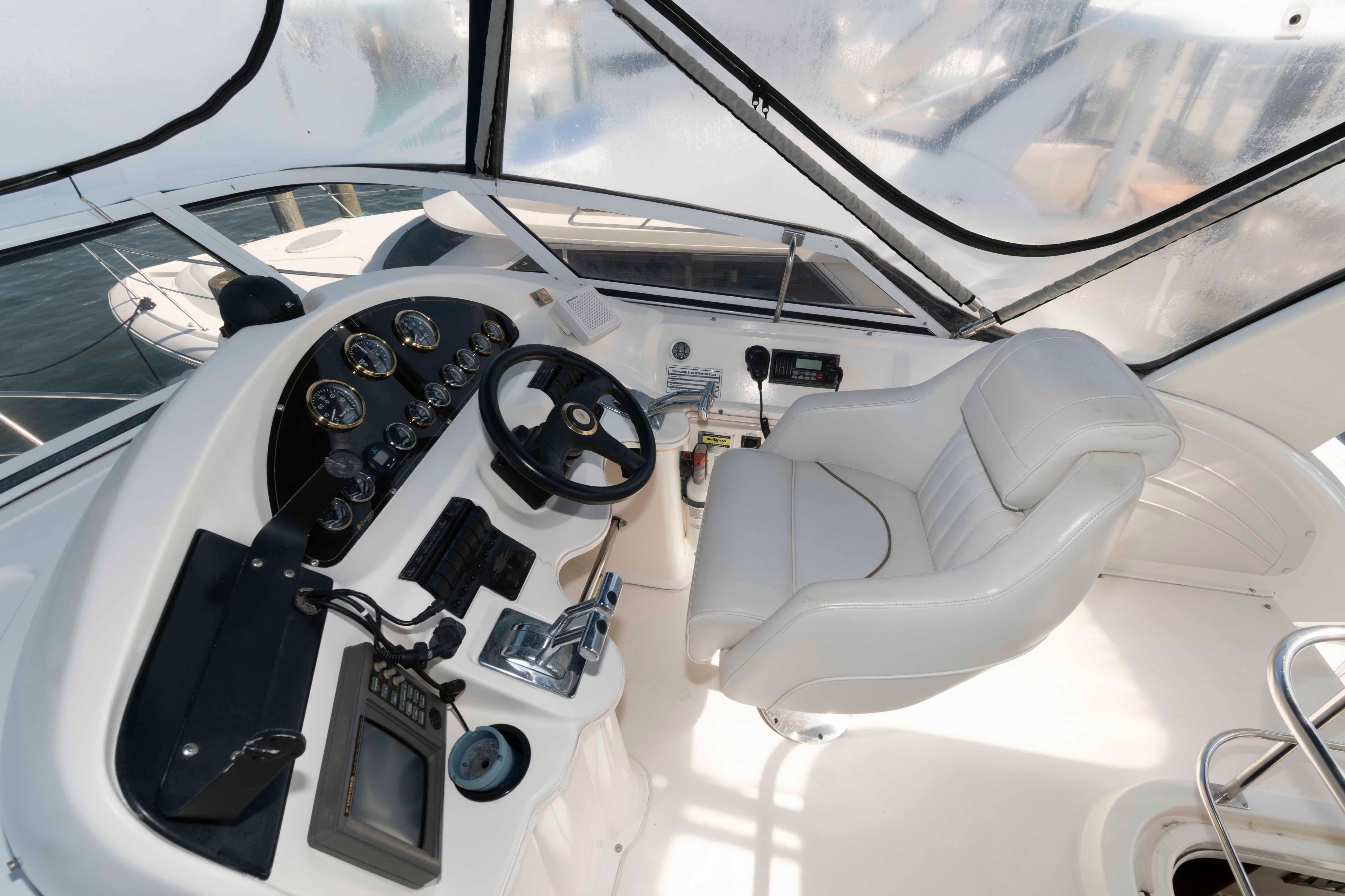 Cruisers 3750 Motoryacht Specifications - Standard Equipment - Hardtop with wing doors (includes front - side - aft curtains) - Privacy cover, windshield - Top, Bimini (includes front - side - aft curtains) - Berth, double, forward - Berth, island, aft cabin - Dinette - double berth - Helm seat, custom - Lounge, flybridge - Sofa - sleeper, salon - Air conditioner - heater (includes second dockside wiring outlet) - Bulkhead and door, forward stateroom - Carpet cover, cabin , acrylic snap-down - Carpeting, cabin - Fiberglass galley top w- solid surface inlays - Hot water system, 20 gallon (75.8 l) w- engine heat exchanger - Microwave oven (N-A with oven) - Refrigerator - freezer - Sink - Skylight, ventilation with screens - Stereo, cassette w- remote, 120 watt - Stove, electric 2-burner - Table, cabin - Telephone wiring, jack and dockside receptacle - Television w- remote and antenna, salon (N-A in 220V) - Head, private compartments - Head, VacuFlush - Pump, shower, sump - Shower, head compartments, 2 - Tub, master stateroom - Vanity with sink, head compartments - Arch, radar, aluminum w- arch lights - Battery, isolator - Battery condition monitor - Battery charging system - Bonding system - Bottom paint, antifouling - Cabin door - Cabin walk-around - Carbon monoxide detectors - Carpeting, cockpit - Carpeting, bridge - Dockside water inlet - Dockside wiring, 115V, 30 amp - Dockside wiring, second outlet, 30 amp - Electrical master panel, AC-DC with voltmeters and function indicators - Fire extinguisher (4) - Fire extinguisher, automatic, gas engines - Fire extinguisher, automatic, w- engines shutdown, diesel engines - Fuel system, crossover - Generator, 7.0 kW Kohler, gas (N-A in 220V) - Generator, 9.0 kW Kohler, diesel w- FWC (N-A in 220V) - Generator, 6.0 kW Kohler, gas (N-A in 220V) - Generator, 8.0 kW Kohler, diesel (220V only) - Ground fault interrupter outlet - Horn, dual trumpet air - Ice maker, cockpit - Instrumentation lights, bilge (4) - Lights, cockpit courtesy - Mufflers - Navigation lights, international - Propellers, bronze (Nibral std. w- diesel) - Pulpit, bow - Pump, bilge, automatic (2) - Radar, pedestal, aluminum - Rail, bow and stern, welded s-s - Rope locker, bow - Shaft logs, dripless - Shower, cockpit - Steering wheel, tilt, non-magnetic - Steering, hydraulic - Swim platform, extended, w- boarding ladder - Spotlight, remote control, 175,000 candlepower - Trim tabs - Wetbar, cockpit - Windlass, remote control w- foredeck foot switch, includes anchor w- 150' 5-8 line and 6' 5-6" chain - Compass - Hourmeters (2) - Synchronizer - Depth sounder Cruisers 3750 Motoryacht Optional Equipment - Cover, flybridge - Lounge cushions, sundeck, flybridge w- table - Sofa w- double incliner - Cherry veneer interior with upgraded lighting and fixtures - Coffee maker (N-A in 220V) - Mattress(es), inner spring (std. in master stateroom) - Microwave - convection oven (N-A in 220V) - Oven (N-A with microwave - convection oven) - Sheets, custom-fitted - Stereo, single CD player w- helm remote, 20 watts - Changer, 6 disc CD - Speakers, extra pair w- amplifier in cabin or cockpit - Subwoofer w- watt amplifier and 2 extra speakers - Television w- remote control, aft stateroom connected to VCR (N-A in 220V) - Television w- remote control, forward stateroom, connected to VCR (N-A 220V) - Television wiring and antenna - Towel and decorator pillow package - Vacuum system, central - Water purification system - Macerator pump-out for holding tank - Y-valve and overboard discharge - Batteries - Cooling system, engine, freshwater (std. on diesel, Merc Horizon, Crusader 7.4 HO) - Cradle, storage - Davit, swim platform - Generator, 10.0 kW Kohler, gas (220V only) - Oil change system - Seawater, strainers (std. w- diesel engines) - Storage, box, swim platform - Table, bridge - Radio, VHF Engine Options MerCruiser - T 7.4 L MPI, 310 hp (230 kW), IB - T 7.4 L MAG MPI Horizon, 380 hp (283 kW), IB, freshwater cooled - T 8.2 L MPI 400 hp (298 kW), IB Volvo - T TAMD63P diesel 370 hp (276 kW), IB Crusader - T 7.4 MP, 320 hp (239 kW), IB - T 7.4 HO MP, 385 hp (287 kW), IB Platinum, freshwater cooled - T 8.2 MP, 405 hp (302 kW), IB, freshwater cooled Available Colors - Mineral Sand - Monaco Blue - Majestic Burgundy - Magna Green