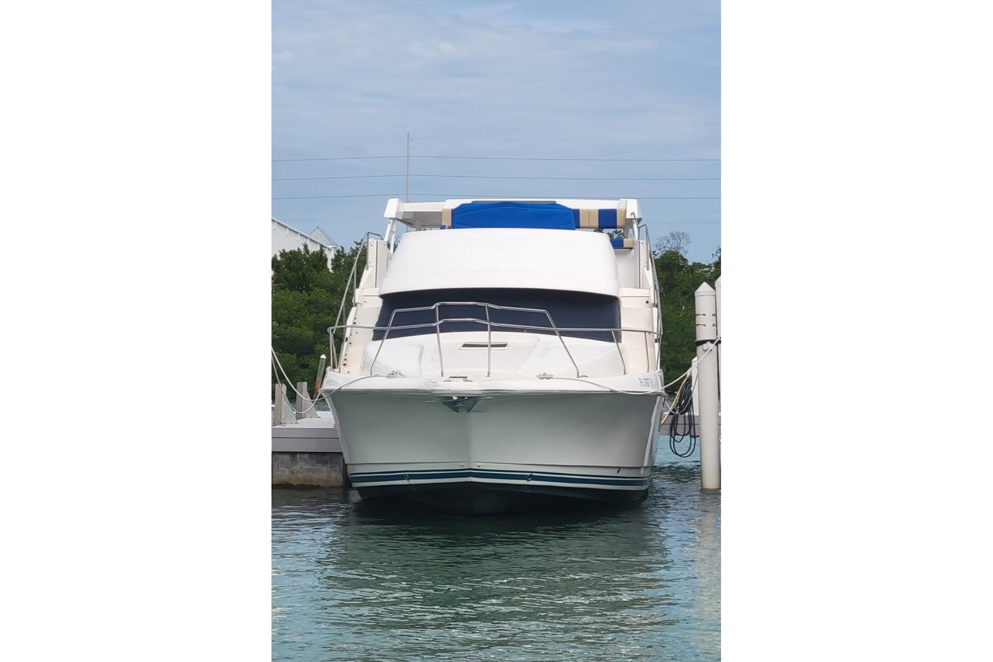 The Silverton 392 Motor Yacht, with its innovative “SideWalk” flybridge steps, offers much improvement in safety, space utilization, and mobility. Never before has going forward been so easy and so safe. High bulwarks, sturdy rails, and wide steps allow passengers to move easily all around the boat. The added benefit lies below in the gunnel to gunnel salon that rivals boats 10 feet longer. By opening up the salon, both full-width and full-length, owners can entertain, dine, or just relax in this truly spacious atmosphere. Fore and aft are equally sumptuous staterooms, and private heads with stall showers. Both staterooms even have standard innerspring mattresses for sleeping comfort.