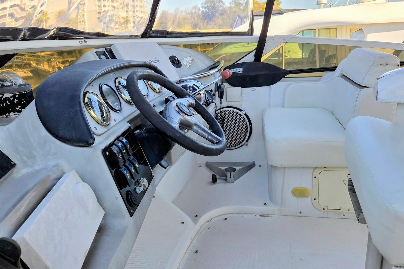 No mechanical or structural issues known. The interior of this boat is very clean and nice. The flybridge needs strata glass replacement completion and captain's chair reupholstered. Contact broker for more details.