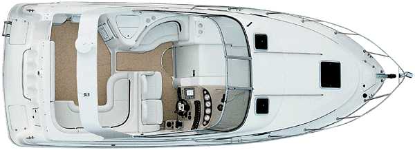 The Chaparral Signature 300 is an unforgettable boat. Maybe it's the way the radar arch blends with the Euro-styled deck contours. Maybe it's the tasteful two-tone gelcoat graphics, or the attention to detail. Power options include a variety of twin small-block V-8s. In the cockpit, the rear bench lifts up for full transom access. Standard extras include a full camper canvas package, five opening ports, a fire extinguishing system, trim tabs, cockpit lighting, and a sure-grip wood grain tilt steering wheel. Belowdecks is a home away from home. Buyers can choose from four different combinations of vinyl and cabin fabrics which have been carefully color-coordinated to the exterior graphics option of choice. Scotchgaurd protection makes cleanup of even the headliner a breeze. Six adults can sleep comfortably in a spacious cabin with 6 feet 7 inches of headroom. Thick, plush, 44-ounce carpeting feels luxurious and is designed to last. The head features standup headroom, a demand water sink, and considerable storage. The galley is striking with its sovereign cherry cabinetry and tables. Features include Gibraltar countertops, an AC-DC refrigerator, an electric stove, a trash receptacle, and even a coffee maker. An opening port creates a feeling of airiness in the aft cabin, while lined privacy drapes fold neatly out of the way.