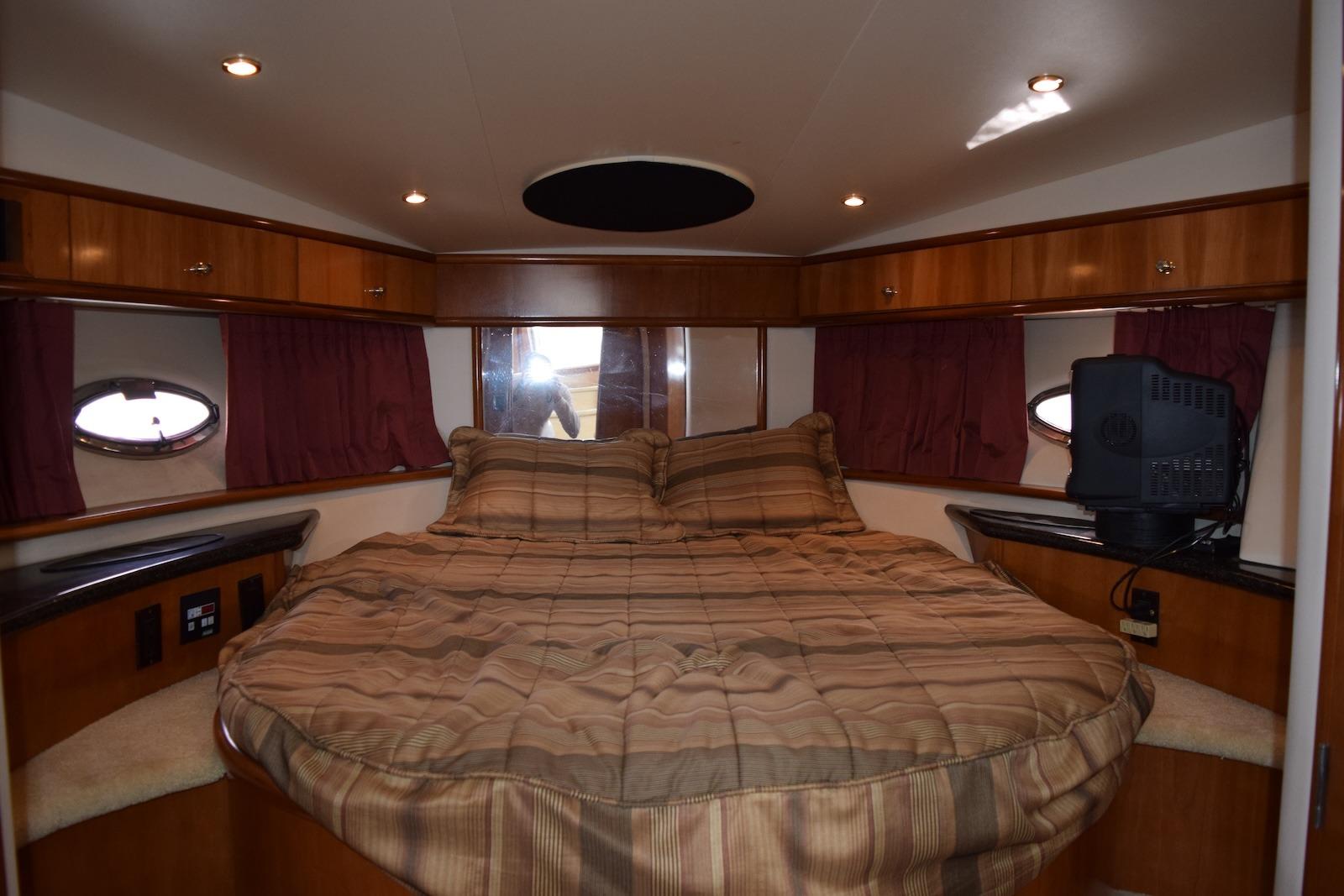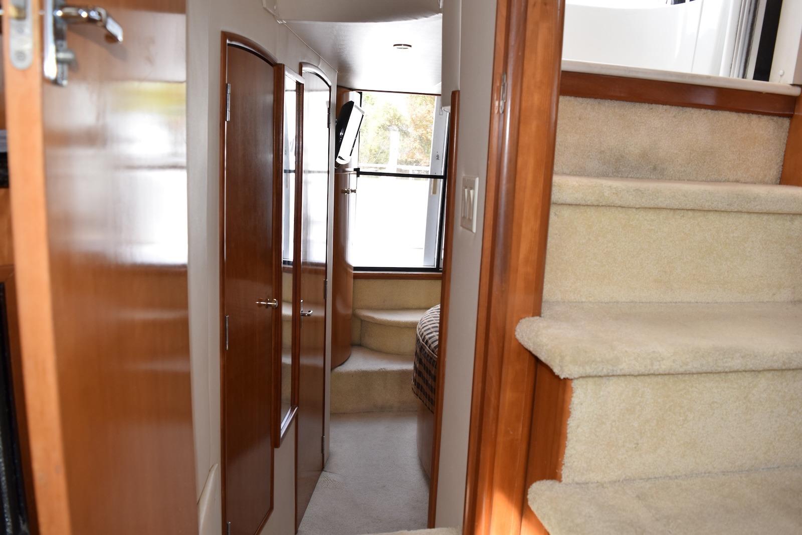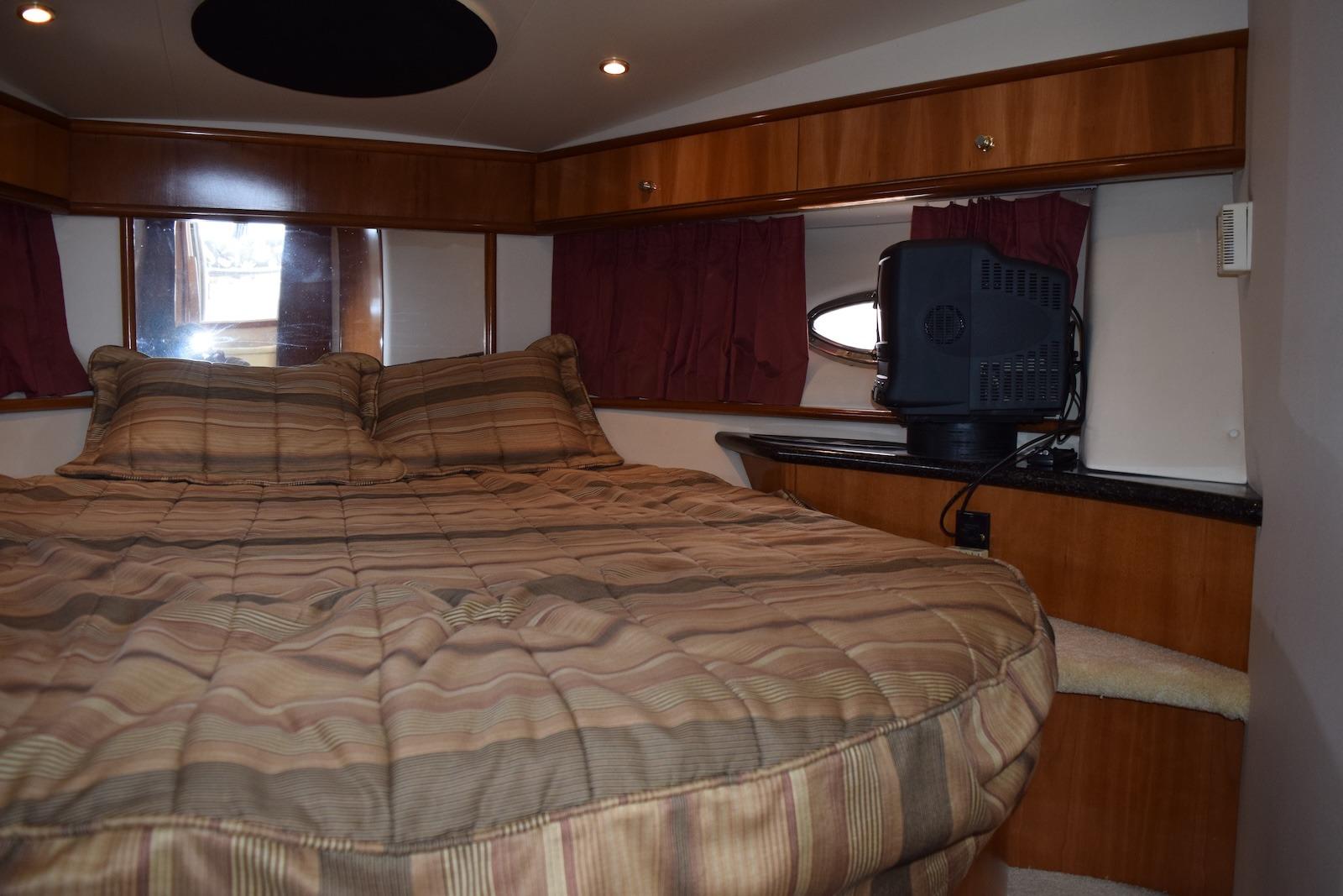 Additional DescriptionSALON - 110V outlets (3) - GFCI protected. AC and DC distribution panels. Cabin stairway - integral, with cherry wood hand rail. Carpet - beige, tufted cut pile, 65 oz., crush-resistant, 100% nylon. Designer decor. Endtables (2) - integral, solid surface top, at either end of lounge. Entertainment group - TV and VCR, with wiring for 2 speakers each in salon, master stateroom, and aft deck hardtop. Entrance door - acrylic, curved, sliding, handle lock, with interior screen. Floor access hatches - engine room and amidships bilge. Fresh air system - passive, with controllable overhead vents. Hardware highlights - brass/chrome. Lights (9) - halogen, overhead, recessed. Lounge - Flexsteel, chamois UltraLeather, with double incliners, 36" end, and corner extension. Miniblinds - decor-matched. Rocker light switches. Sofa - chamois UltraLeather, storage beneath. Solid surface countertops. Stereo speakers (2). Storage cabinets (2) - in aft bulkhead. Table - free-standing, elevating top. Telephone connector. Window vents (2). MASTER STATEROOM - 110V outlets (3) - GFCI protected. Bedside endtables - solid surface top, storage beneath. Berth - queen, inner-spring mattress, offset island. Carpet - beige, tufted cut pile, 65 oz., crush-resistant, 100% nylon. Cockpit door - sliding, tinted glass in aluminum frame, locking latch, inside deadbolt with flush-mounted handle, with interior screen. DC distribution panel - 12V safety systems. Designer curtains - decor-matched. Designer decor. Entrance door - secures closed, integral doorstop, stainless steel hardware. Hanging locker - cedar-lined, carpeted, 16" hanging bar, shelf, automatic light. Hanging locker - 17" hanging bar. Hardware highlights - brass/chrome. Lights (2) - halogen, reading, recessed. Lights (3) - halogen, overhead, recessed. Miniblinds - decor-matched. Portlights (2) - screened. Rocker light switches. Stereo speakers (2). Storage cabinets (4). Storage drawers (3). Telephone connector.