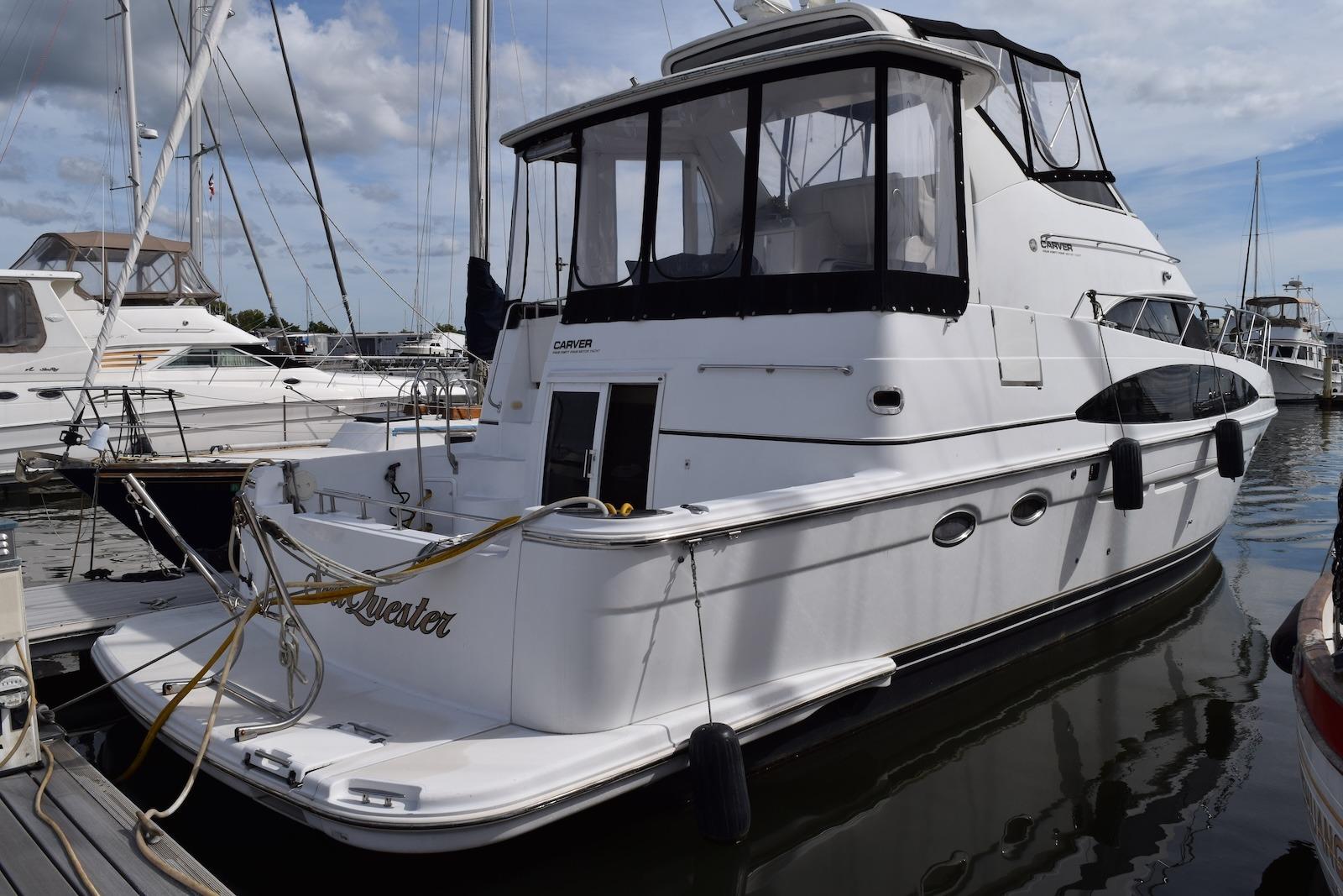 The owner purchased this Carver new in 2001 and has been very proactive with regards to engine maintenance and upkeep of the vessel. The diesel Cummins 370 motors have 1350 hours and the diesel Kohler 10kw generator has 1200 hours. Please watch the video to understand all details and current condition.