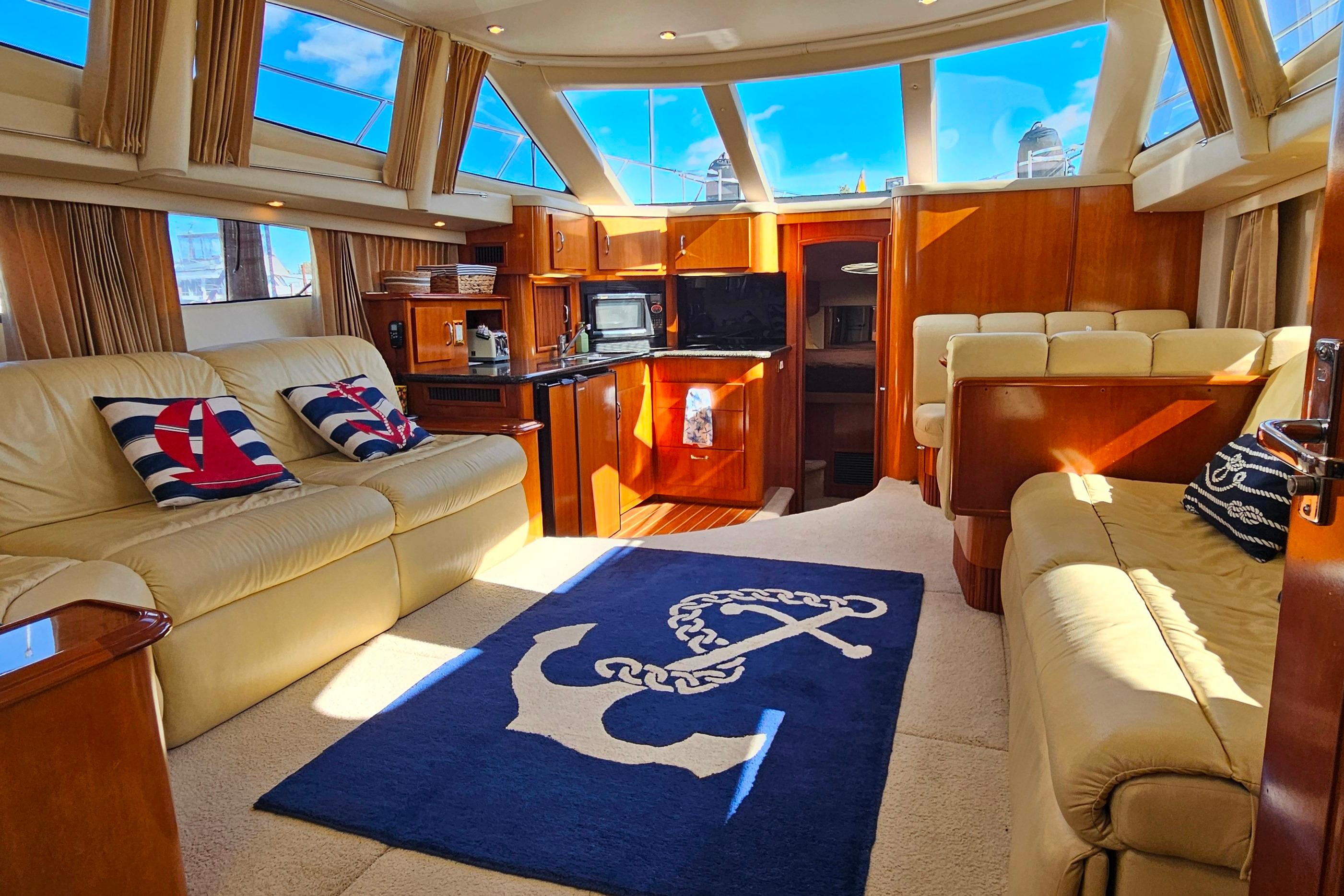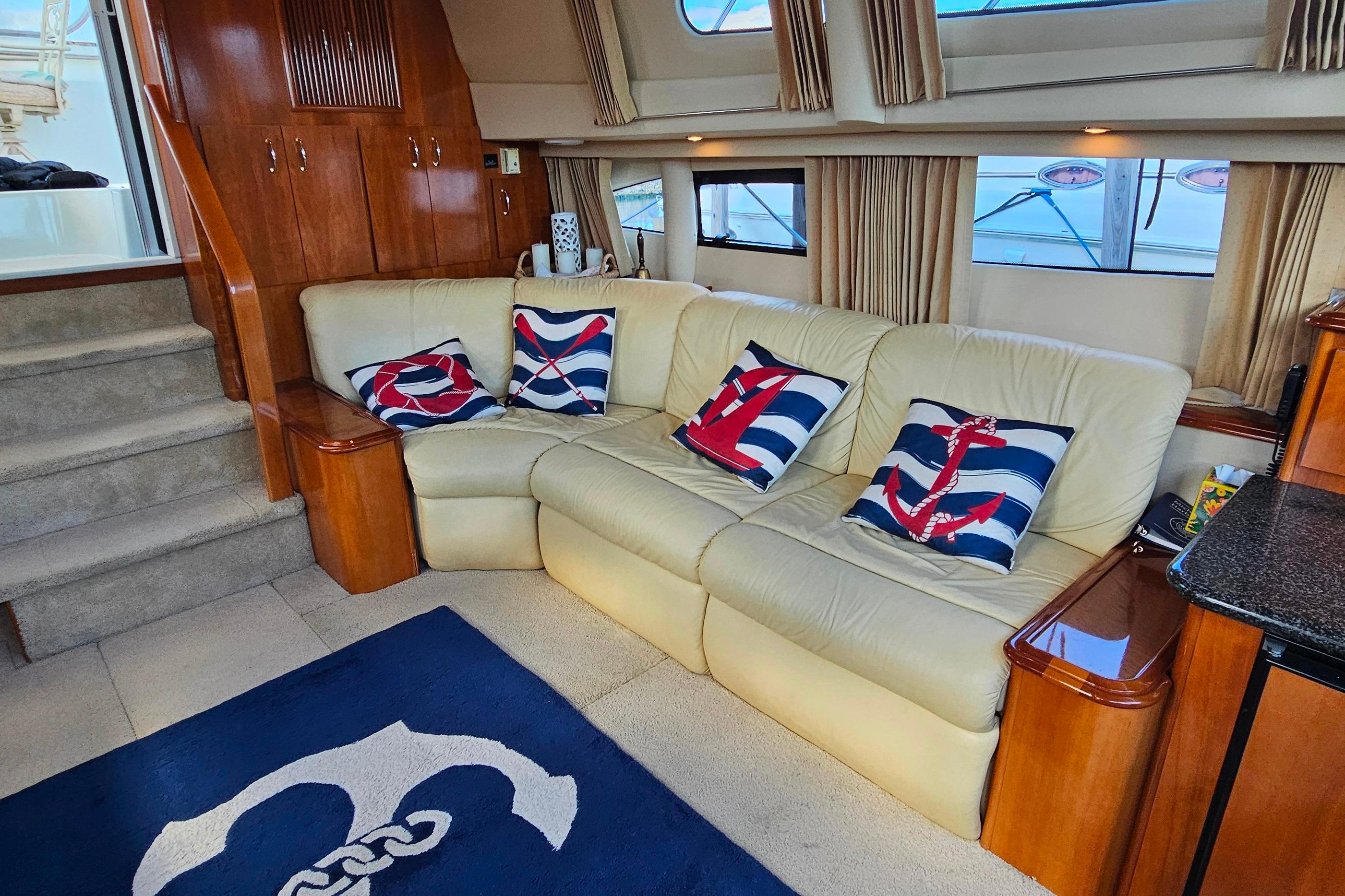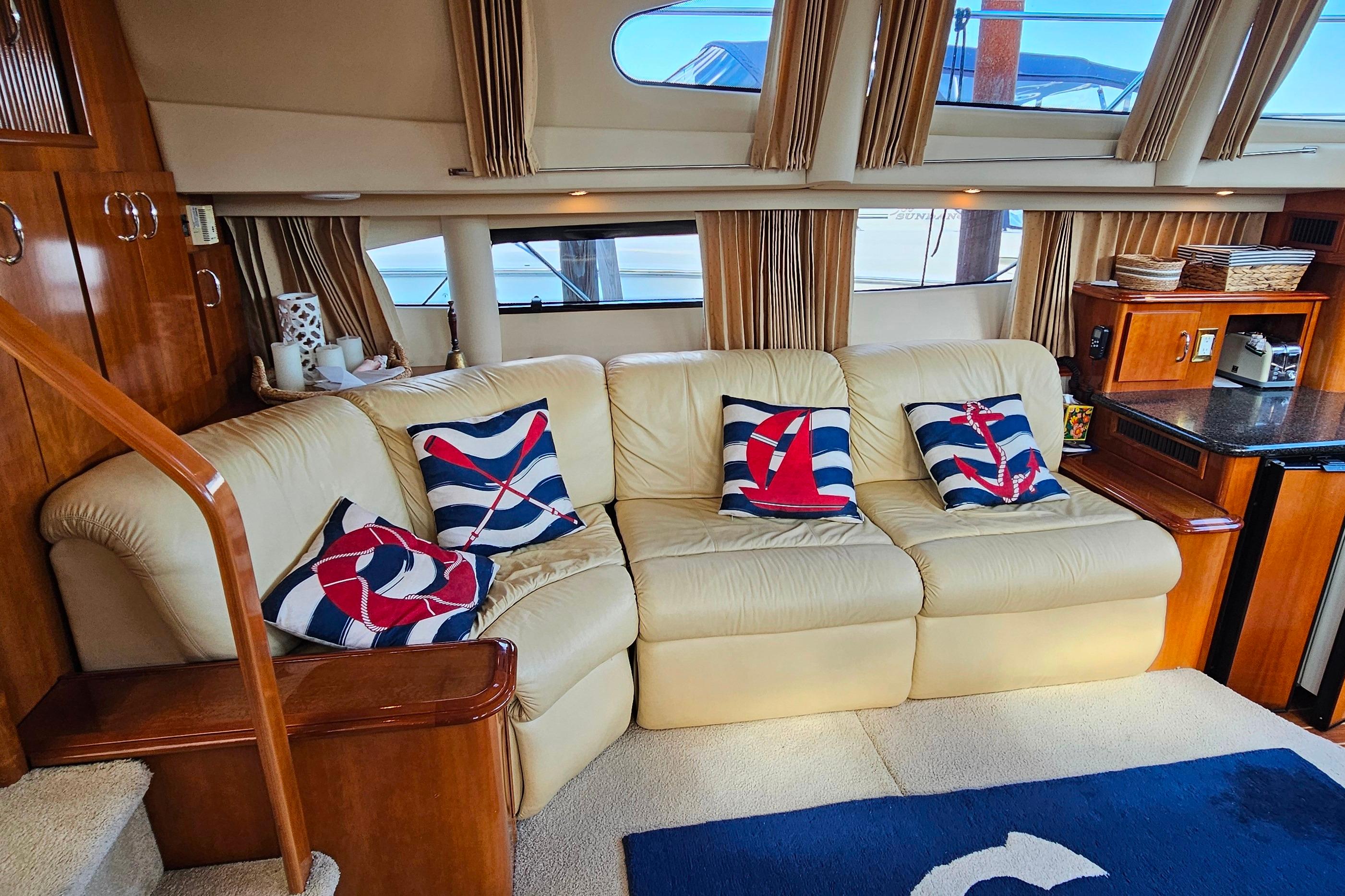 The Carver 444 Cockpit Motor Yacht combines the superb luxury and spaciousness of an aft cabin with exceptional contemporary styling and thoughtful design. Carver's signature raised walkdeck design also allows for a wider, much roomier cabin than other yachts this size. Combined with the way Carver united the salon and galley into one spacious and elegant "great room", this adds up to outstanding cruising comfort. The expansive great room features all sorts of amenities, from the sumptuous designer decor and UltraLeather sofa, to the beautiful yet practical solid-surface countertops. When it comes to sleeping accommodations, owners will welcome the unexpected luxury of two private staterooms, each with its own private head compartment. On the bridge, passengers can relax with the L-shaped lounge that seats five and the wetbar that provides convenient bottle storage. The elegant aft deck offers a hardtop that covers the entire deck, plus an electronics arch, and the convenience of an integral bridge stairway and wing doors. For even more fun, the large cockpit offers plenty of space to play.