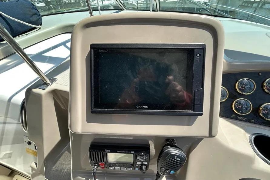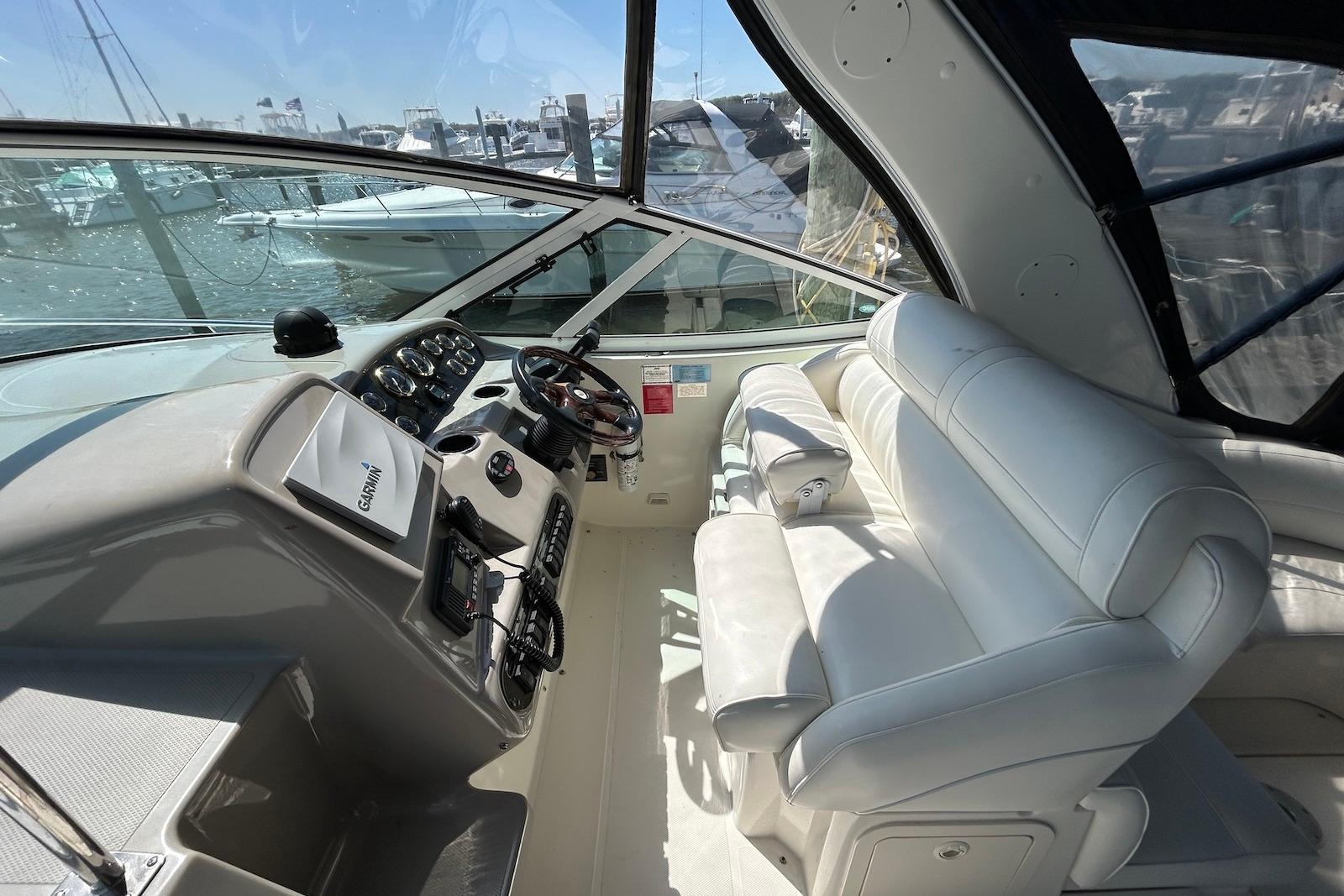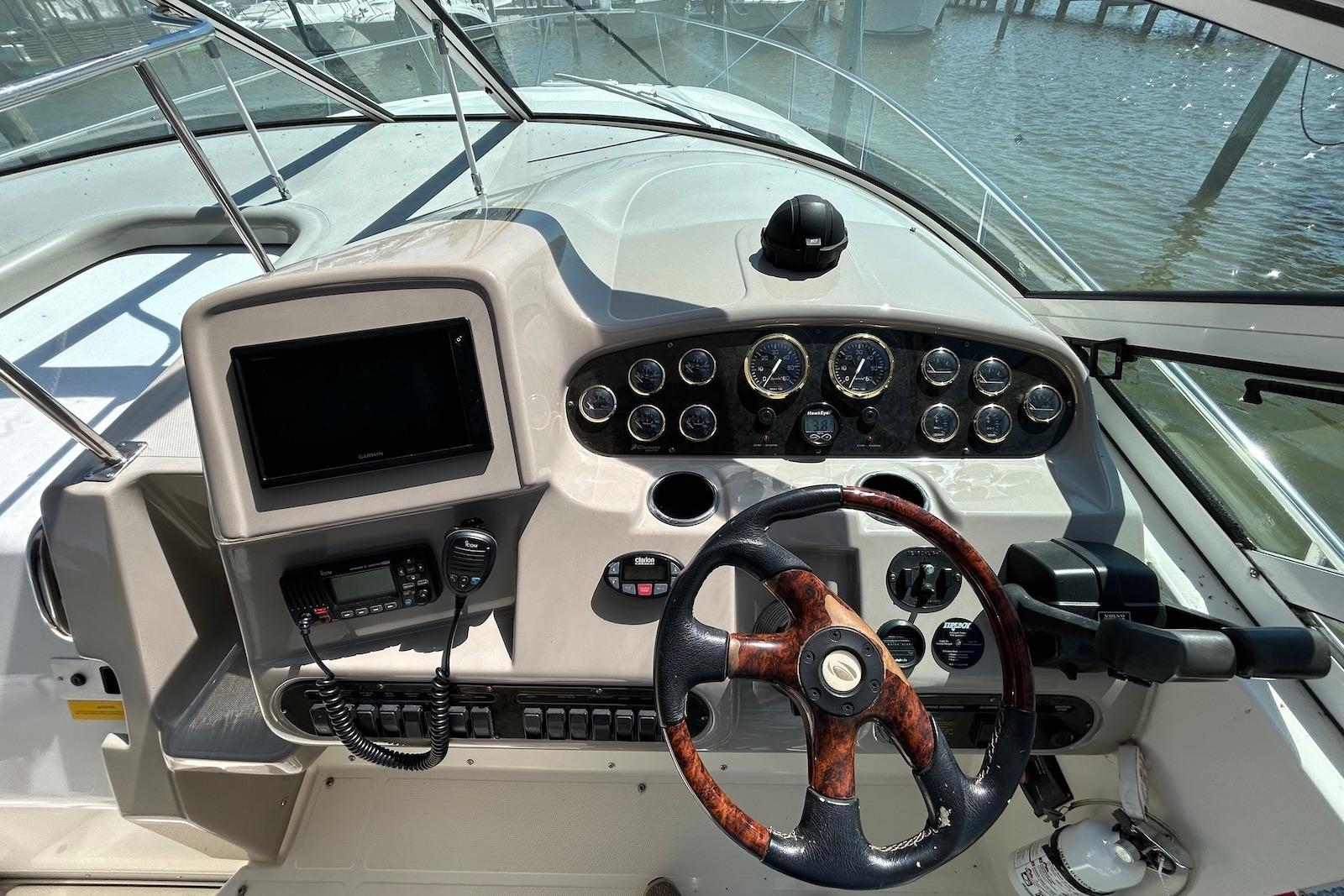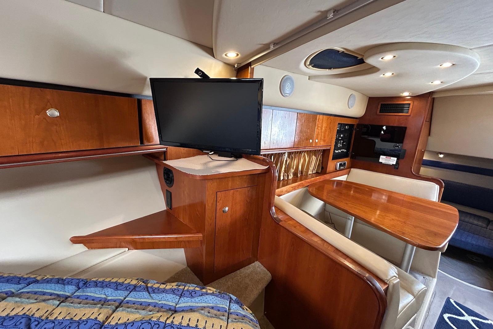 The Cruisers 340 Express offers unbeatable performance in an expertly designed, luxurious cruising package. Her interior accommodations will sleep five comfortably. The forward stateroom features a large double bed with easy access, and the stateroom can be closed off from the salon by a privacy curtain or an optional bulkhead and door. Aft, owners can select either a fixed double berth, maximizing overnight accommodations for guests, or an alternate layout with a circular settee that can also be converted to a double berth. With the settee layout, this area can effectively lengthen the salon into one wide open living space or, with the privacy curtain, it can serve as a comfortable midcabin. The facing dinette - or available crescent-shaped, convertible dinette - to starboard provides an additional berth. Located just to port of the companionway is a full-service galley with all the amenities, including a large refrigerator/freezer, microwave and double-burner electric stove. For additional onboard convenience while cruising or living aboard, the 340 also provides a feature unusual for a boat in this class: a spacious head with a large, separate shower stall and full standing headroom. Abovedecks, the 340 has a generous cockpit seating arrangement that is ideal for dockside or on-the-water entertaining. She also features a wet bar, cockpit shower and available cockpit refrigerator or ice maker - perfect for fun-filled summer afternoons with family and friends. A custom-fitted enclosure will keep everyone protected from the hot sun or inclement weather. And, the 340 Express boasts a wide variety of power options, as she is available with either stern drive or inboard power.