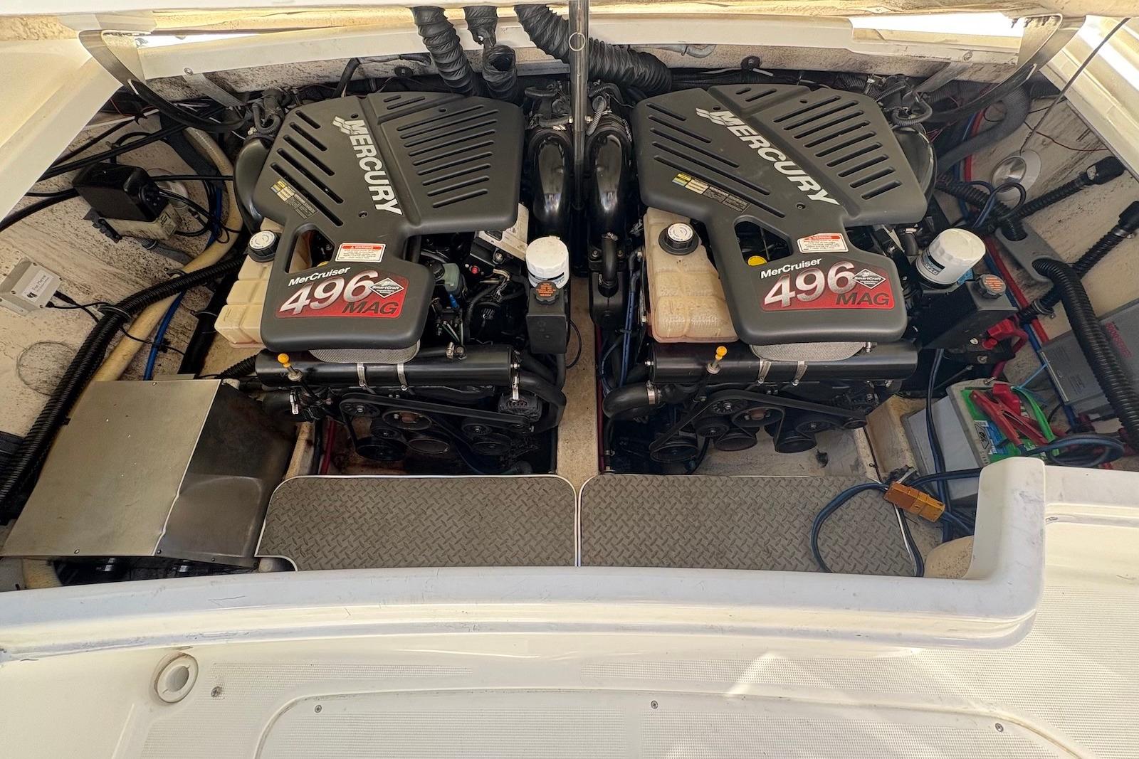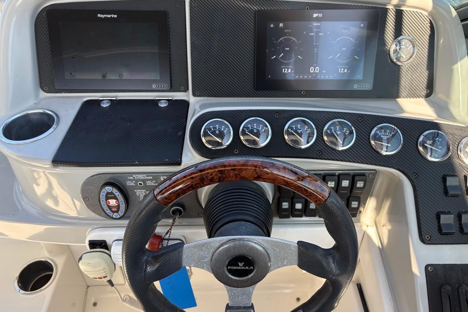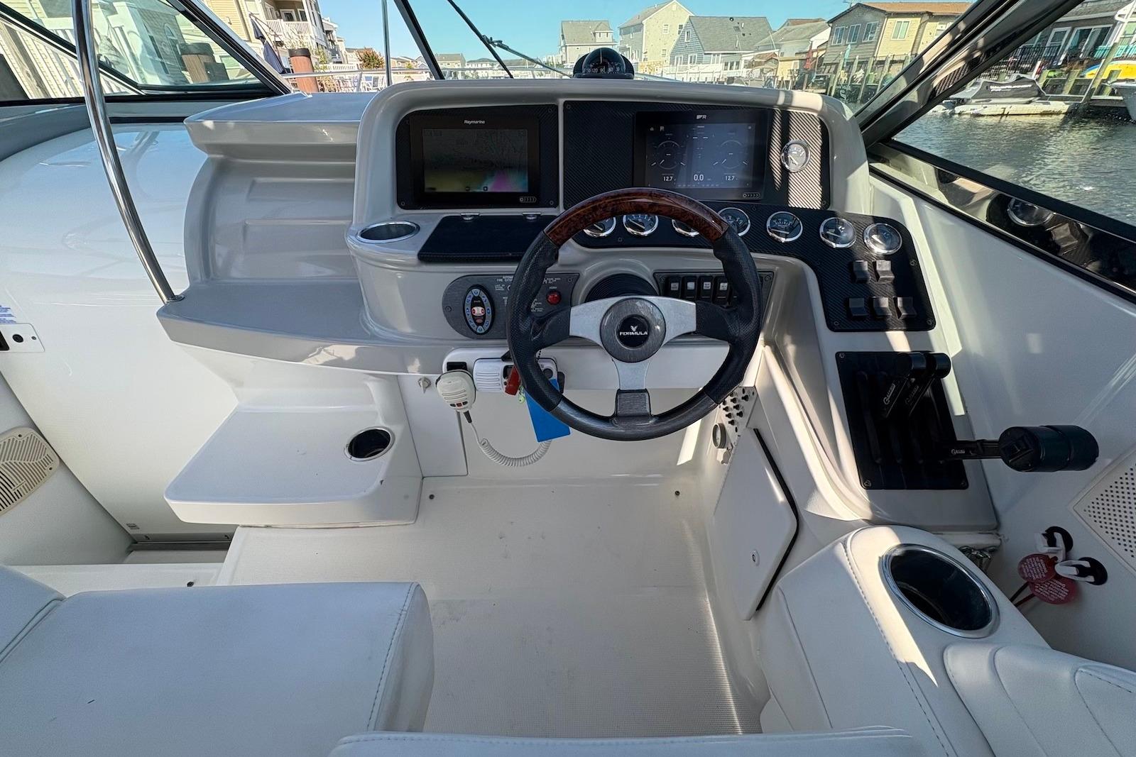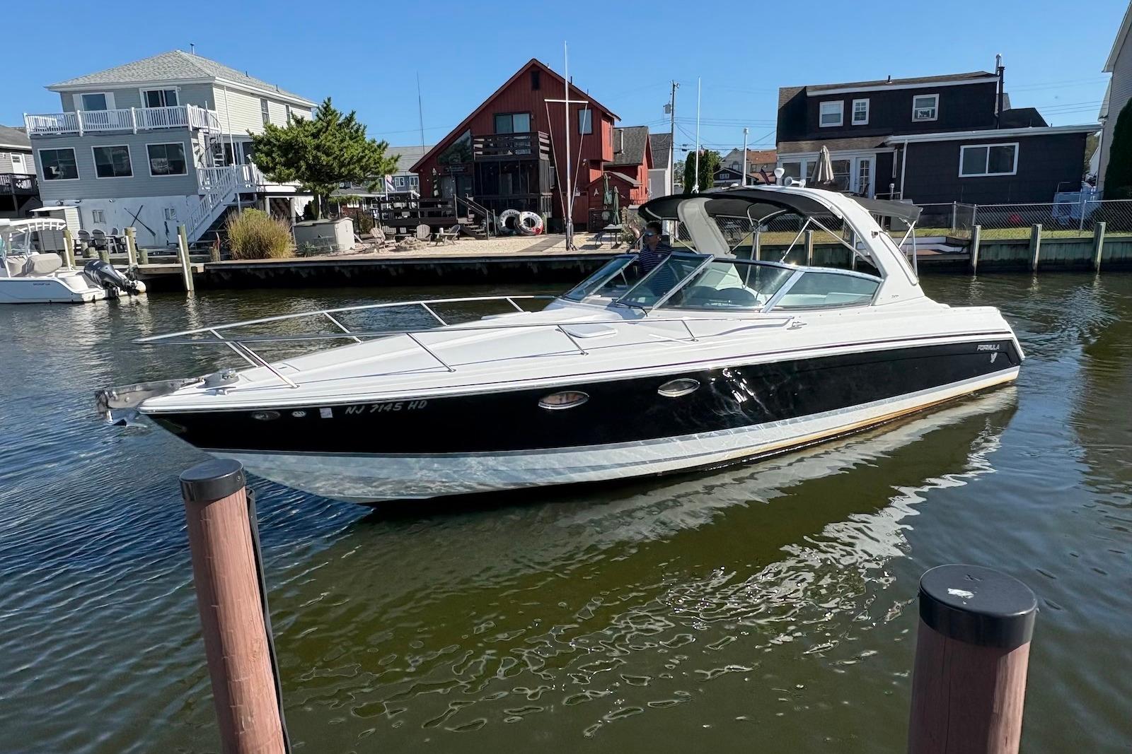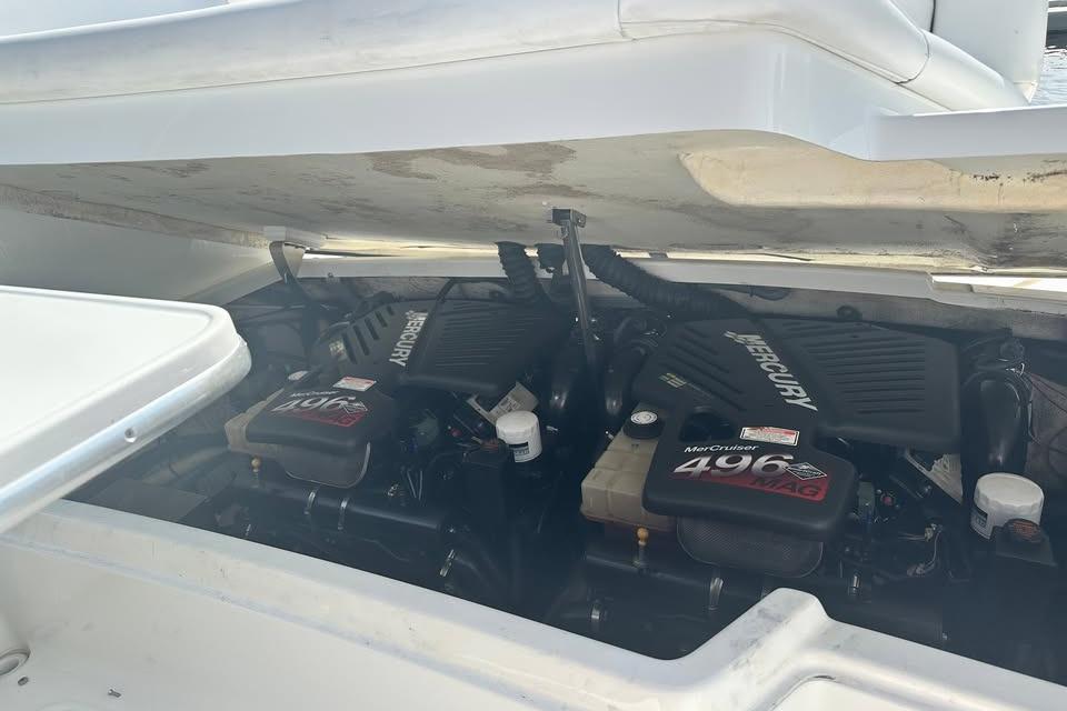 This well-maintained Formula 330 SS is powered by twin MerCruiser 496 MAG Engines 375 HP per with only 650 hours. Risers and manifolds done 2021. Updated helm with two 9" Ray marine Axiom Screens displaying Chart, Depth, Engine data, etc. Fresh water cooled. Captains' choice exhaust with thru hull water intakes with sea strainers. Windlass, AC/Heat from shore power, Water Heater. Upgraded LED lighting interior and exterior. Vacu-Flush head. Battery charger, transom shower. Full cockpit enclosure. Cockpit cover. New interior flooring and much more....