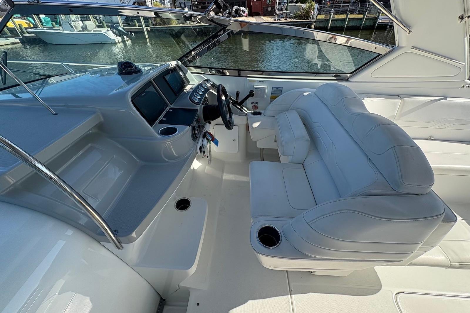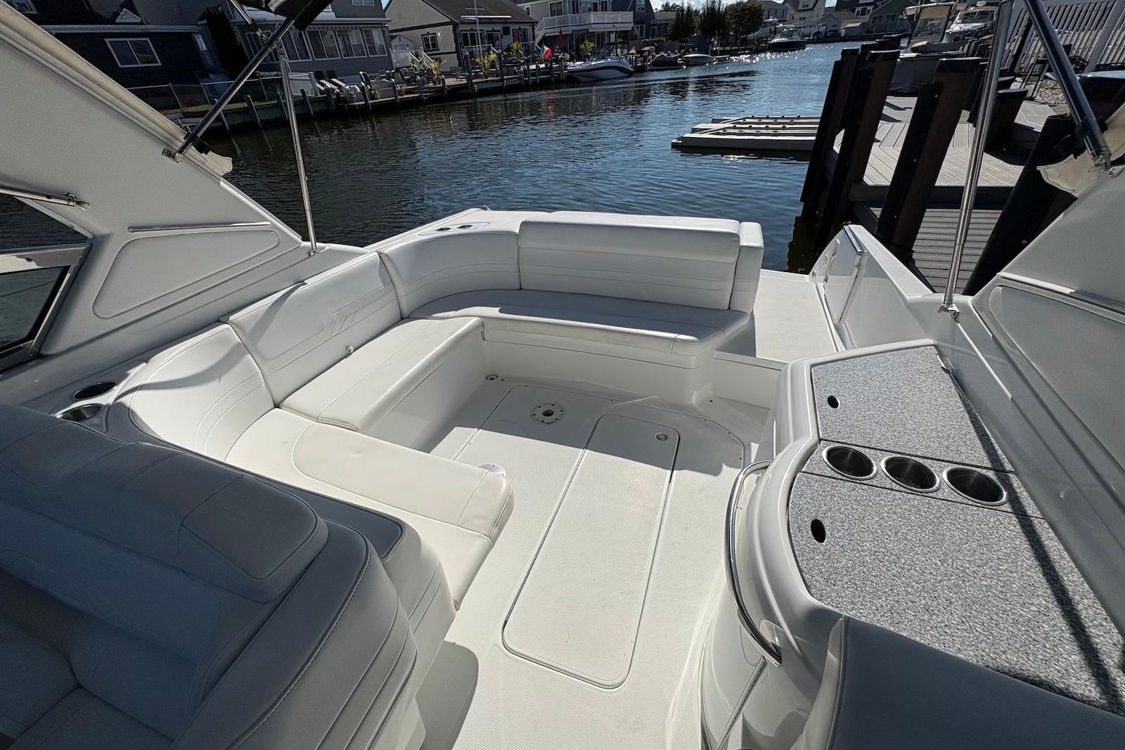 With her sleek lines and roomy cockpit, the Formula 330 Sun Sport will appeal to those seeking a high-style family sportboat with emphasis on open-air fun. She's well constructed on a deep-V hull with a generous beam.