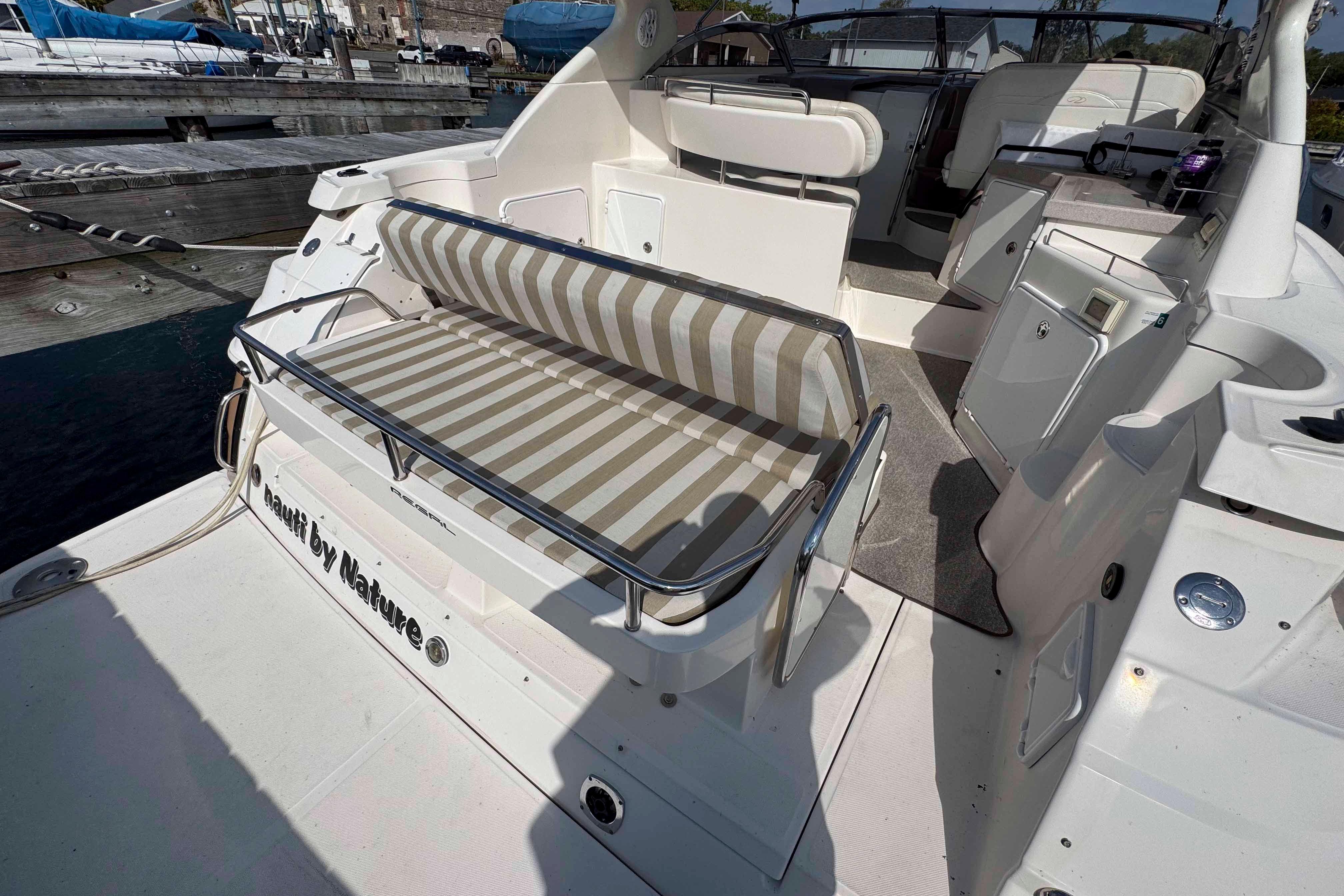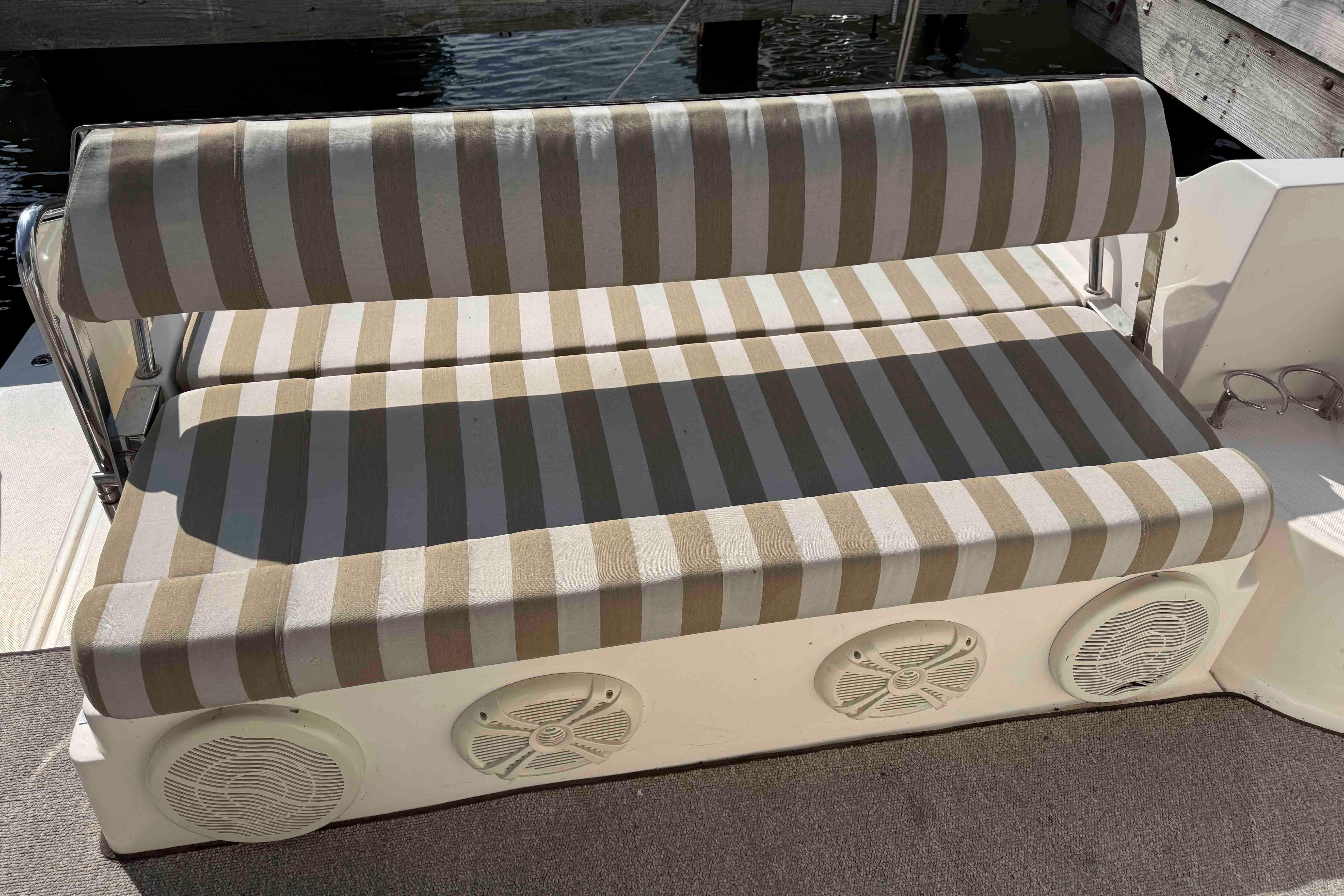 Walkthrough Windshield: Easy and safe access to the bow seating area with a comfortable bow cushion.