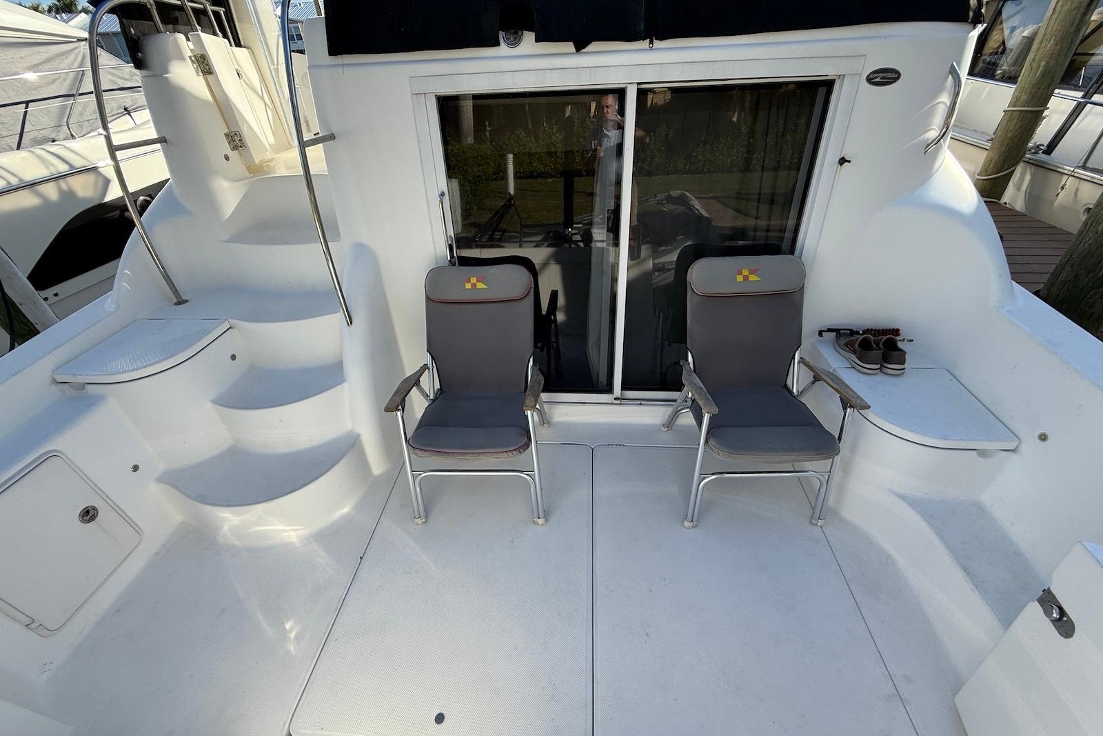 The interior of the 459 is renowned for its at-home feel, offering a spacious two-stateroom, two-head layout. The full-beam master suite features a private sliding glass door to the cockpit, providing a seamless connection to the water. The salon is airy and bright, perfect for entertaining or long-term live-aboard use.