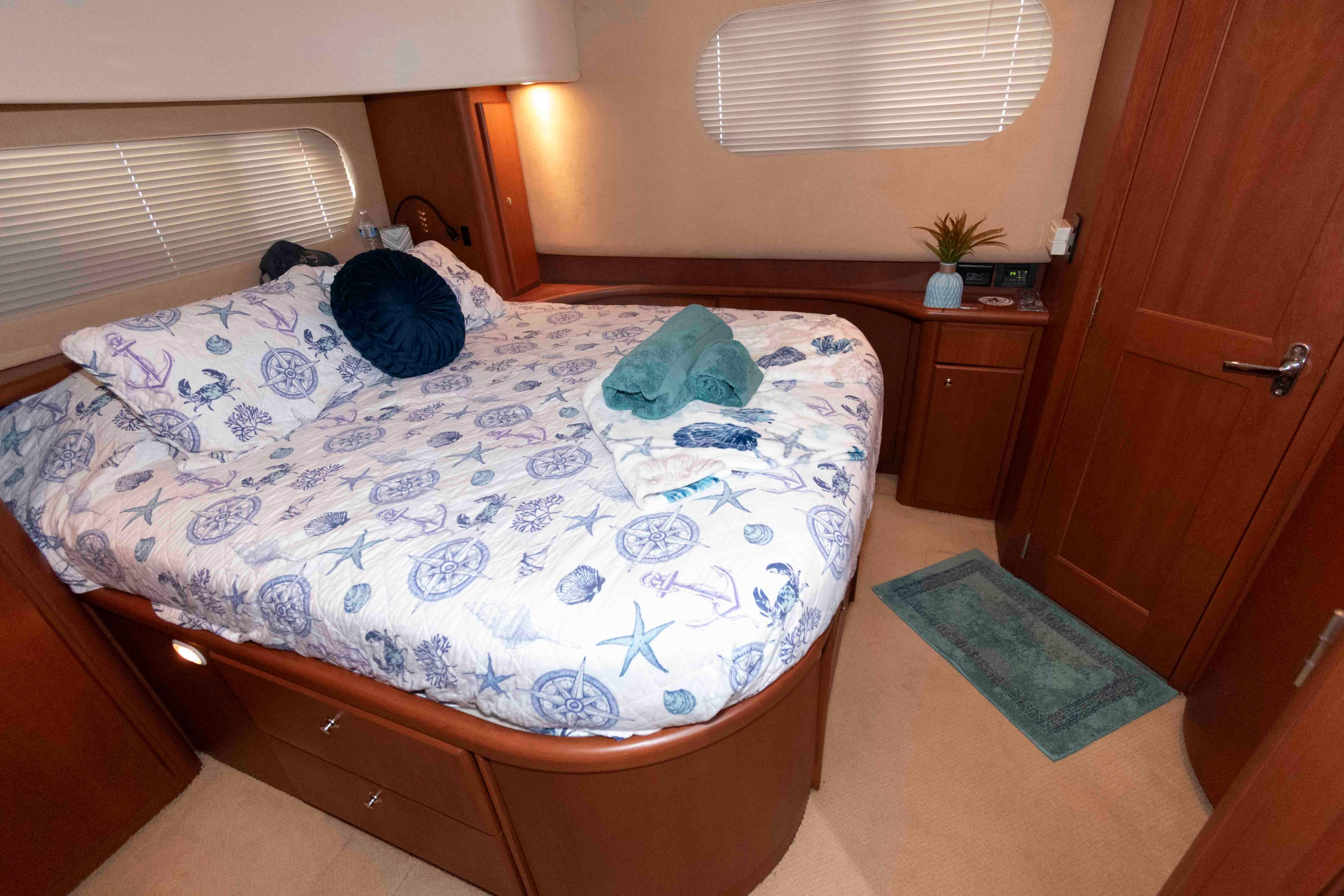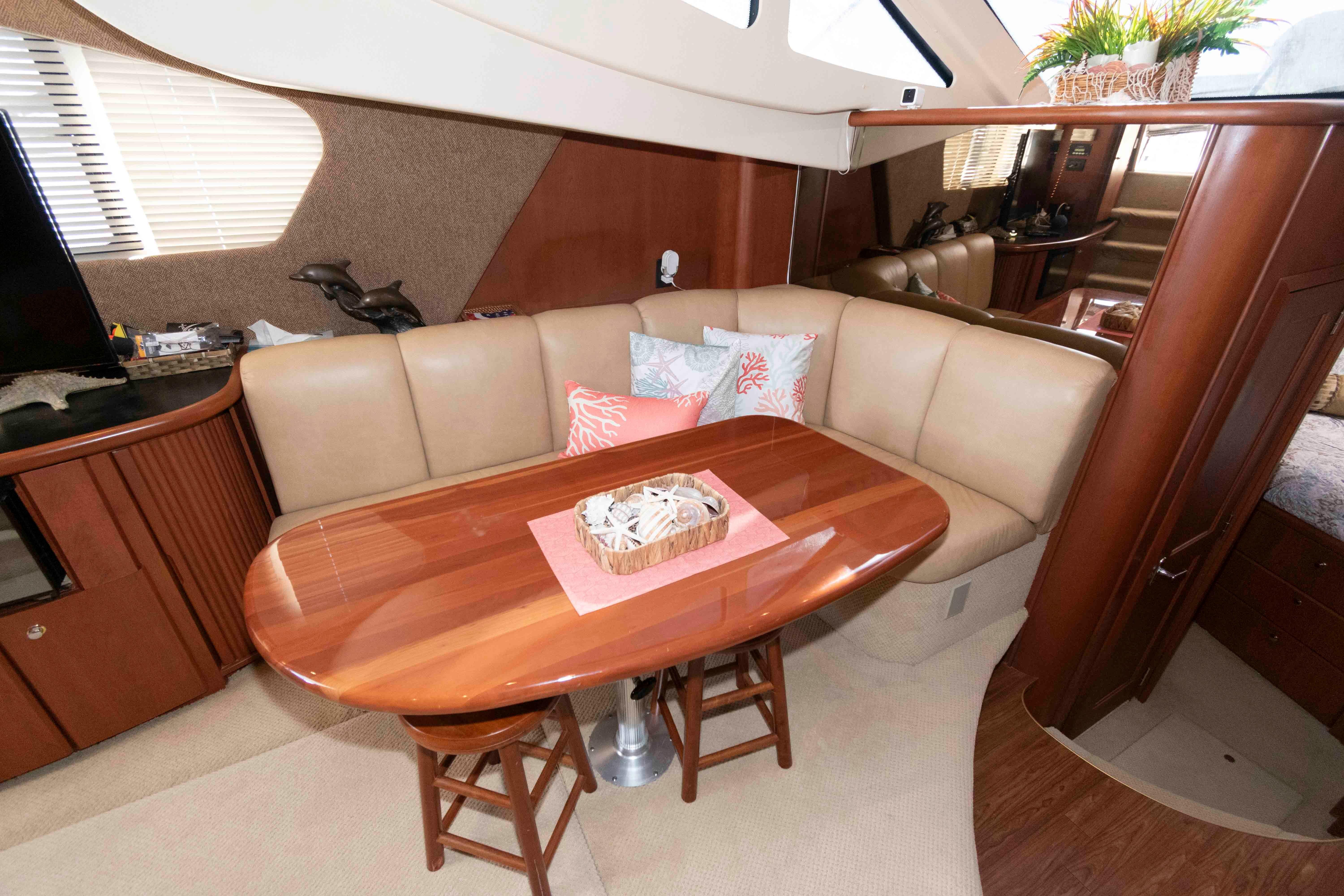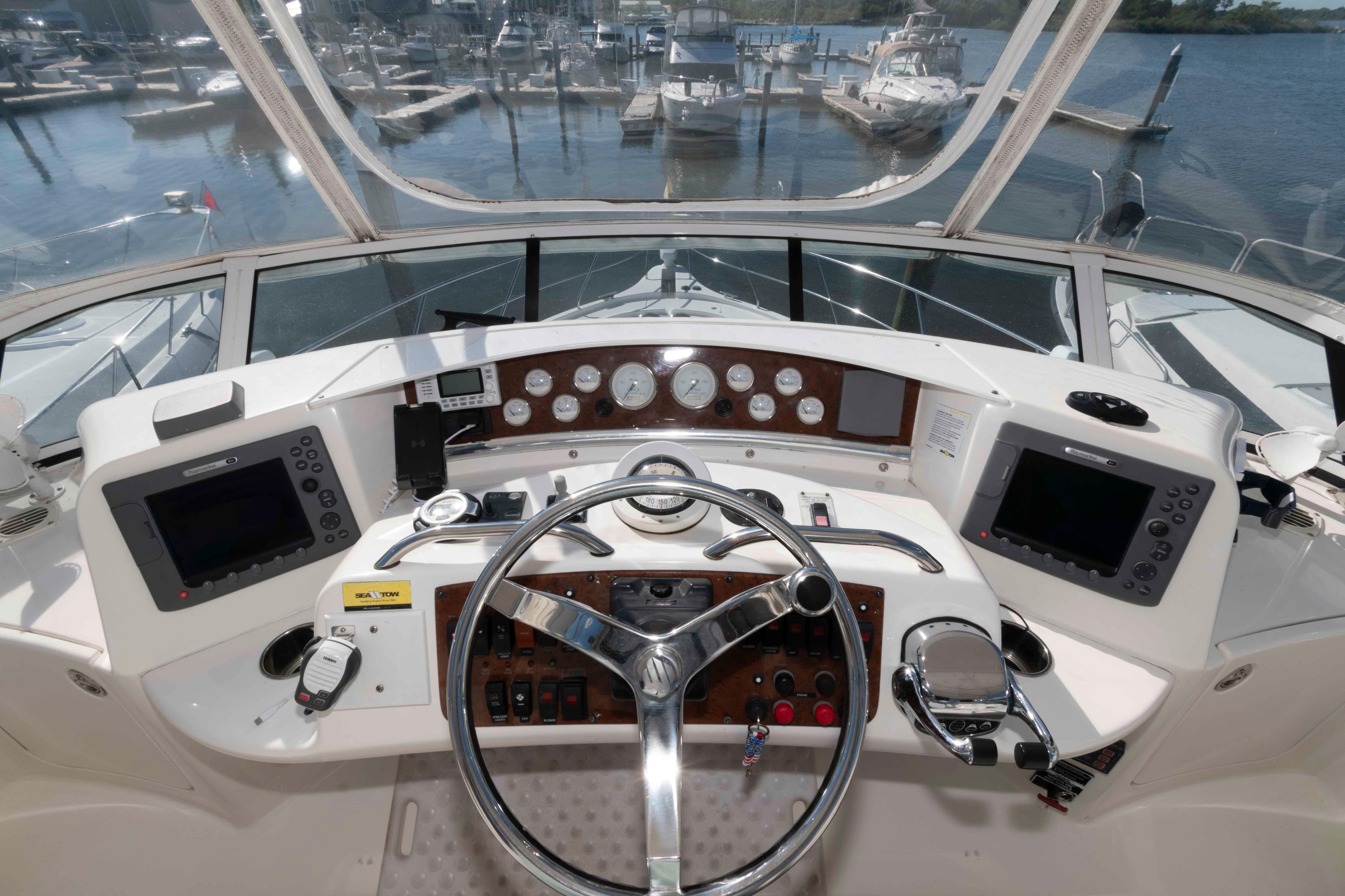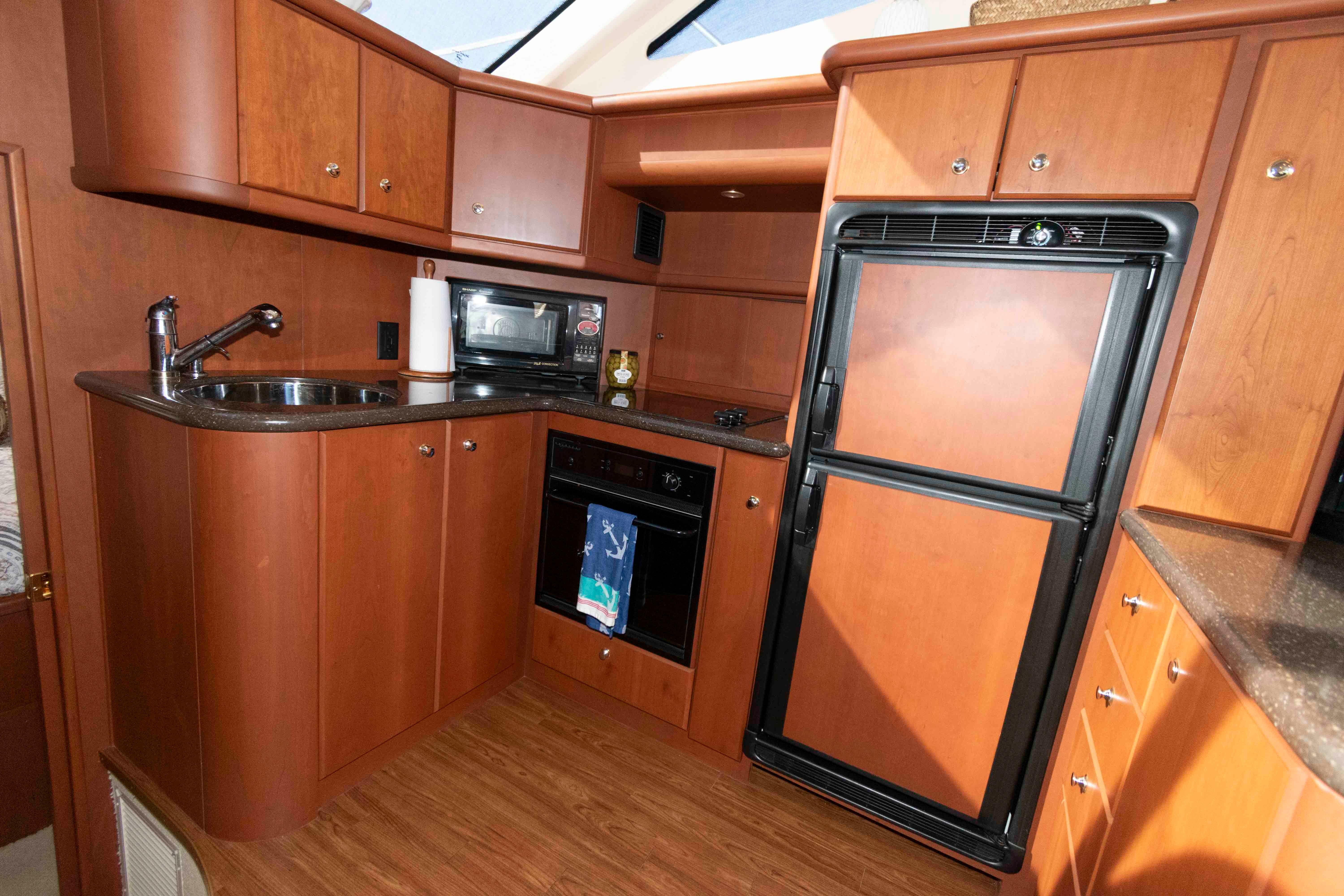 The Silverton 39 Motor Yacht is a culmination of extensive research and modern technology. Below, Silverton has increased the usage of rich solid cherry woods, created solid cherry raised panel doors, and extended the use of genuine Corian countertops. Top-grade interior hardware has been installed, and Flexsteel sofas and settees are included with UltraLeather surfaces. Up above, the SideWalk system reduces the number of steps, but certainly not the safe and easy access. Top-grade marine vinyl with Starboard backing and PreFixx coatings resist mildew and UV damage.