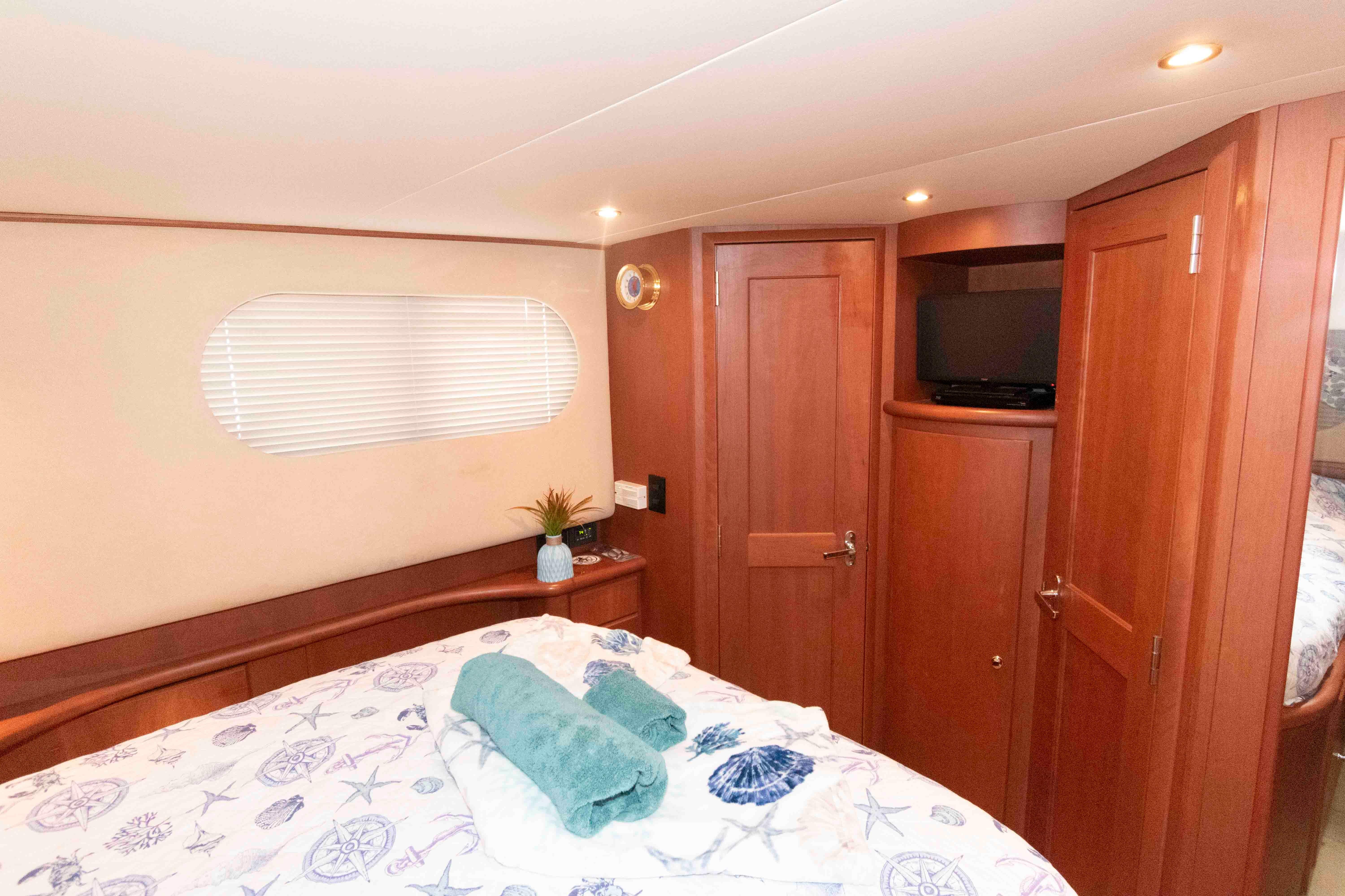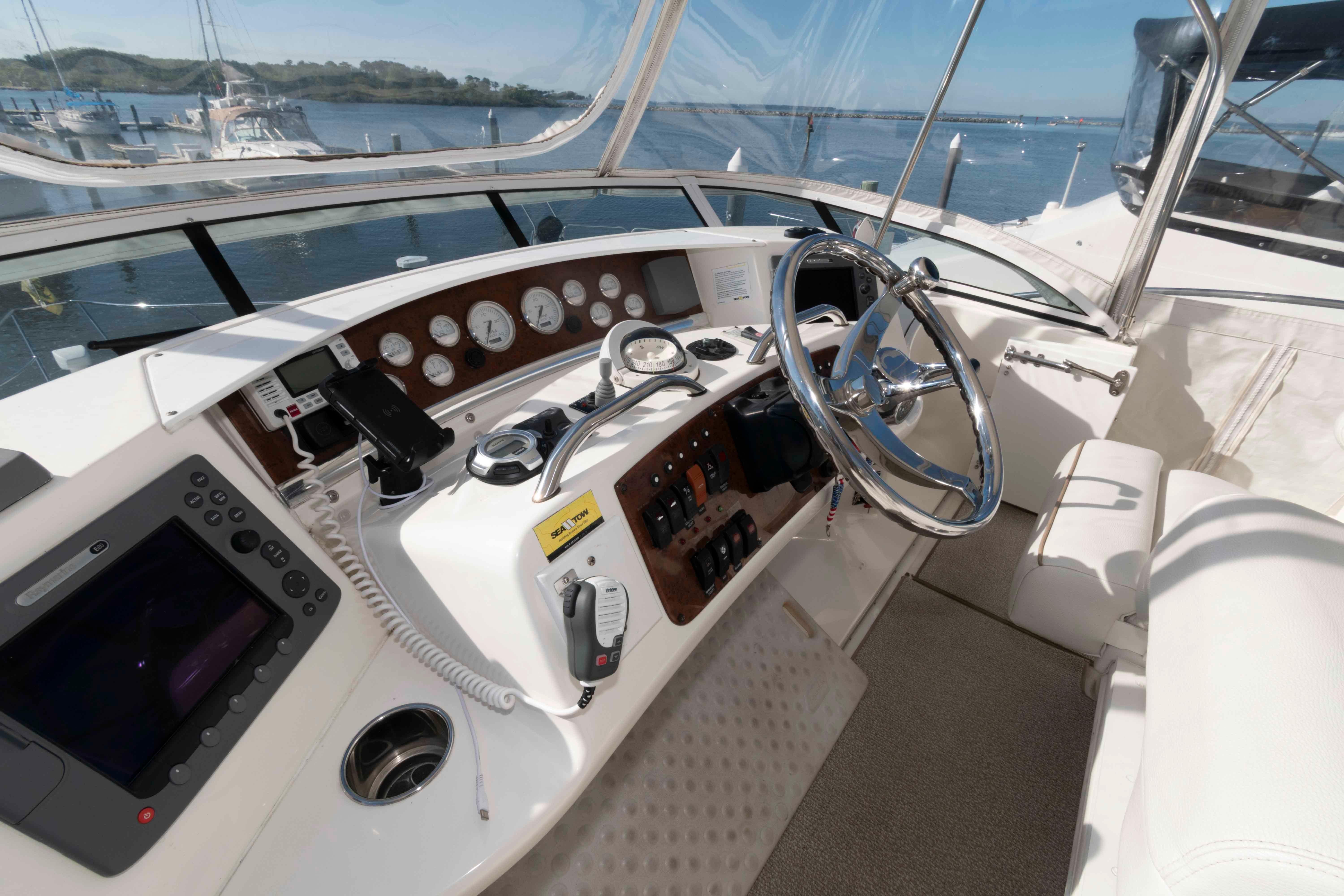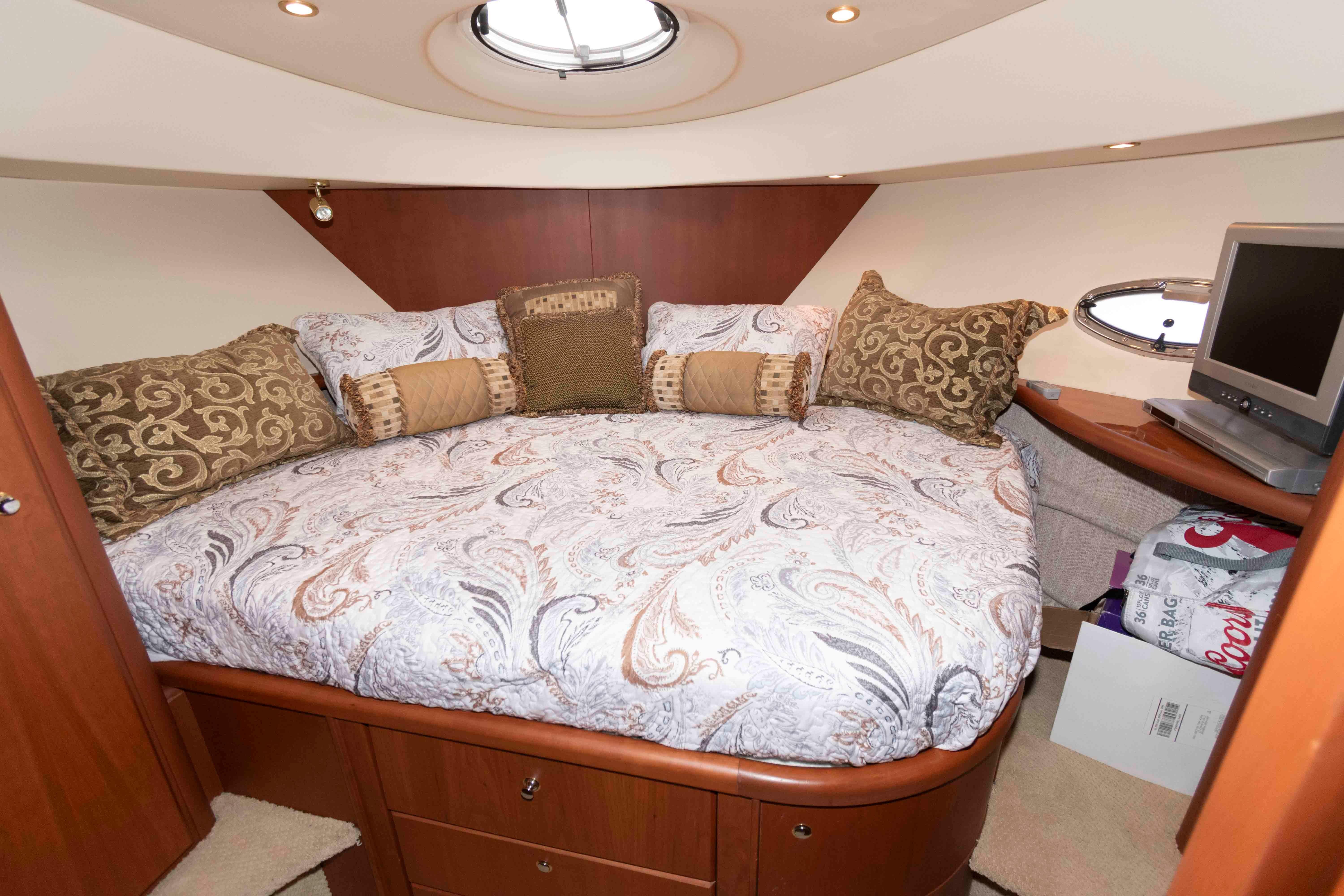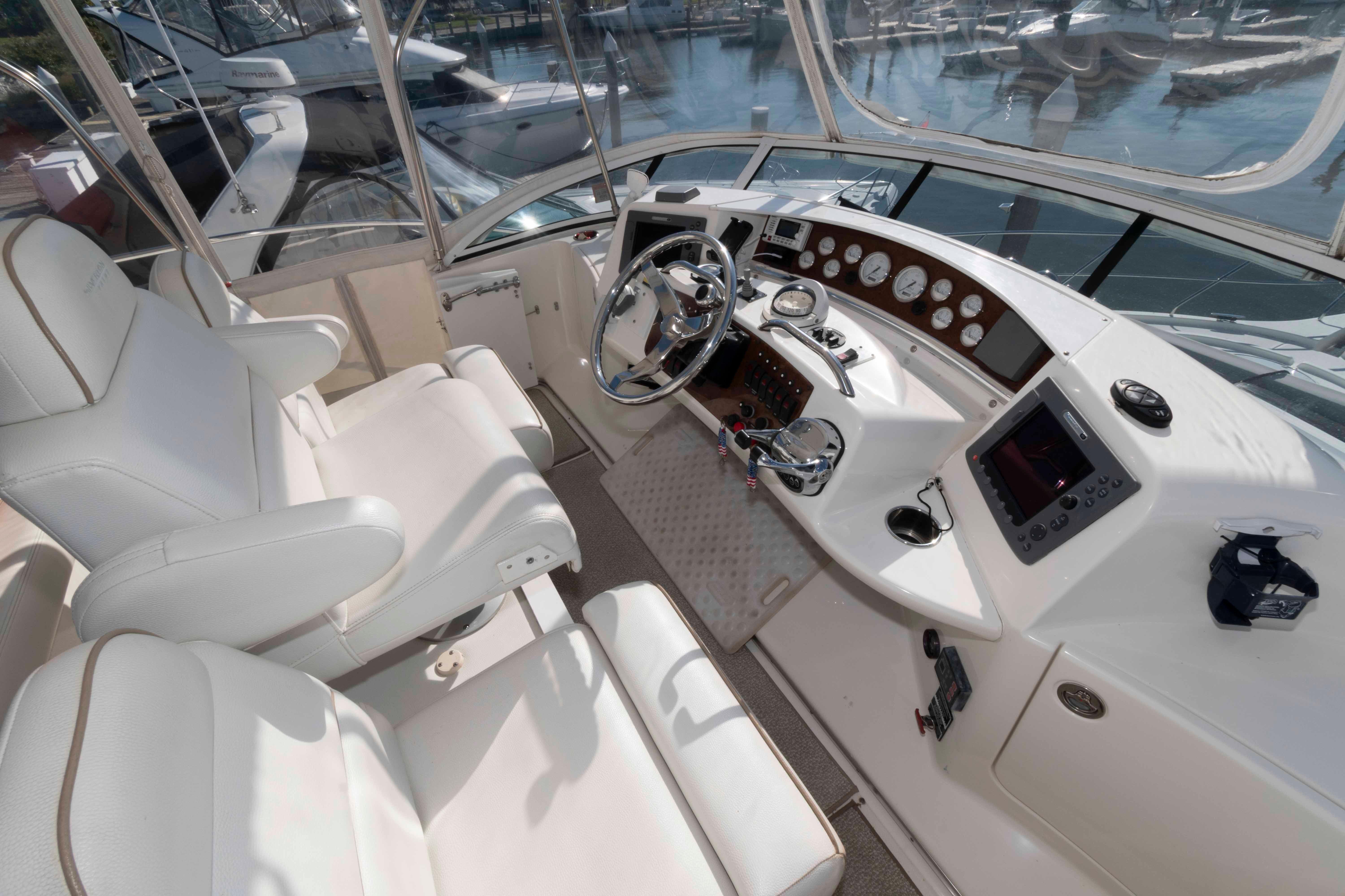 The Silverton 39 Motor Yacht is a culmination of extensive research and modern technology. Below, Silverton has increased the usage of rich solid cherry woods, created solid cherry raised panel doors, and extended the use of genuine Corian countertops. Top-grade interior hardware has been installed, and Flexsteel sofas and settees are included with UltraLeather surfaces. Up above, the SideWalk system reduces the number of steps, but certainly not the safe and easy access. Top-grade marine vinyl with Starboard backing and PreFixx coatings resist mildew and UV damage.