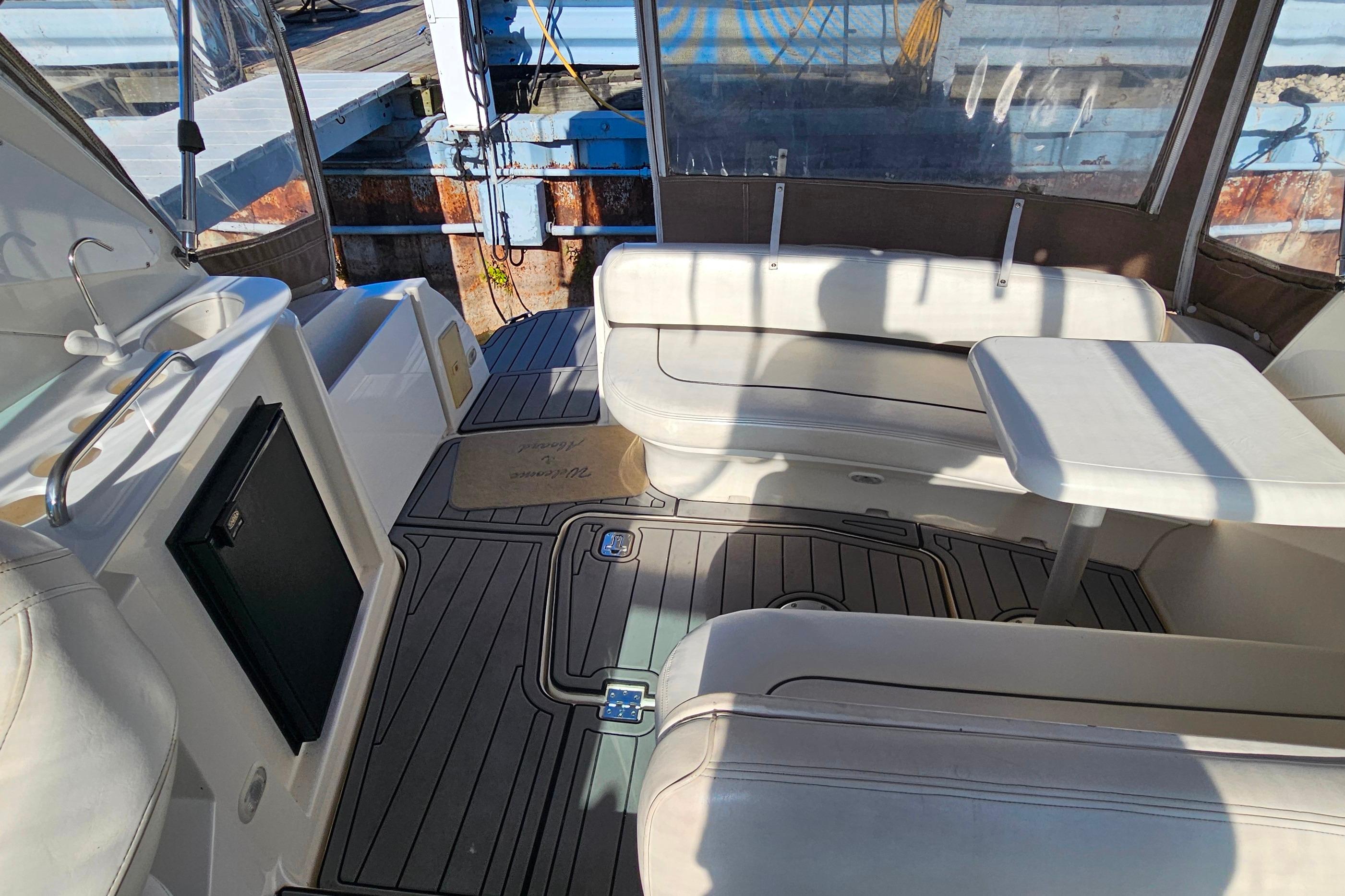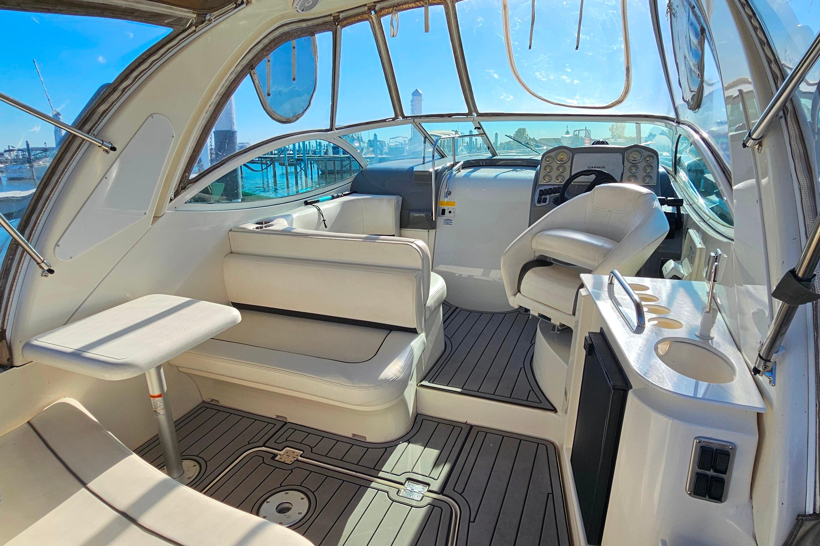 - All-Weather Cockpit: The cockpit is fully protected by a hardtop with an isinglass enclosure, allowing you to extend your boating season in comfort.