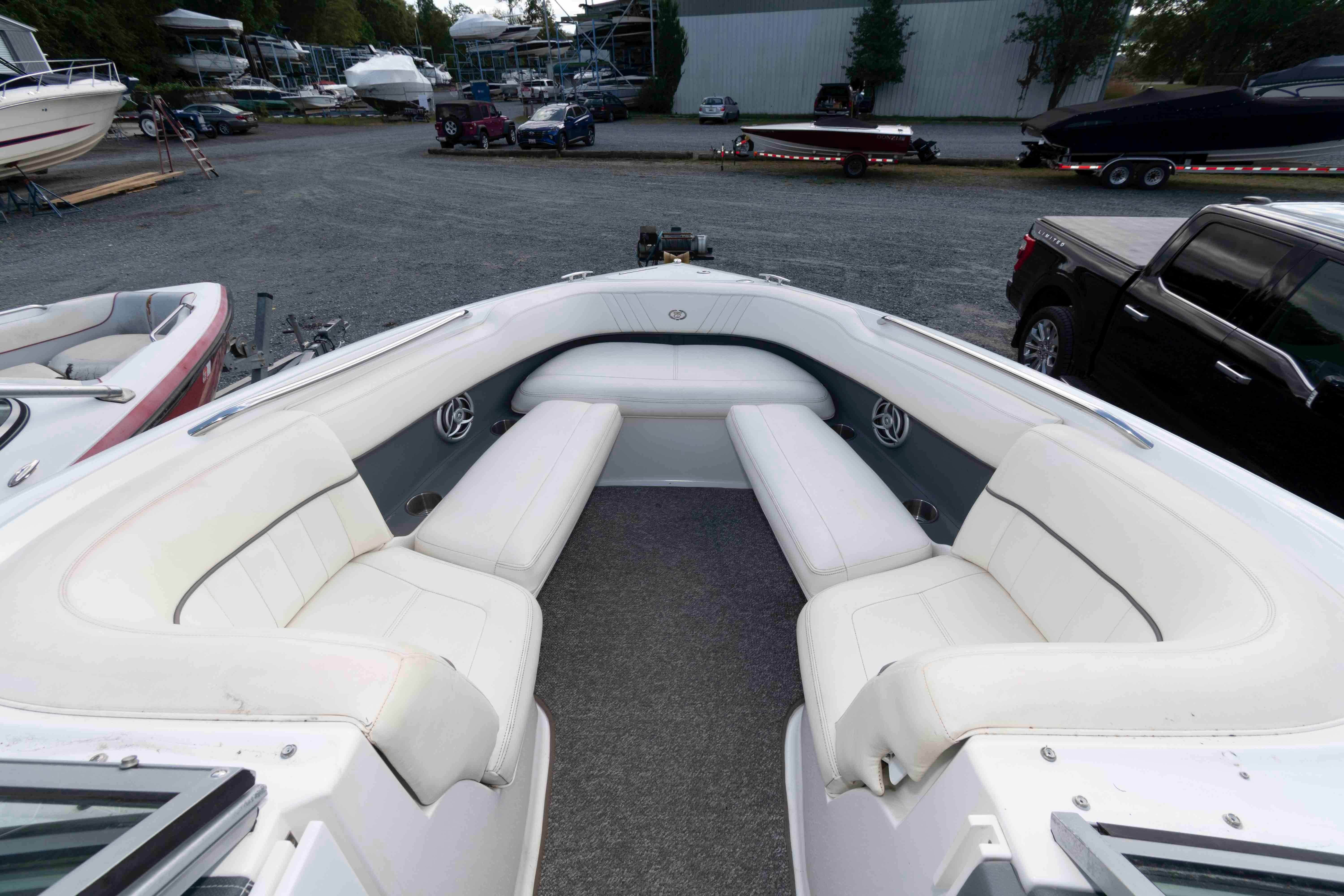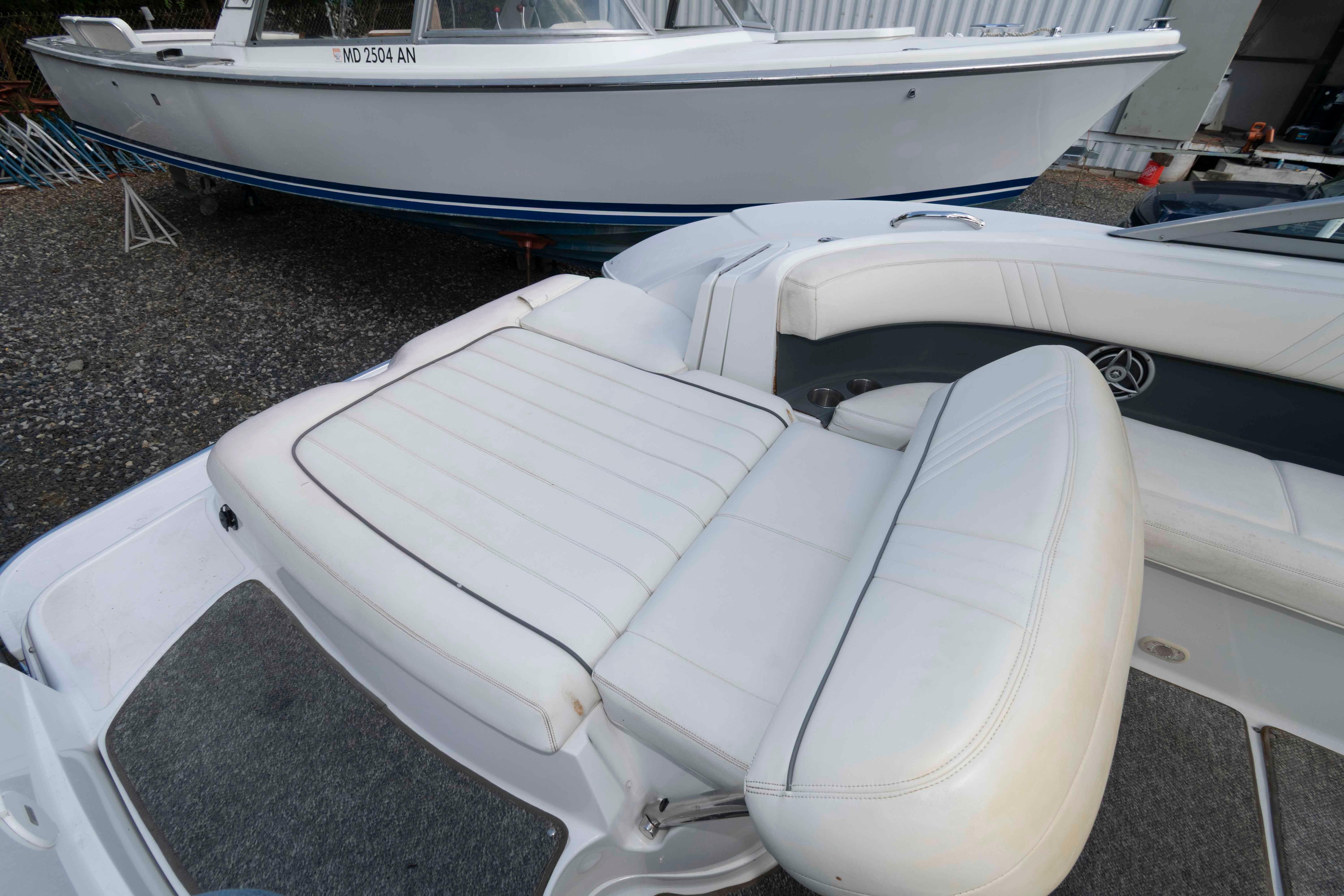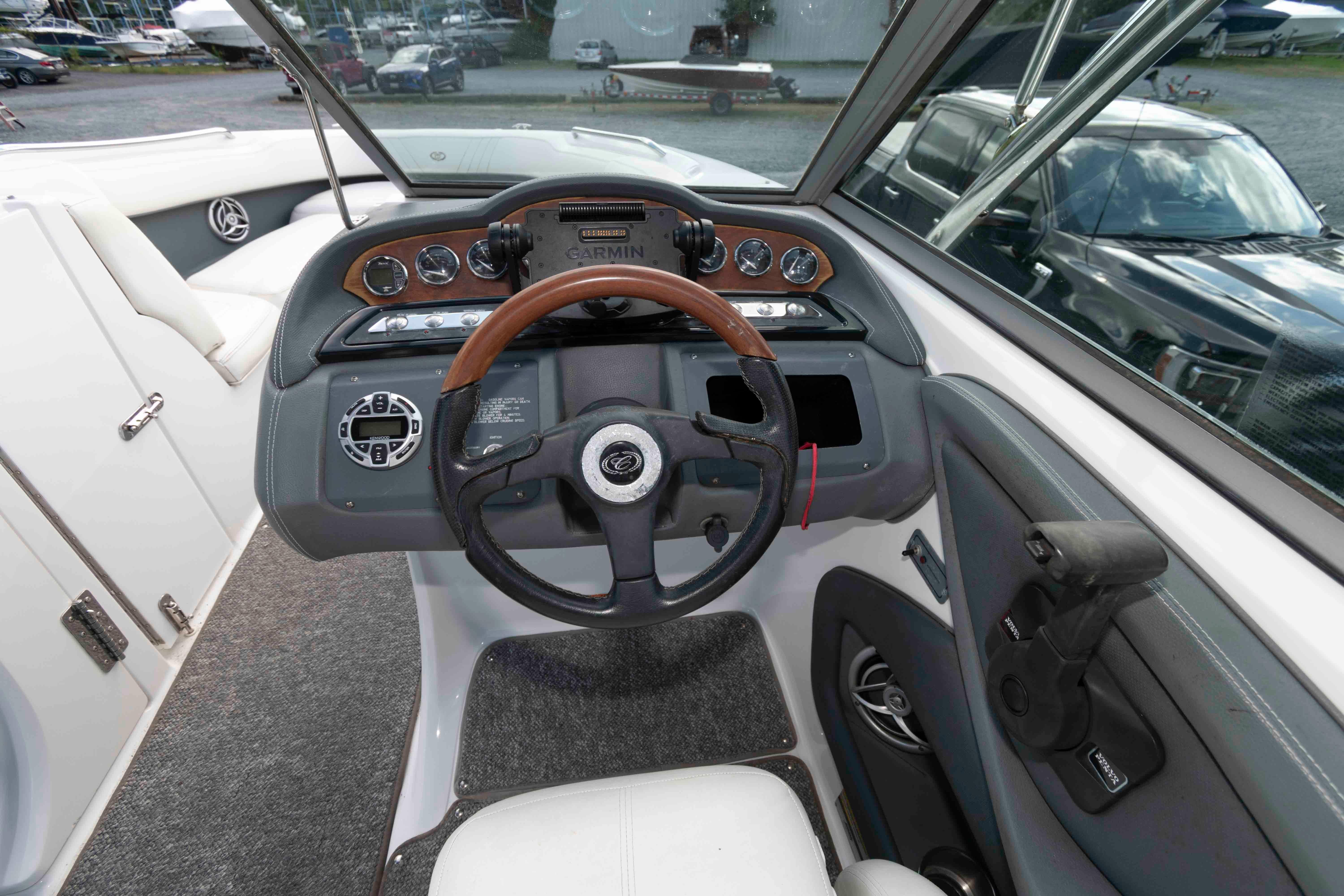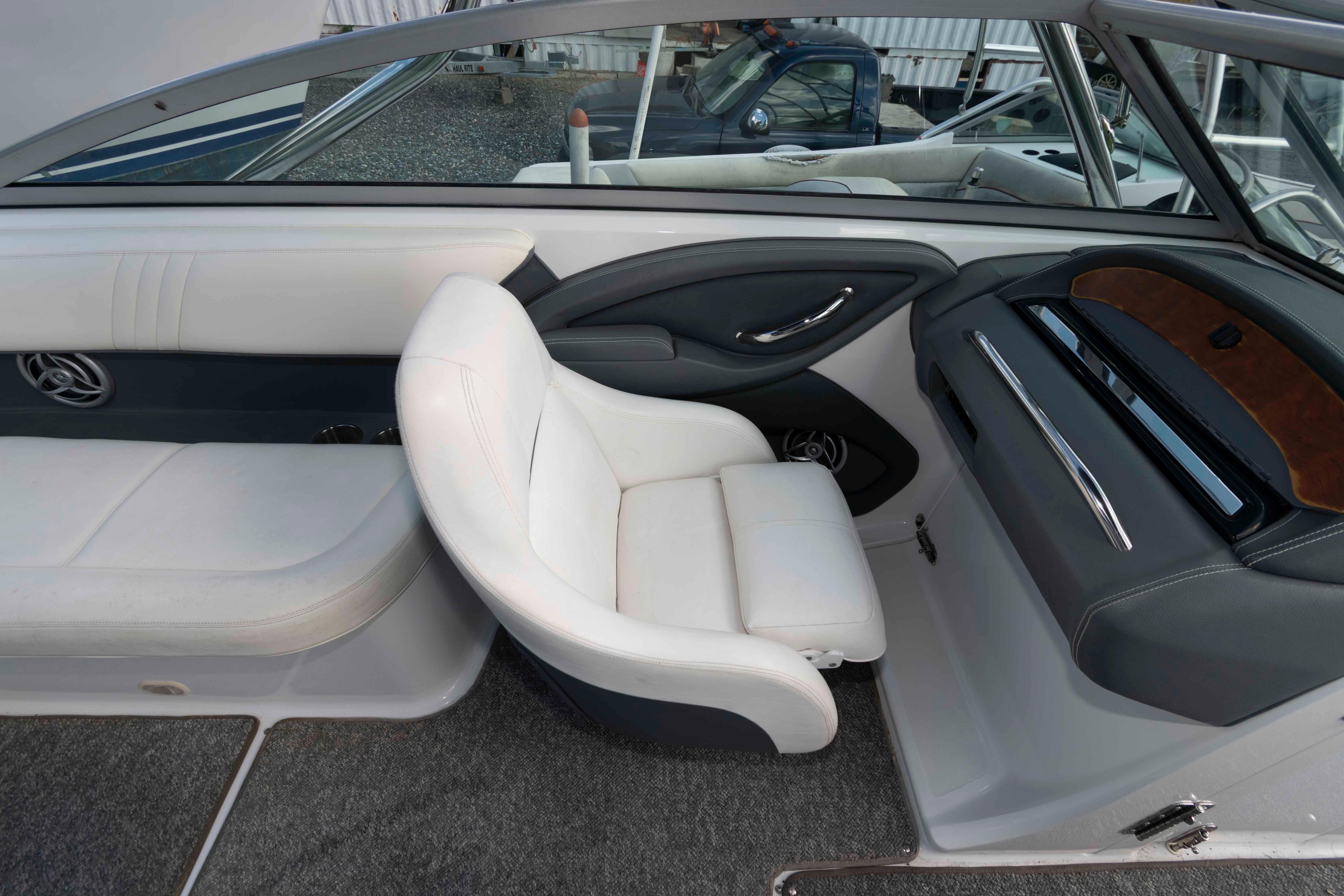 The 252 jumps at the opportunity to entertain, from the deep-down relaxation of the small island that is the 252?s sunpad with its adjustable backrest to the walkthru doors at the bow, accommodating easy traffic flow back and forth as does the side walk-thru astern, even with a capacity crowd of 15 funlovers on board. Two massive ice chests huddle out of sight, molded into the cockpit, in keeping with the 252?s maximized use of space, from an easily accessed ski locker underfoot to handy stash compartments thoughtfully placed here and there stem to stern. The entertainment system comprises an entire family of standard equipment ? AM/FM radio and CD player with six speakers, an iPod/MP3 port, and stereo remote at the dash.