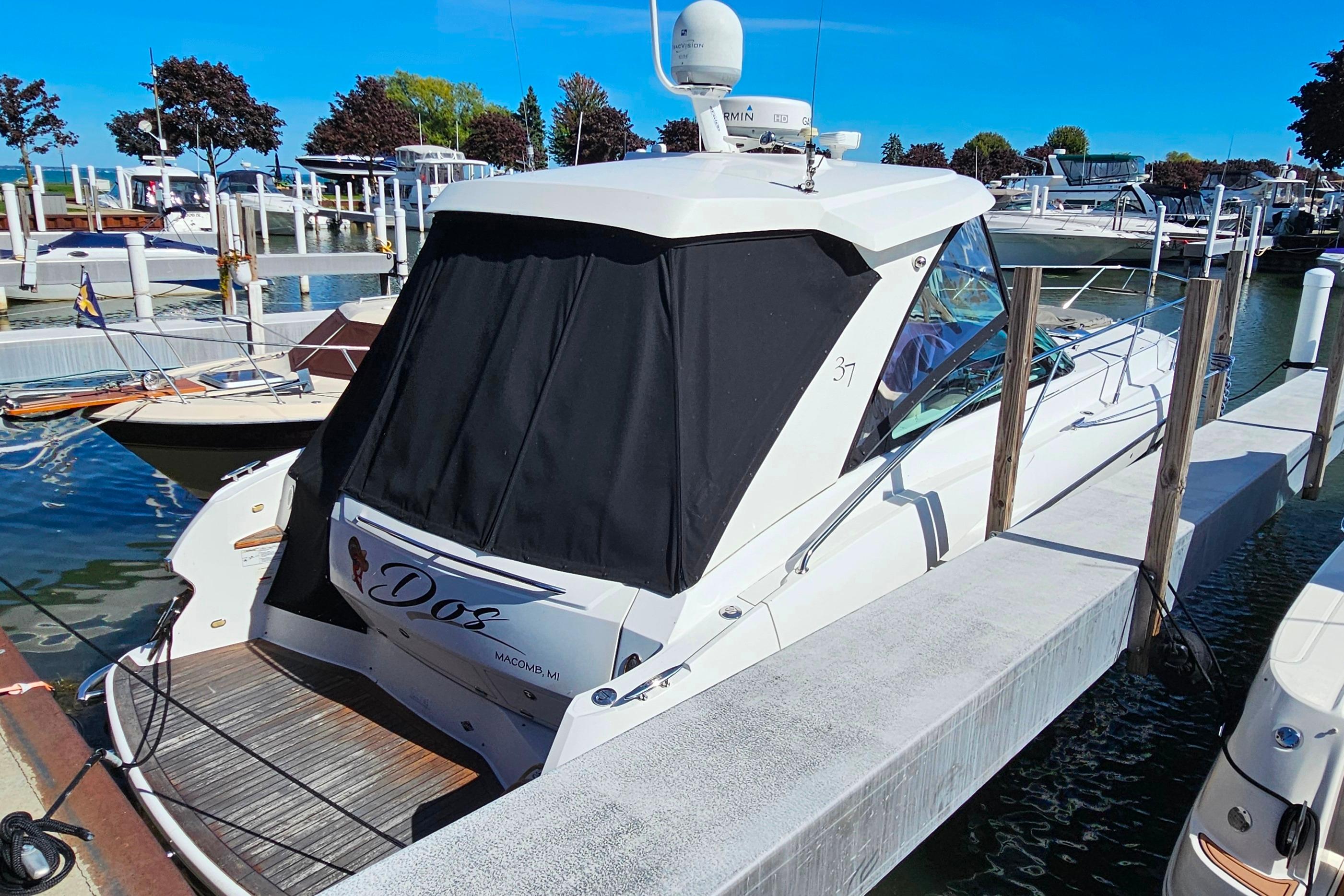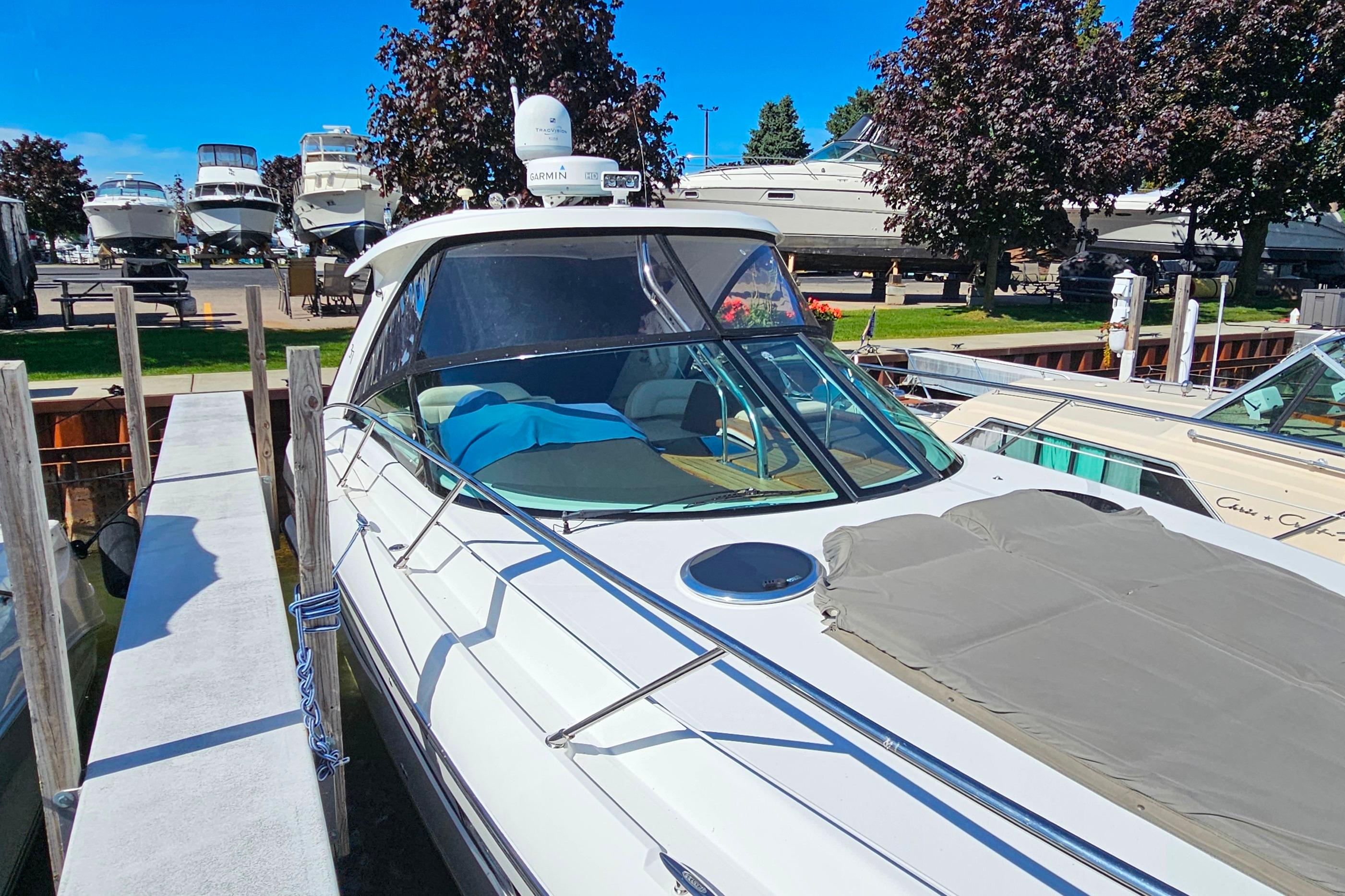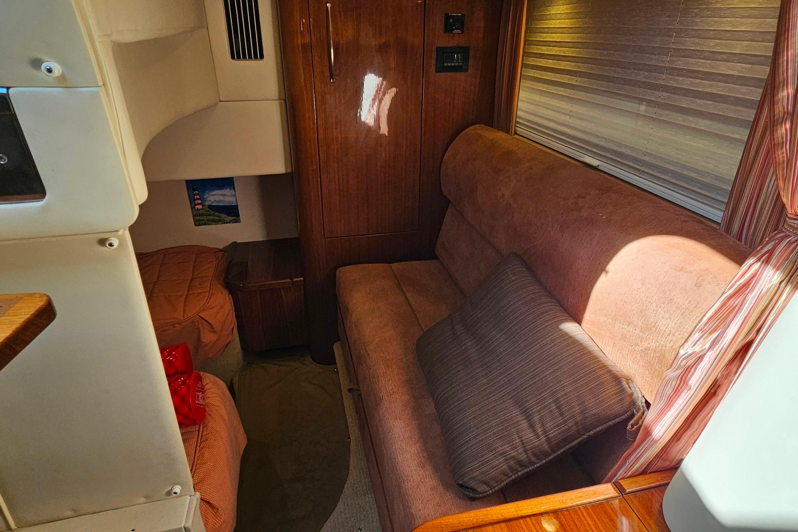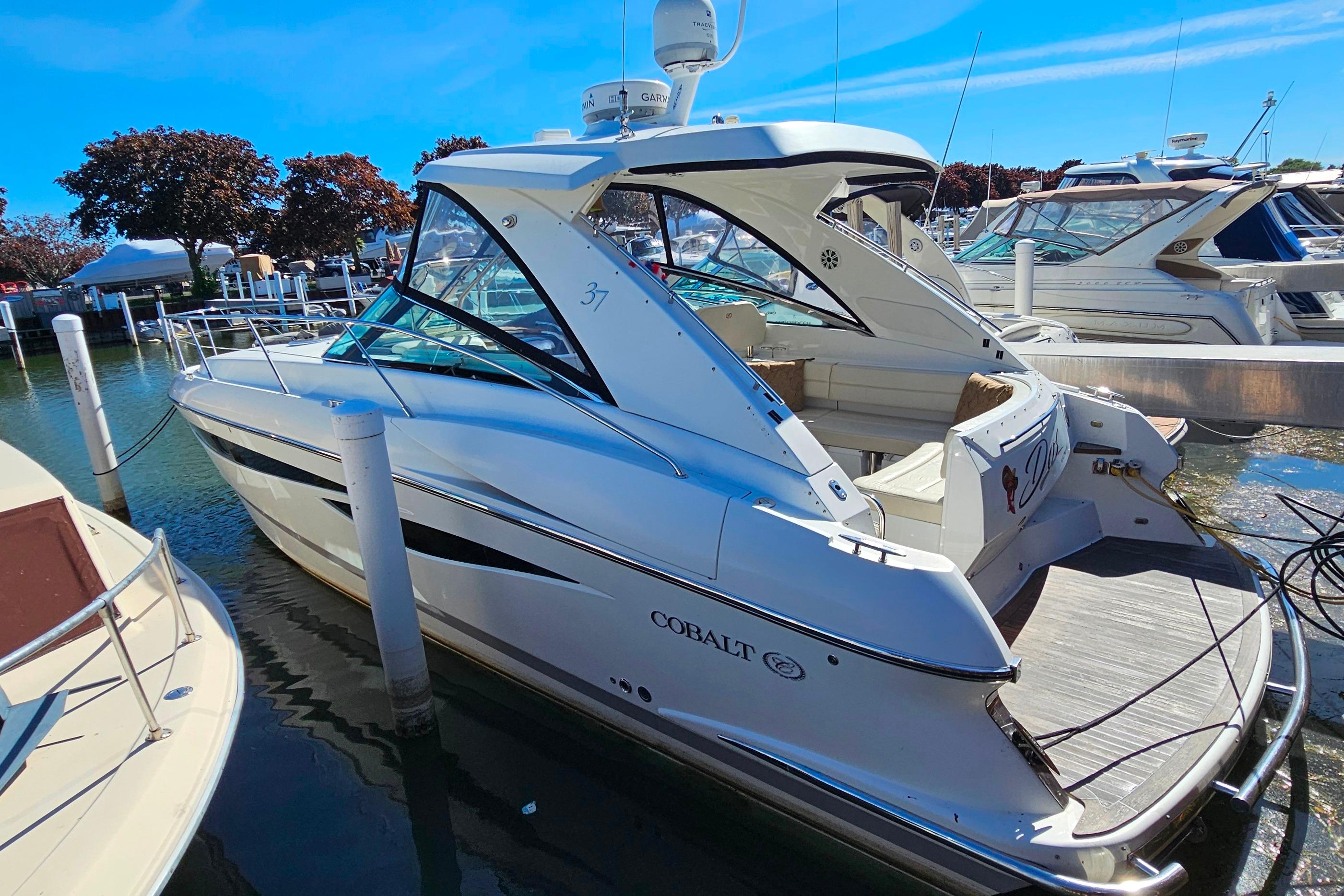 With all the creature comforts of far larger boats, accented by megayacht-standard custom cabinetry, the 37 makes every best possible use of interior space. Case in point: the two full beds with conventional mattresses in lieu of the convertible cushions of a settee that other manufacturers term a "midberth." A solid panel secludes the master stateroom, opening and airing the cabin. The overall efficiency and roominess of interior spaces arise in large part from Cobalt's willingness to use multiple, complex molds in the fabrication of parts, leading to designs simply not possible to manufacturers restricted by their insistence on simple, unimaginative molding.Designed and engineered to exacting specifications for open water performance and saltwater durability, the 37 has been built ready to take on the traffic in coastal waters and inland lakes alike. Where competitors are quick to speak of "value-added engineering," a euphemism for the subtraction of the very best materials from a boat's construction in an effort to keep costs down, Cobalt has beefed the 37's design, calling for high technology in both materials and their application. The full-length stringer system has been reinforced with carbon fiber, laid up with vinyl ester resins, the solid fiberglass, Kevlar-strengthened hull bottom a full three-quarter inches thick. The structural bulkheads, of total composite construction, are vacuum-infused. Whalebones compound overall sturdiness.