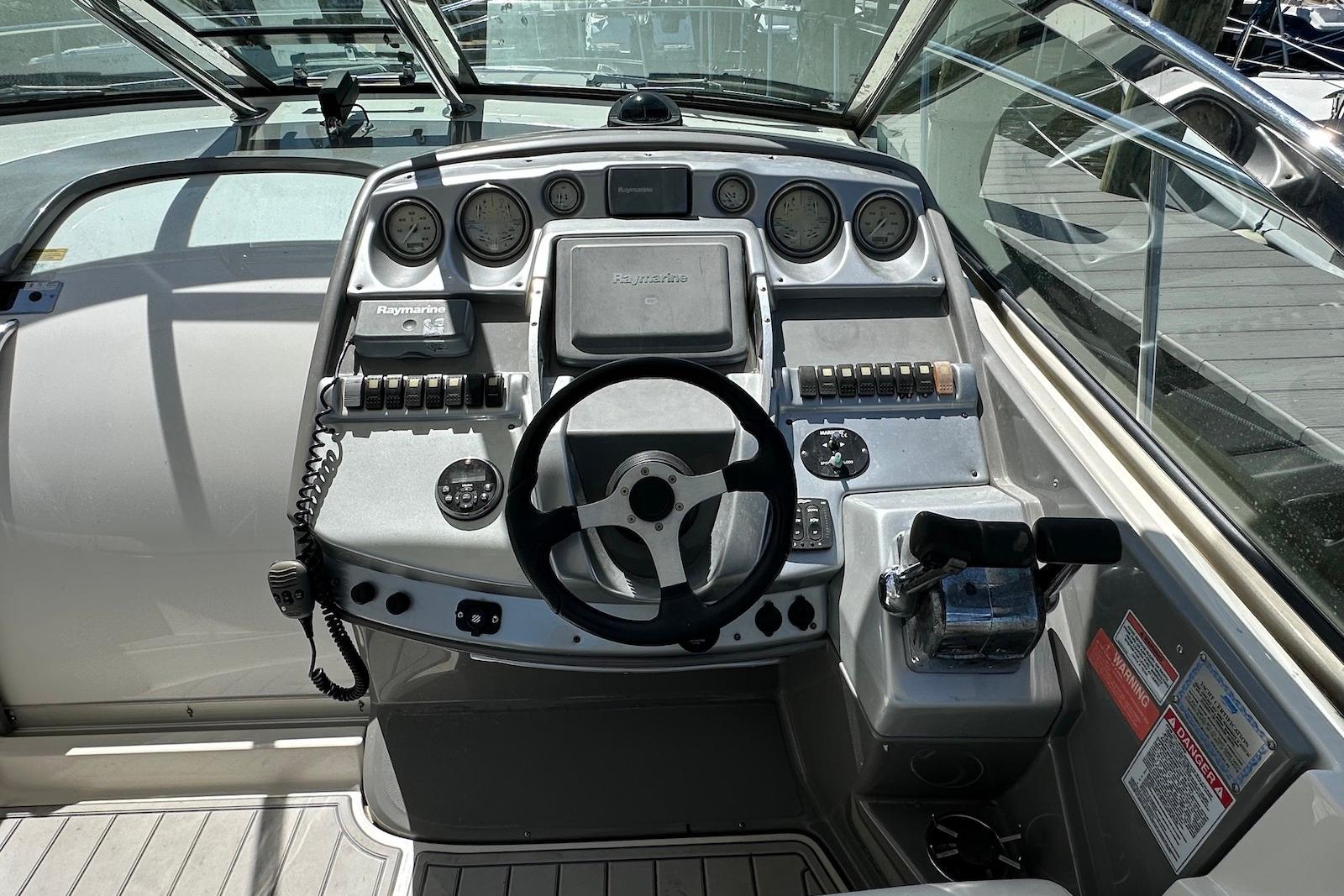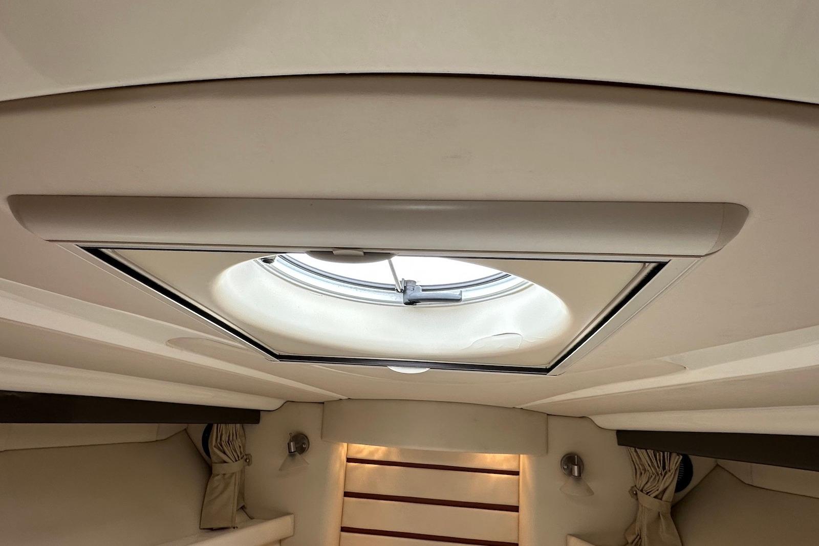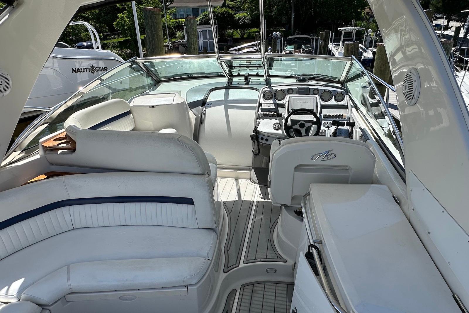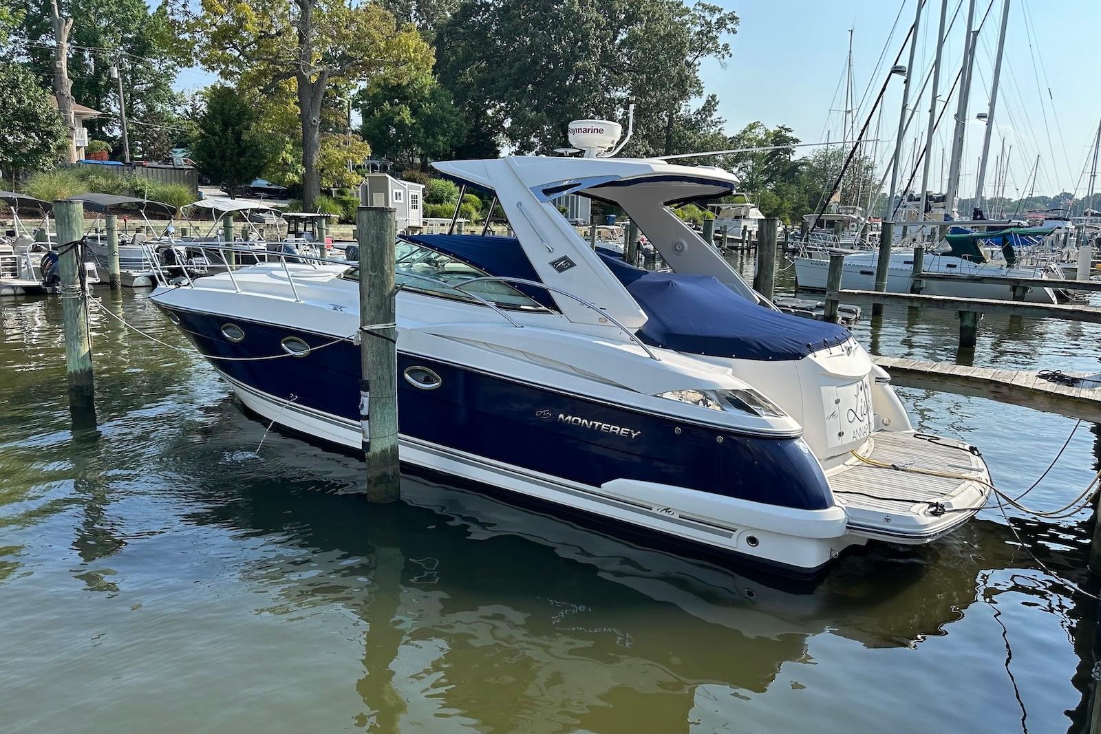 With a marriage of performance, style and comfort, the 350 incorporates the latest construction techniques and performance-enhancing design elements to deliver an exhilarating ride. A large cockpit seating area and masterfully laid out helm station, starboard wet bar and additional storage makes short or extended cruises just shy of a fantasy. Below deck, a luxuriously appointed cabin awaits with generous accommodations. Discover beauty and unparalleled craftsmanship on the 350 Sport Yacht. Below deck, rich cherrywood and a warm palette adorn the lavish interior, extending from the roomy salon to the well-appointed galley and enclosed head with stand-up shower. A spacious curved dinette converts into a double bed for sleeping, while the stateroom comfortably accommodates room for two. Flatpanel TV screens make efficient use of space with audio and video demands just a click away. A fully equipped galley provides matching cherrywood cabinets, refrigerator and an electric stove and microwave, perfect for the countless delicious meals prepared onboard.