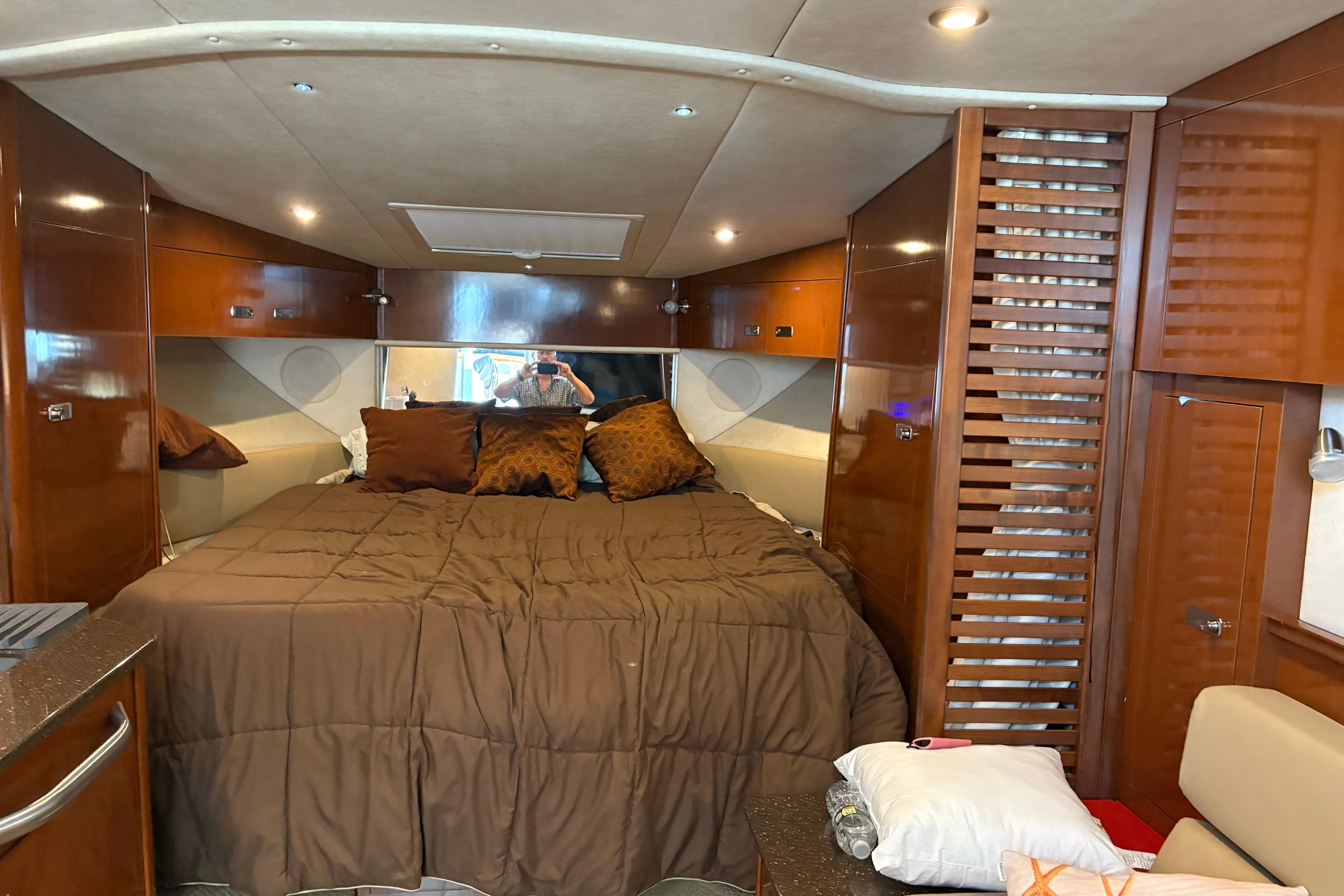 Forward Stateroom: A dedicated forward cabin features a fixed queen berth, providing a comfortable private sleeping area.