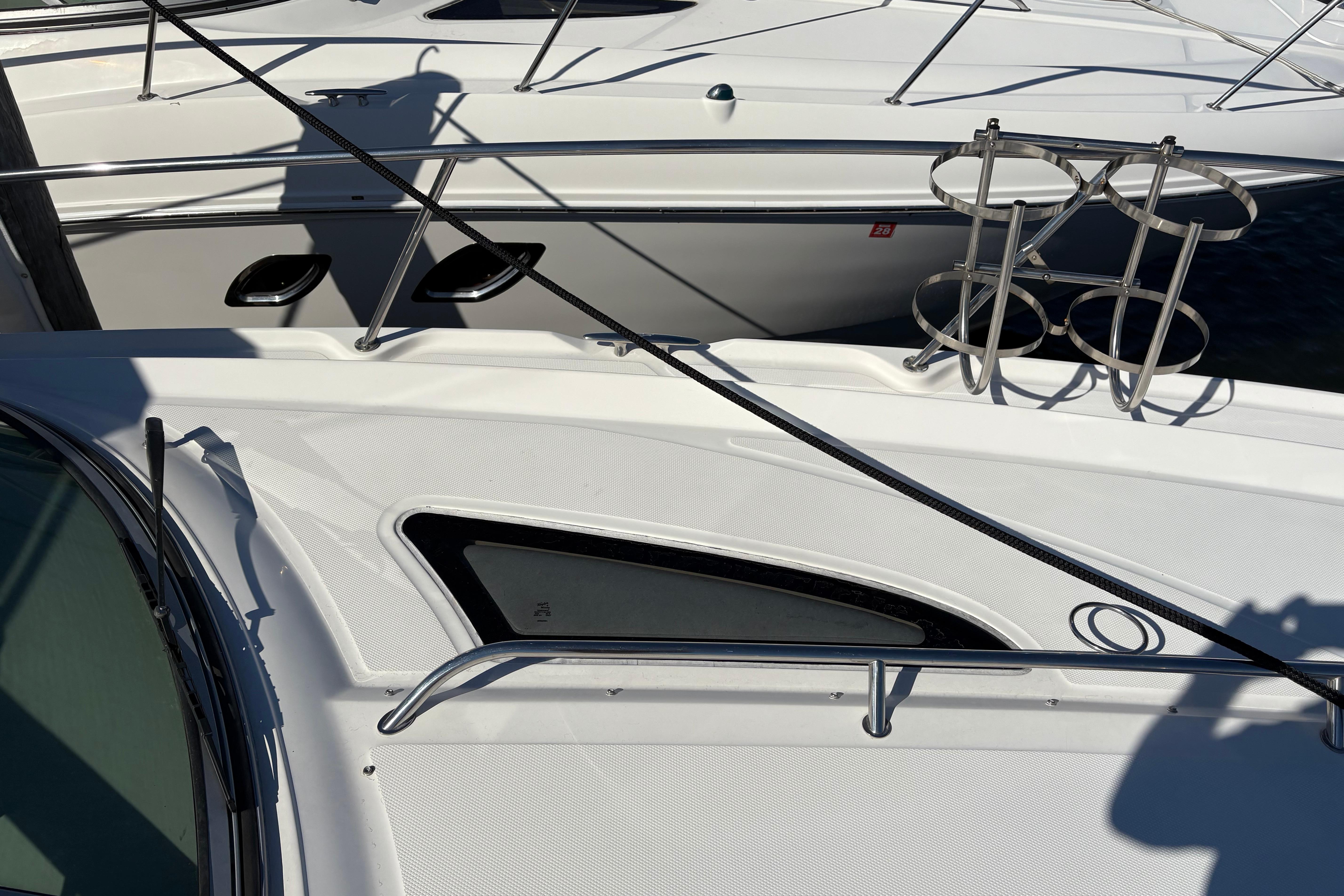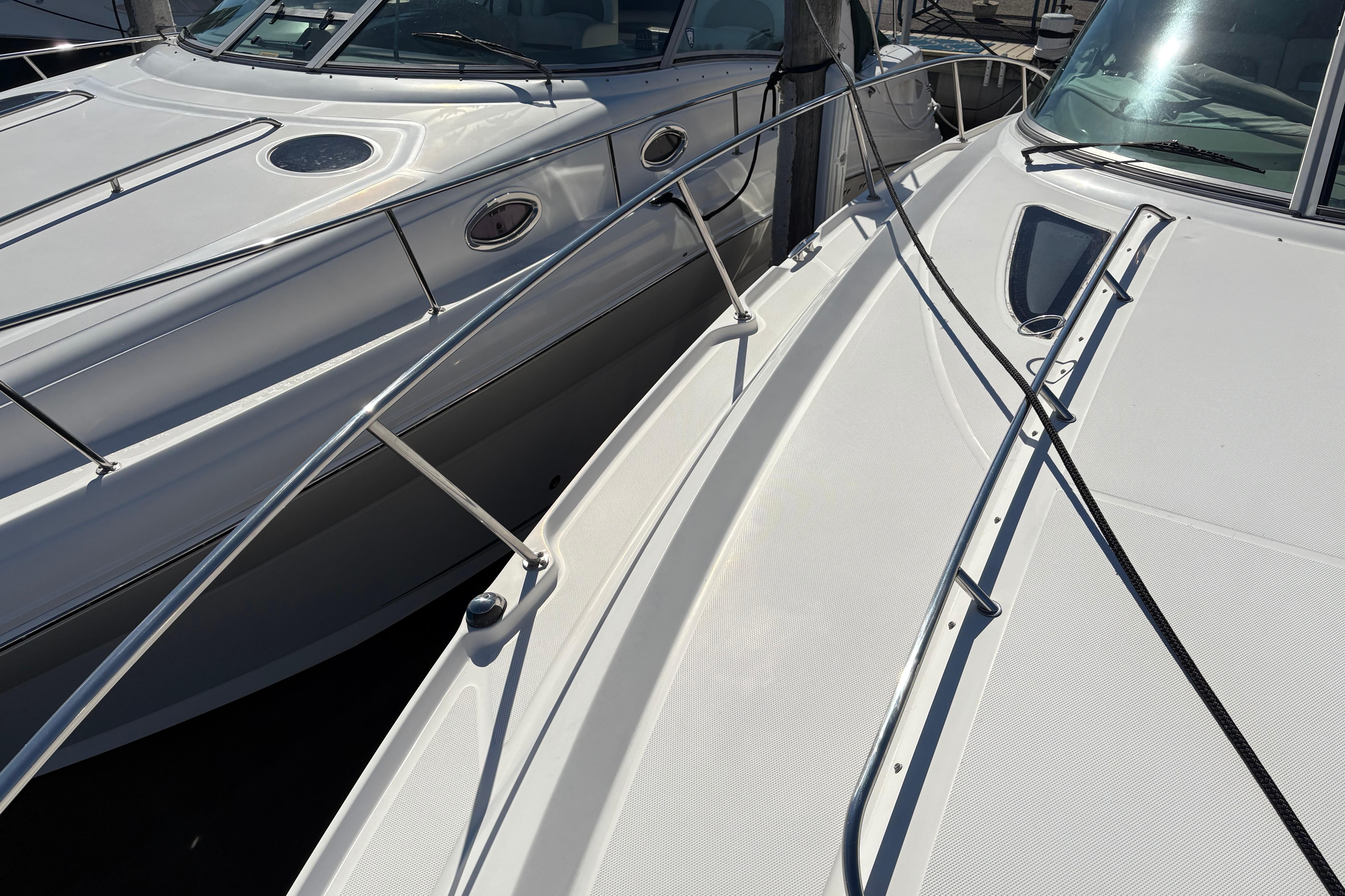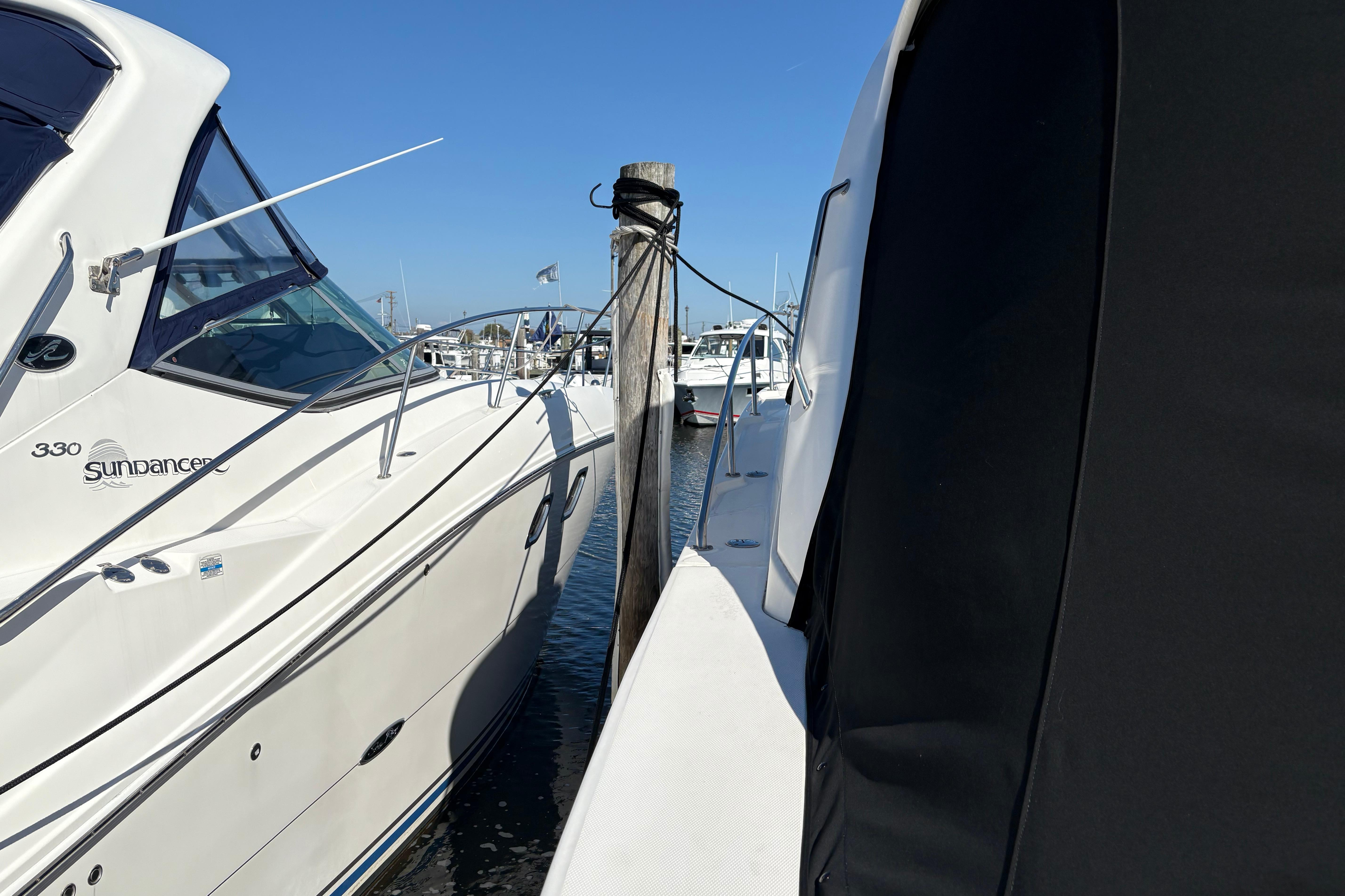 If you are looking to be ready for the 2026 season this is your boat. Here is a super clean well maintained example of the 370 Sundancer with Mercruiser 8.2 Bravo 3 I/O’s with Joystick control and Sky hook. Boat is spotless inside and out all cushions and upholstery is as new no fading stains or rips. Boat needs nothing ready and is a pleasure to show. In water until mid November