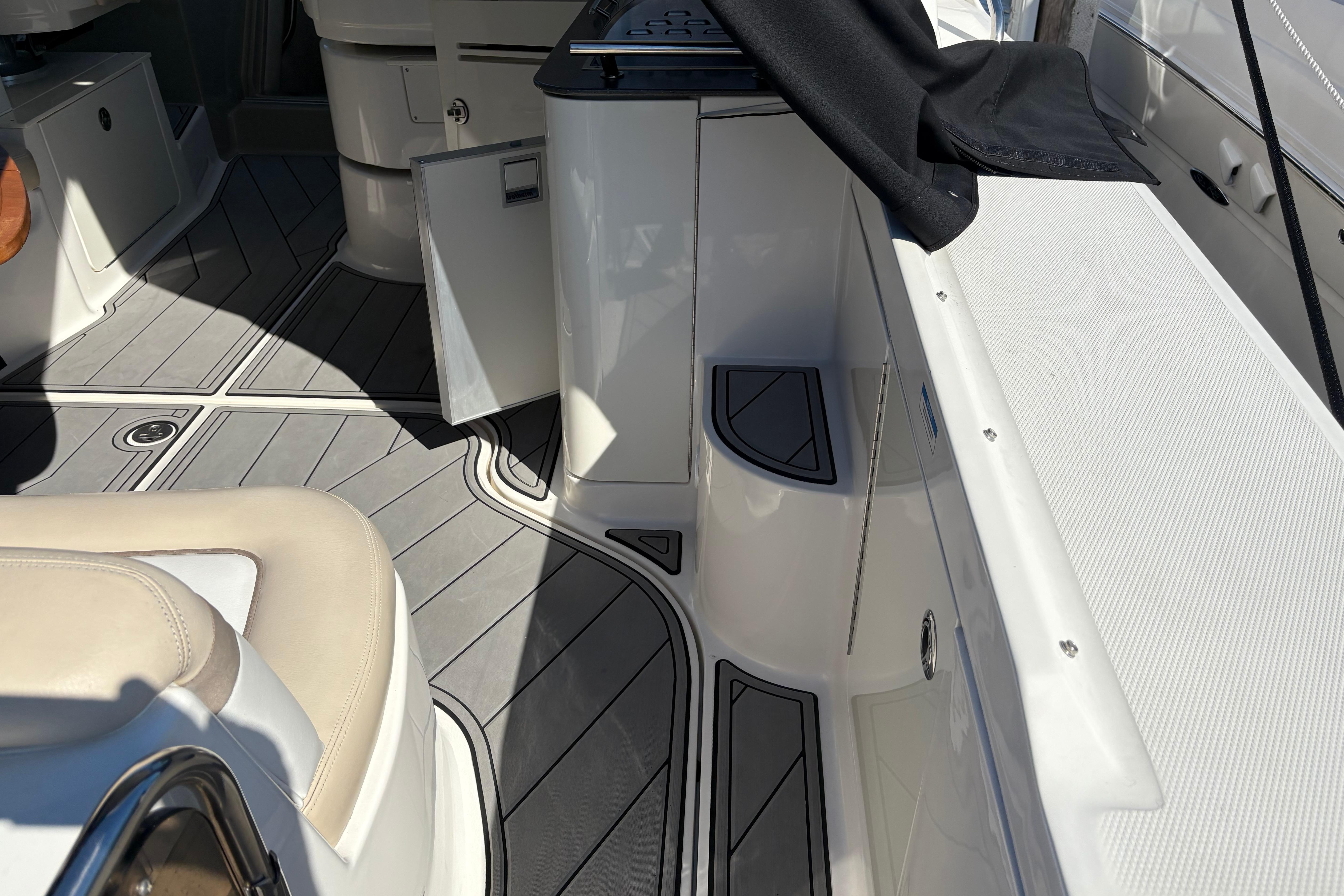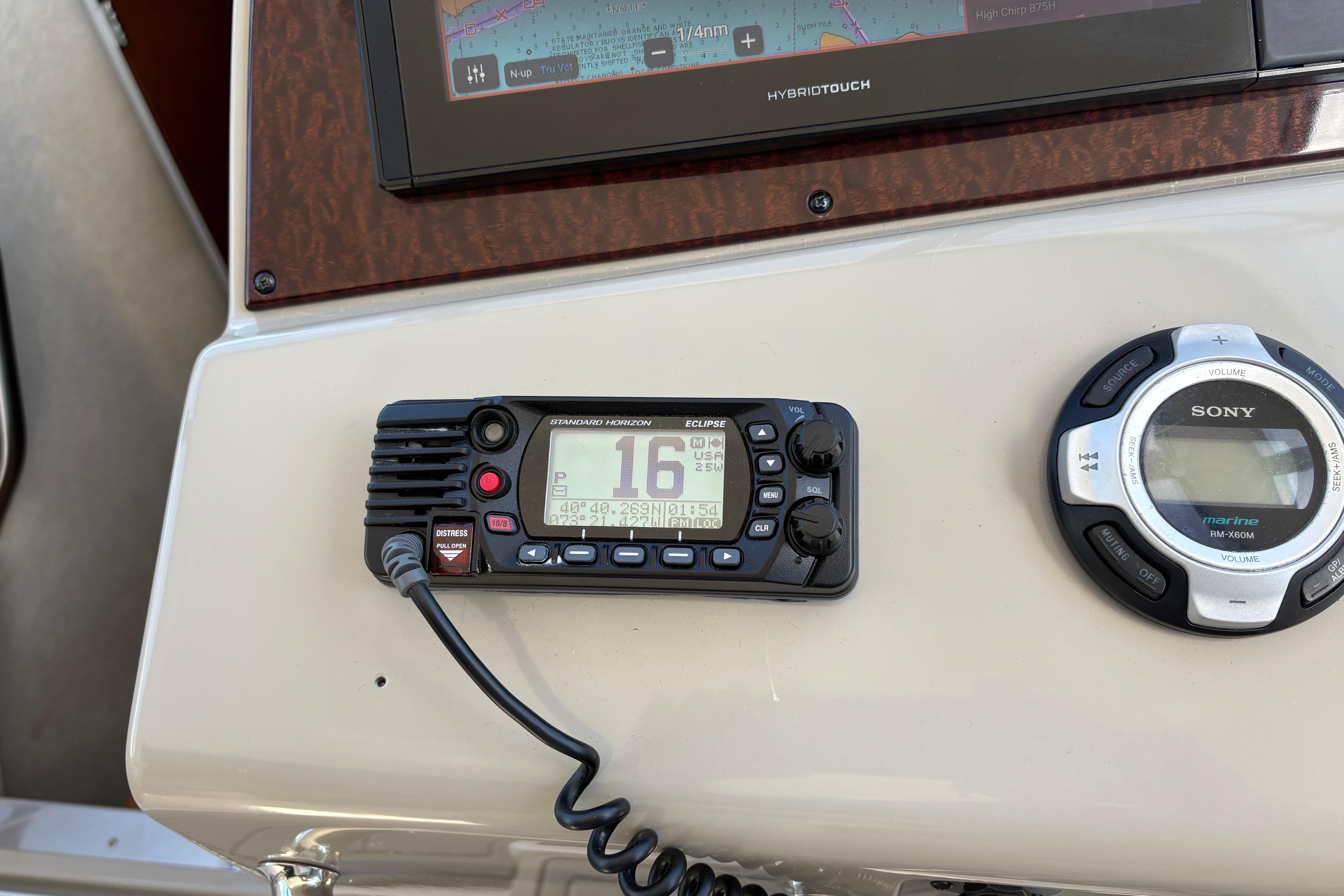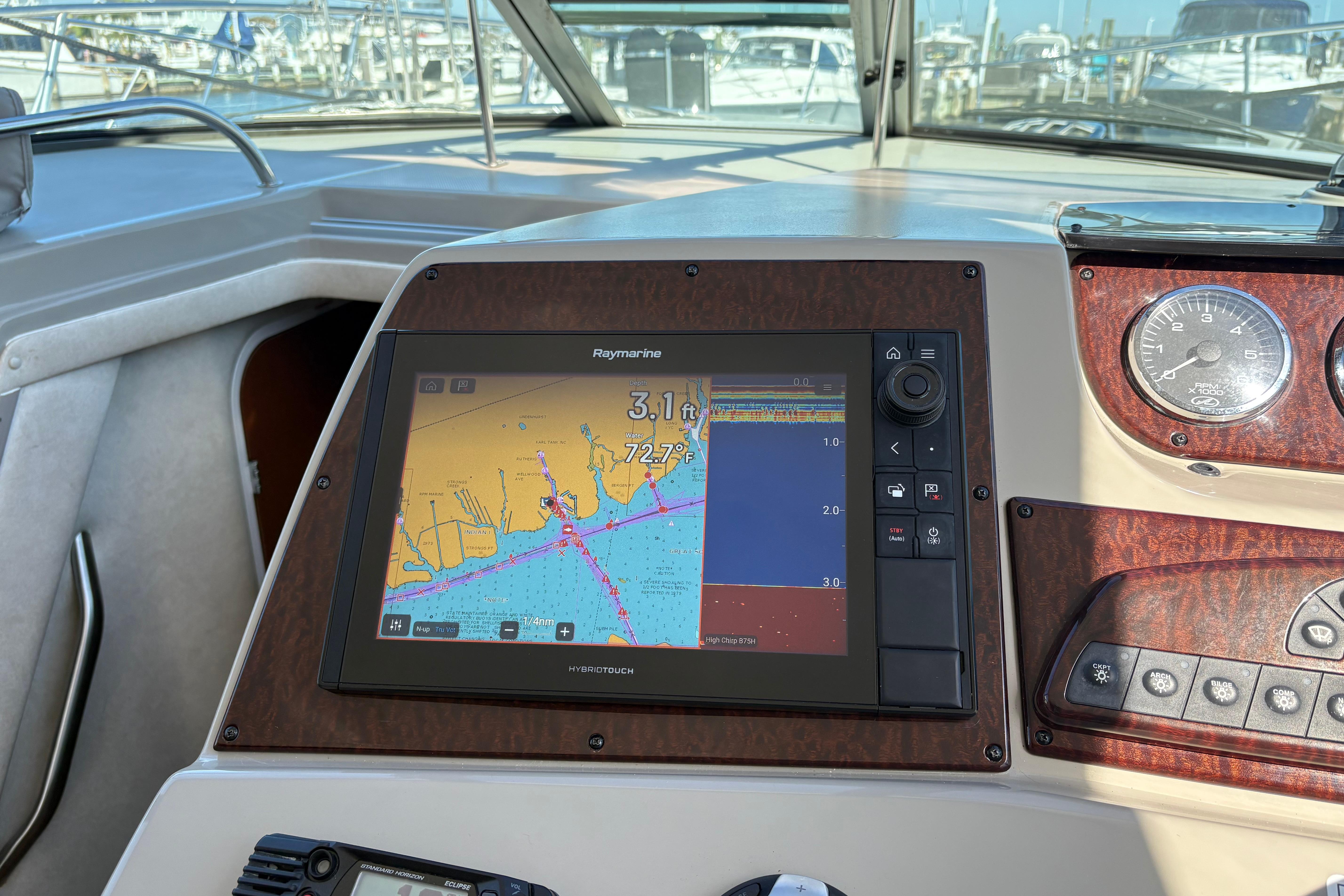 Intuitive Helm: The helm is designed for excellent visibility and ease of use, with dual-bolster seats for the captain and a full set of engine instrumentation