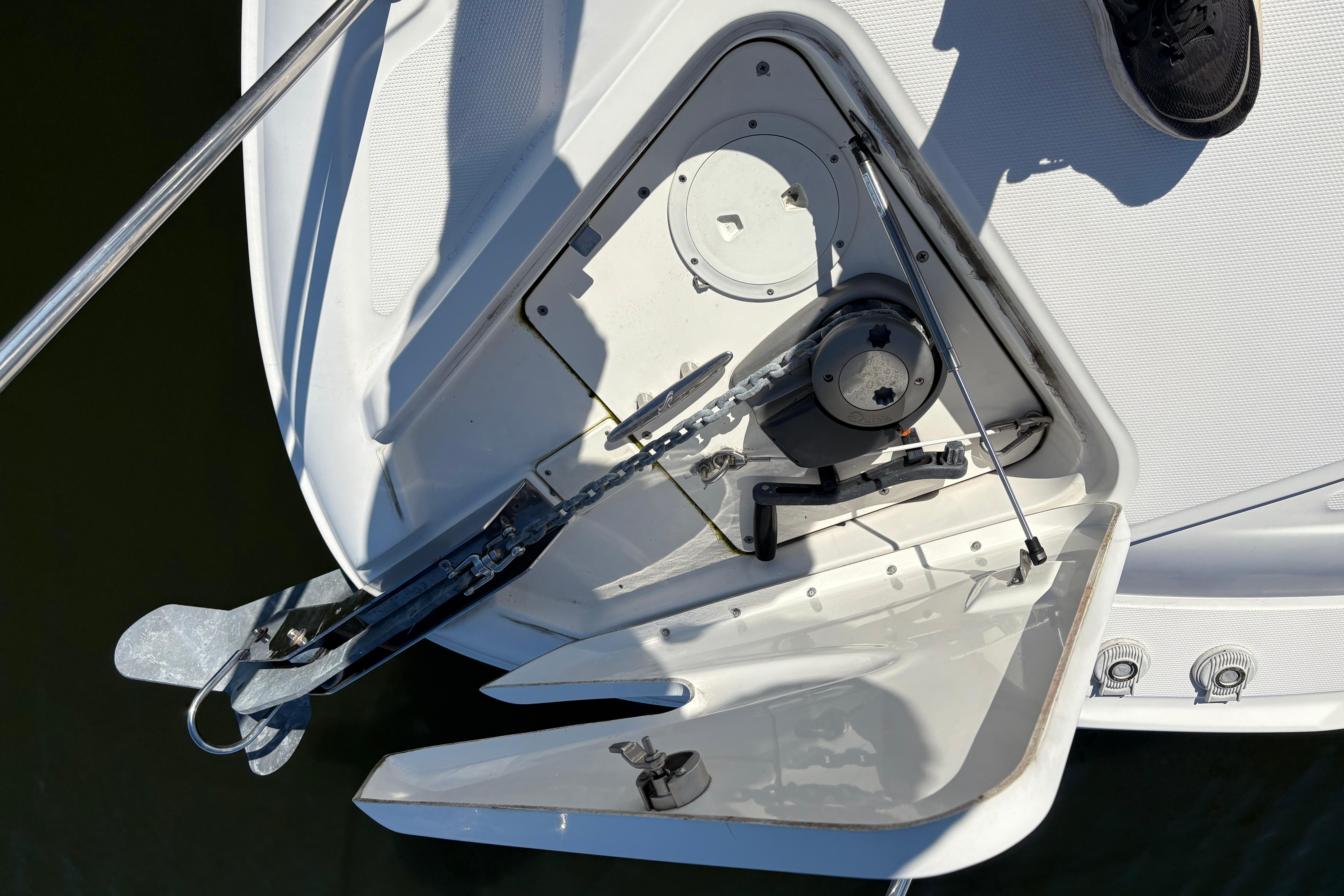 Foredeck Sun Pad: A large sun pad on the bow provides a space for relaxing and sunbathing.