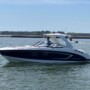 The 2013 Chaparral 327 SSX is a 32-foot 7-inch luxury bowrider/cabin hybrid with a 10-foot beam, 22-degree deadrise, and ~10,200 lb. displacement. It features a unique cabin layout with twin berths, a stand-up head, and a large, versatile cockpit designed for entertainment. Her sturdy hard top structure protects you from UV rays and inclement weather. Twin MerCruiser 5.7L 350 Mag engines with Bravo III drives and get you to where you want to be and back safely. JOYSTICK DOCKING AS WELL.