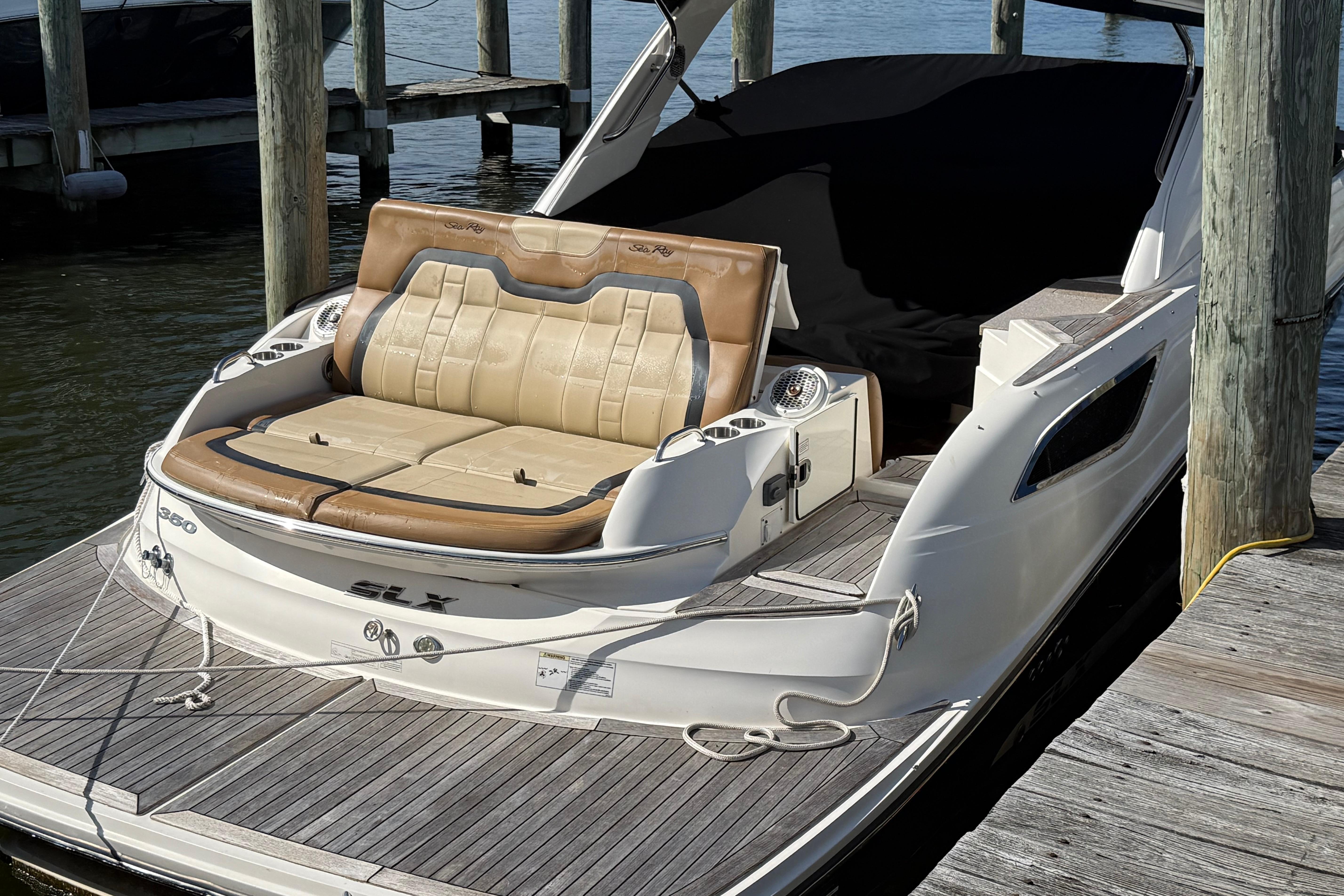 The Sea Ray 350 SLX is redefining "Day Boat." With seating for 18 underway, that means connecting with friends, family and even generations. An array of Sea Ray's Next Wave innovations provide for a superior ride and handling. And a host of cutting edge features combine in a sleek, stylish package that far surpasses the typical bow rider.