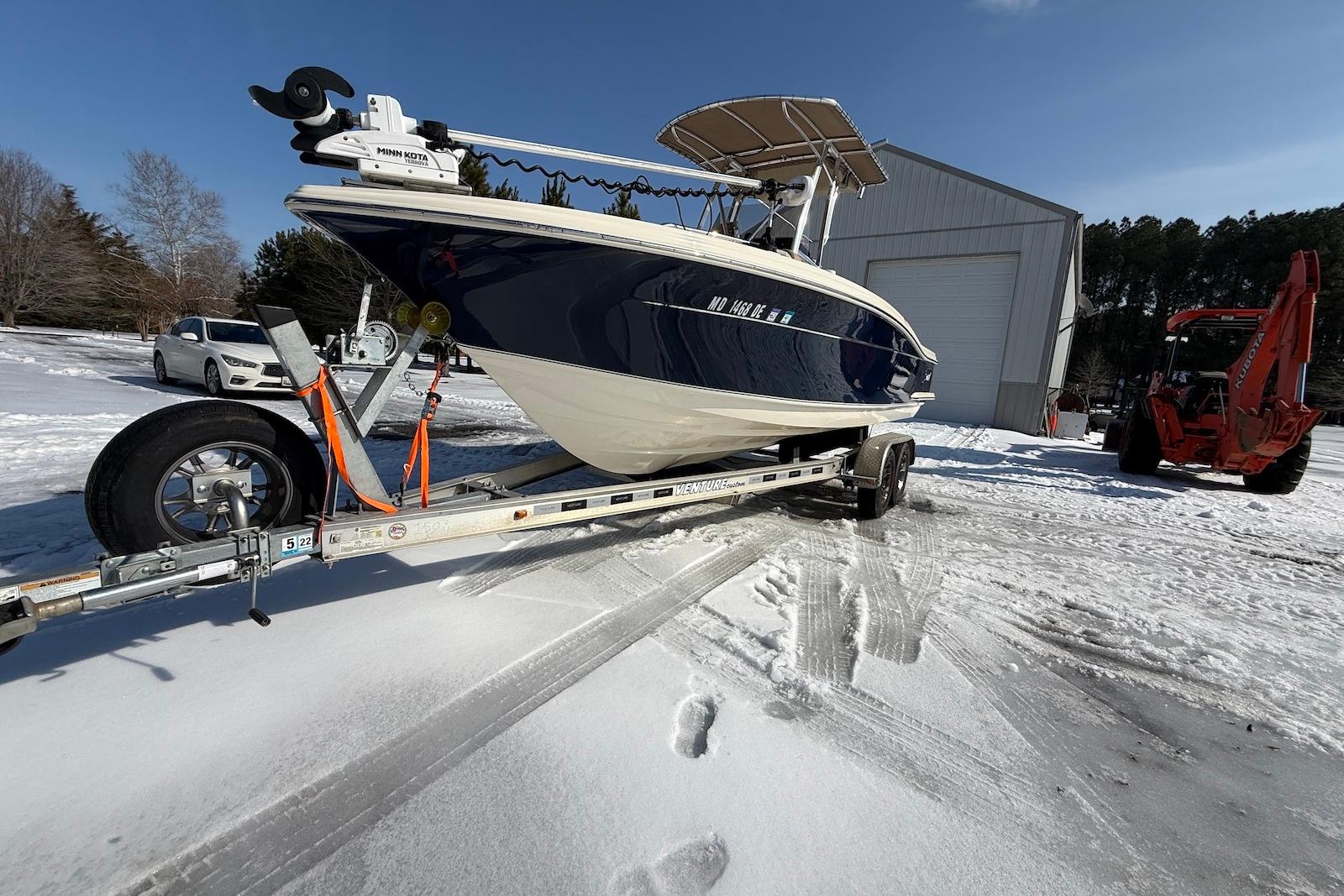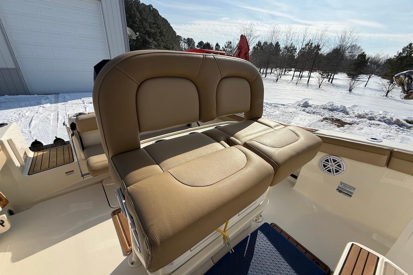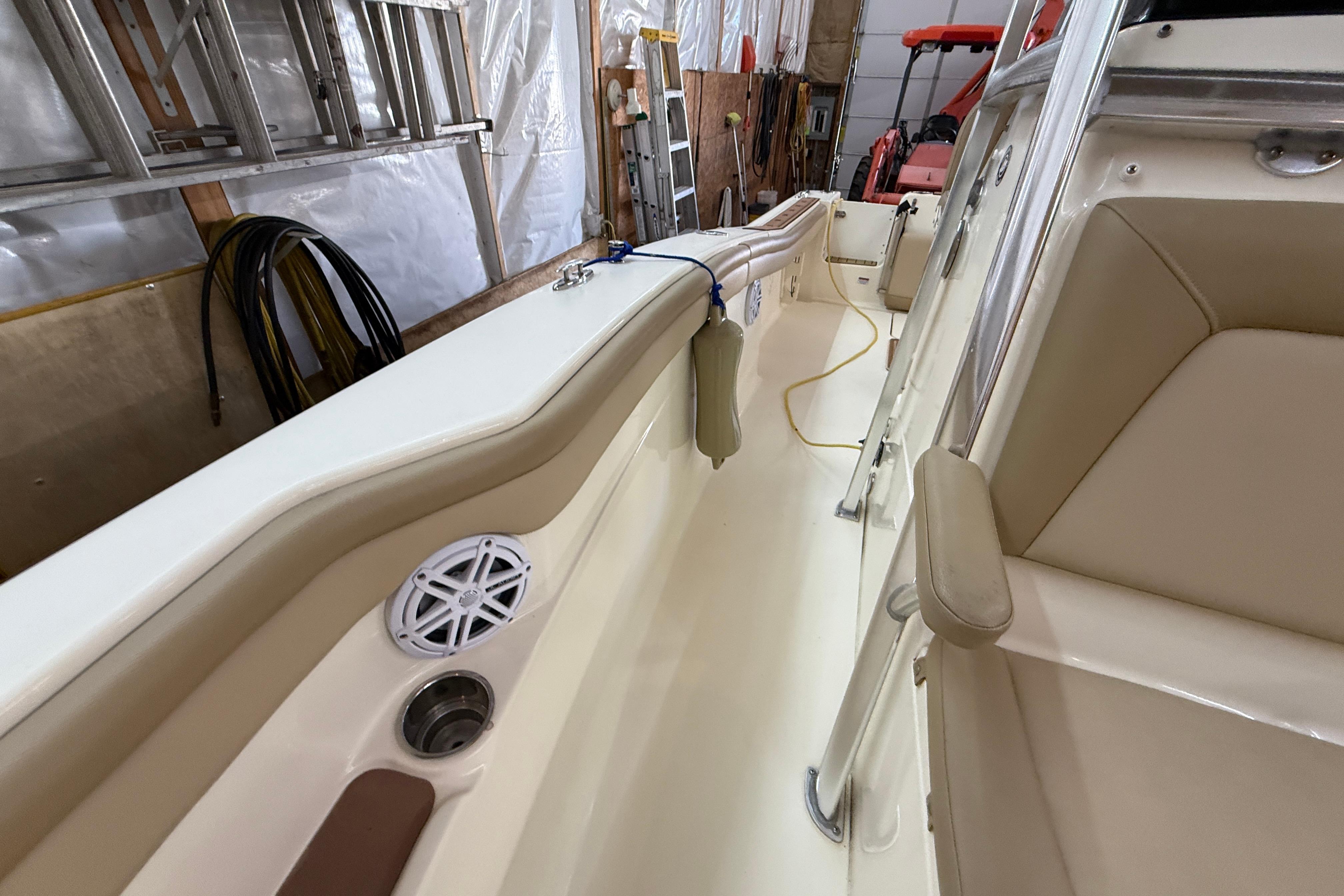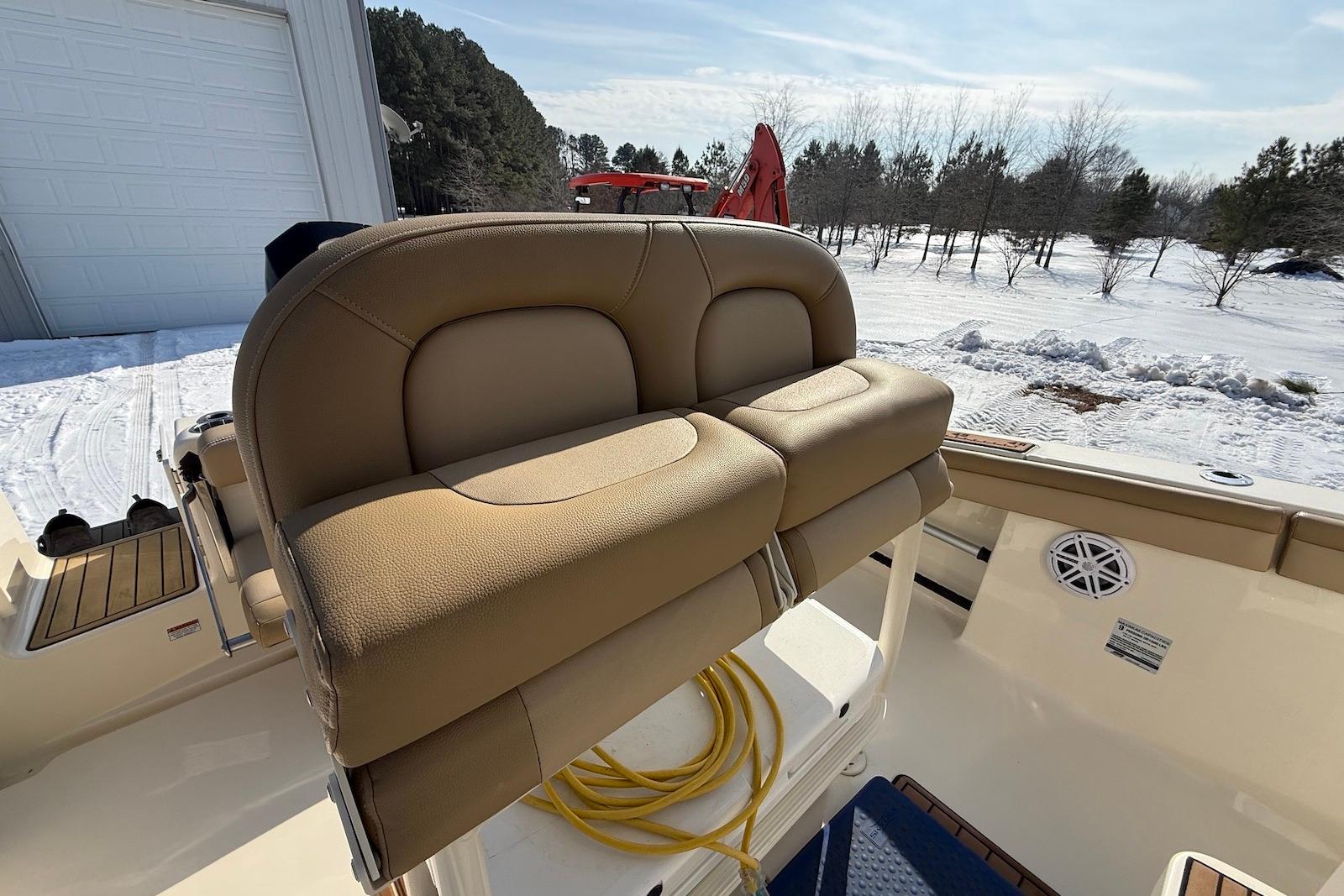 The 215 XSF is built on Scout’s revolutionary fuel saving NuV3 hull design, while the deck offers ample standard amenities for everything from serious fishing to comfort cruising. Built with 100% hand-laid fiberglass, the boat boasts a wide comfortable beam of 8’ 6” with an overall length of 21’ 6”. A notable standard feature onboard the 215 includes not only the forward seating in the bow, but also a forward sun lounge/coffin box complete with a cushion.