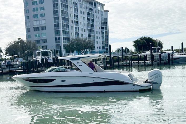Experience the perfect blend of luxury, performance, and cutting-edge technology with this stunning 2020 Sea Ray SLX 350 Outboard, powered by preferred twin 400HP Mercury Verado engines taking this vessel up to top speeds well over 55mph. Meticulously maintained, this vessel delivers exceptional power and a smooth, exhilarating ride, making it the ideal choice for those who demand the very best on the water.