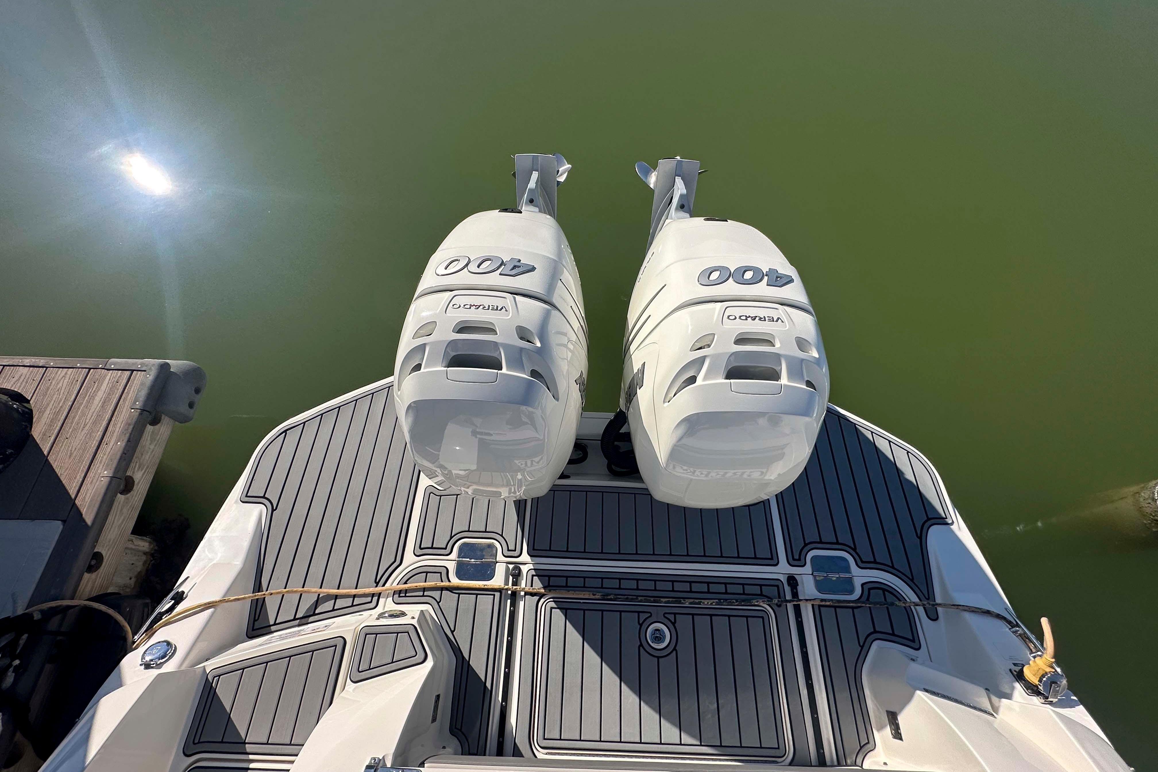 - Power & Performance: Twin 400HP Mercury Verado outboards deliver an impressive 800HP, ensuring quick acceleration, smooth handling, and top-notch fuel efficiency.