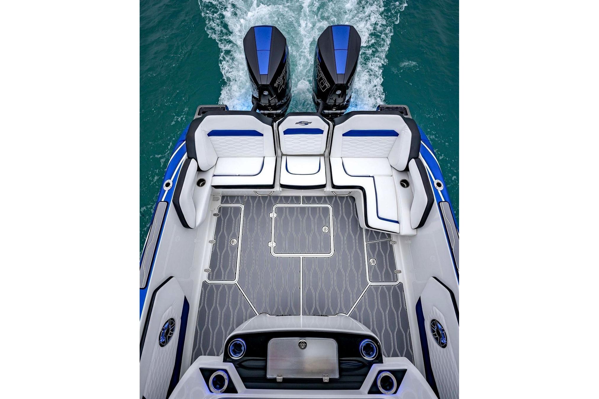 Equipped with a deep-V hull and performance-engineered design, the 34 CCX offers a smooth, confident ride even in choppy conditions. The cockpit is spacious and thoughtfully laid out, featuring luxurious seating, top-tier upholstery, and high-end finishes throughout. A well-appointed helm showcases advanced electronics, ergonomic controls, and crystal-clear displays—everything you need for serious cruising or high-speed fun.