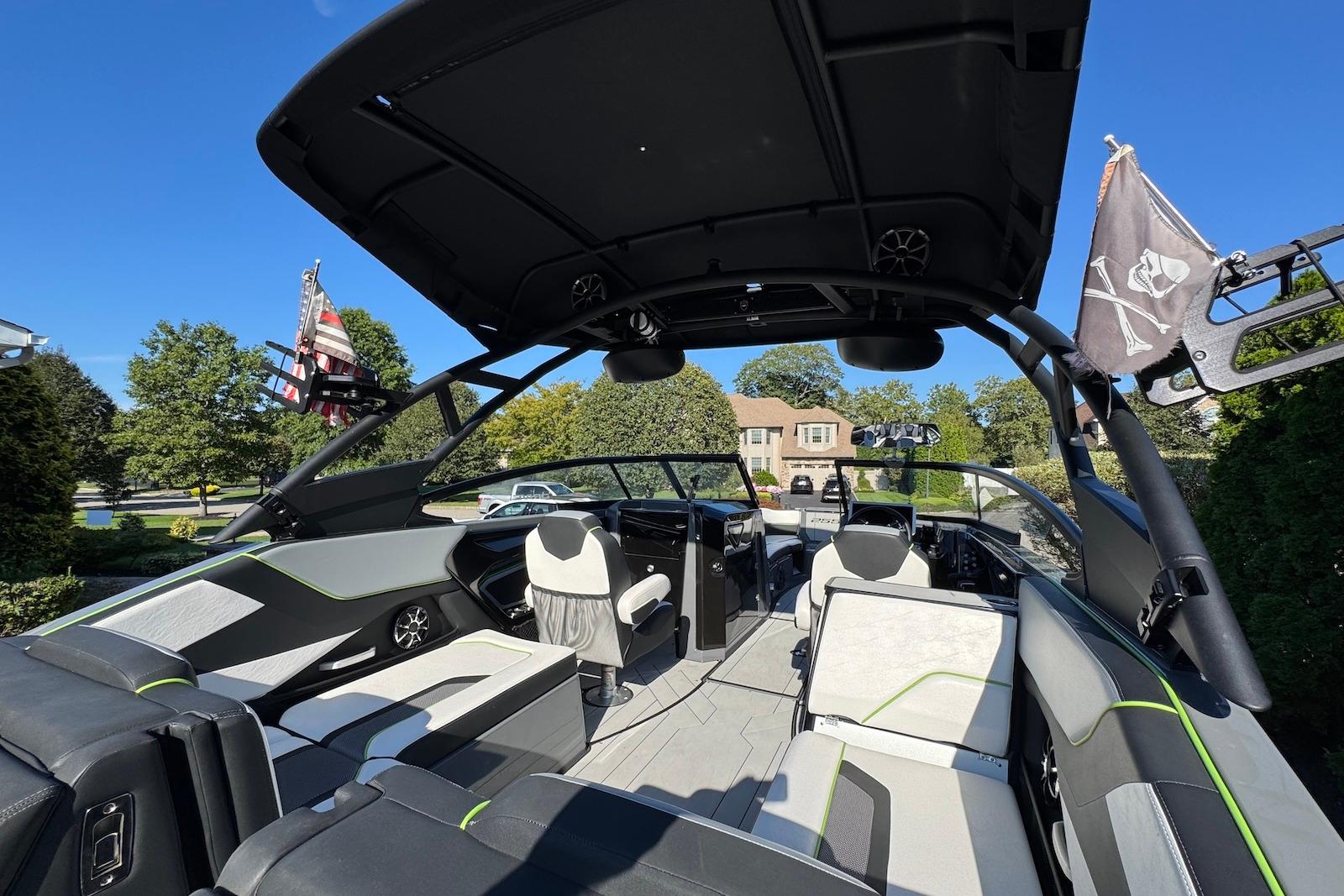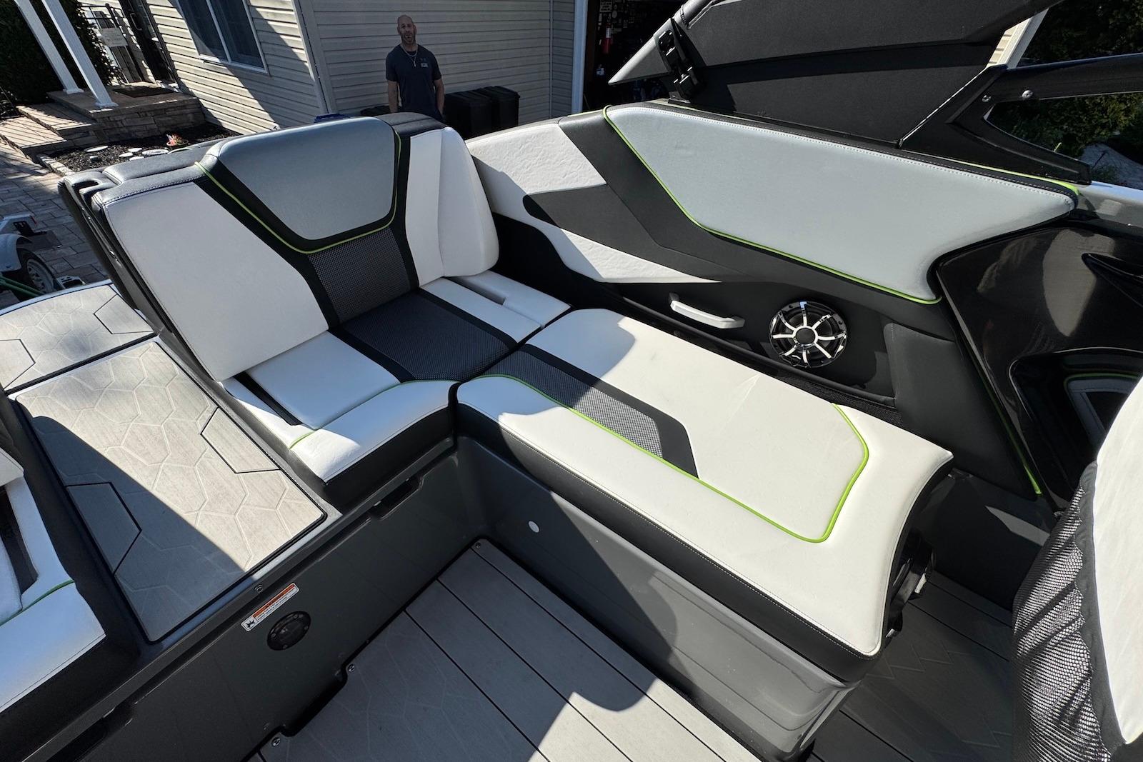 Upgraded high-performance sound system featuring Wet Sounds stereo, Kicker tower speakers (4 additional), and a subwoofer for immersive wake sounds.