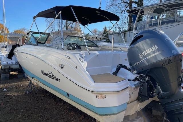 Whether serving up a family beach party or facing down gnarly weather conditions, the 223 Dual Console responds ably to any captain’s command. Its rugged Deep Vee hull and U-shaped wraparound cockpit ensure a comfortable a ride for everyone. A panoramic walk-through windshield, enclosed dressing room, leather touch upholstery and Infinity® stereo system are just a few of its creature comforts. A Seadek transom landing and forward and aft boarding ladders extend the fun beyond the boat. Take it up a notch with the optional fishing package, which includes a live bait well and fishing seat.