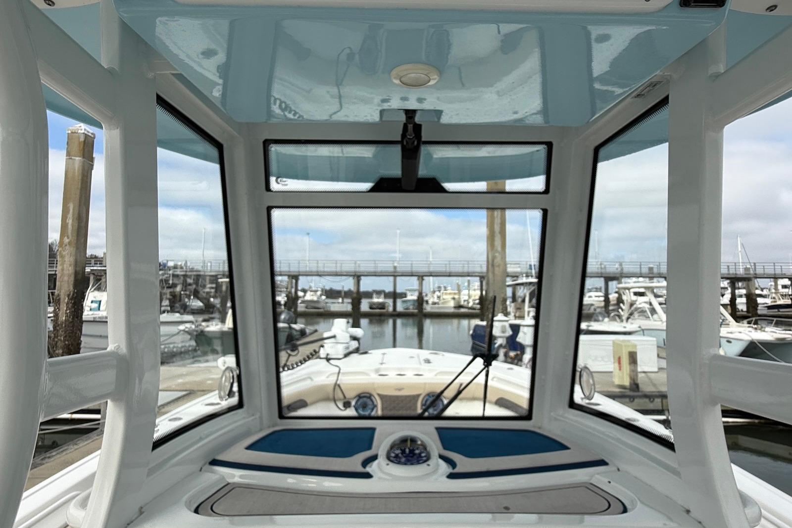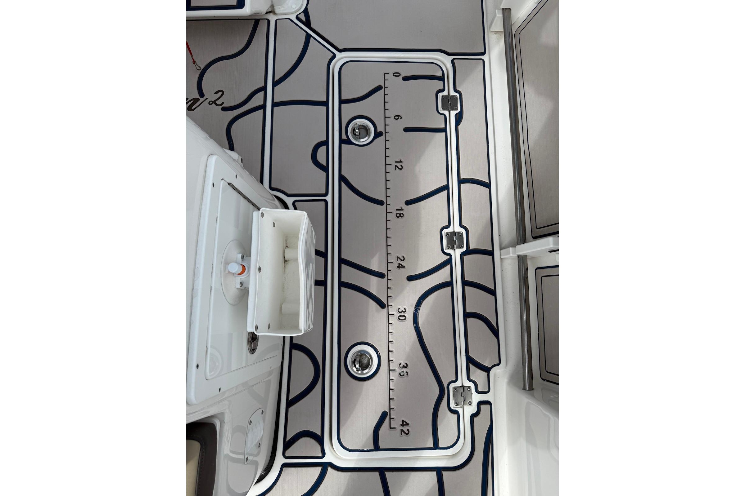 - Livewells & Storage: Equipped with twin 28-gallon livewells and two 30-gallon macerated in-floor fish boxes.