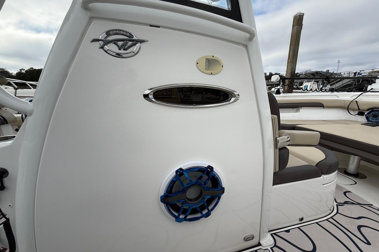 Audio & Lighting: Integrated JL Media Master 105 with 8 M6 speakers & 10" subwoofer and Lumitec RGBW underwater lights for the ultimate sunset cruise atmosphere.
