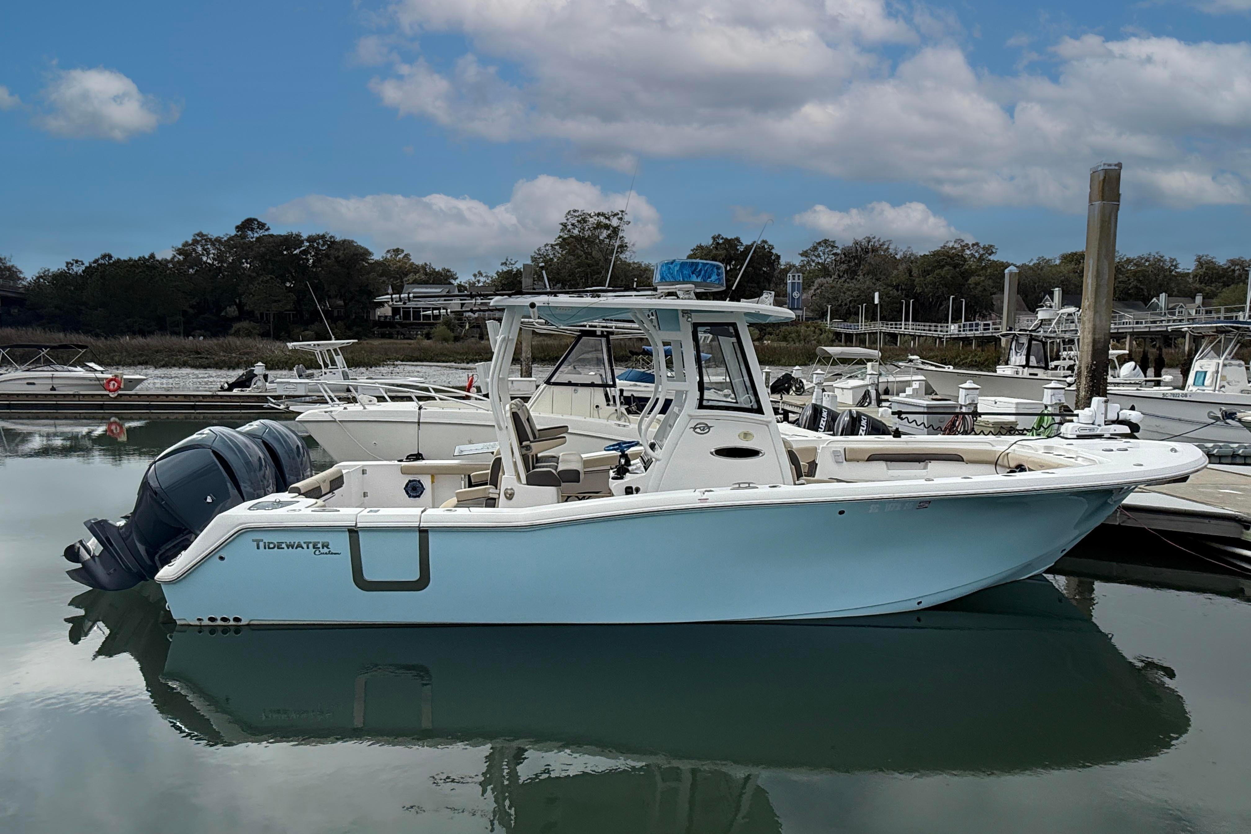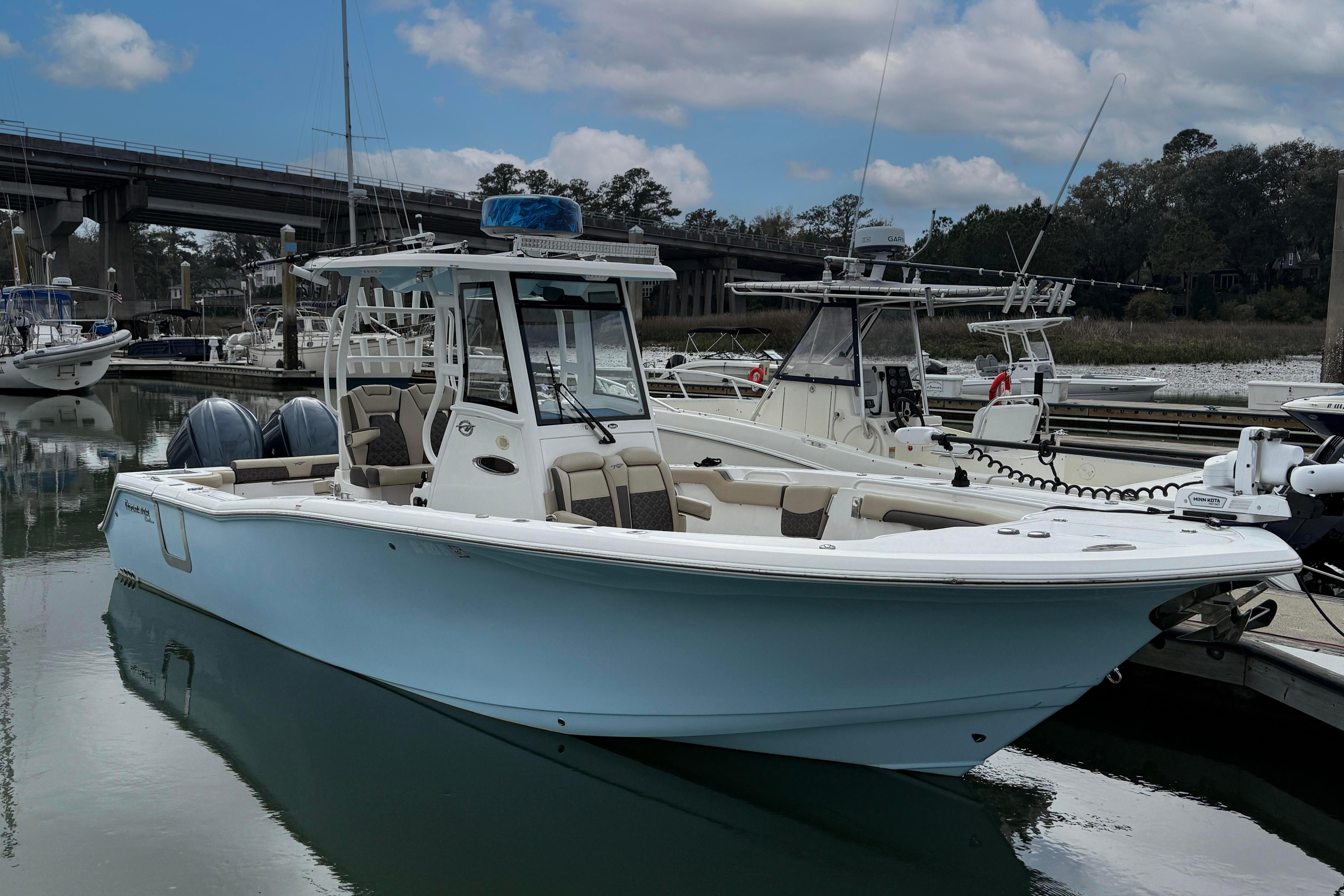 Take your offshore excursions to the next level with this 2022 Tidewater 292 CC Adventure. Known for its perfect balance of rugged fishability and family-friendly luxury, this center console is a serious offshore performer with a sleek, modern aesthetic. This vessel is designed to handle chop with confidence while providing a comfortable, high-end experience for everyone on board.