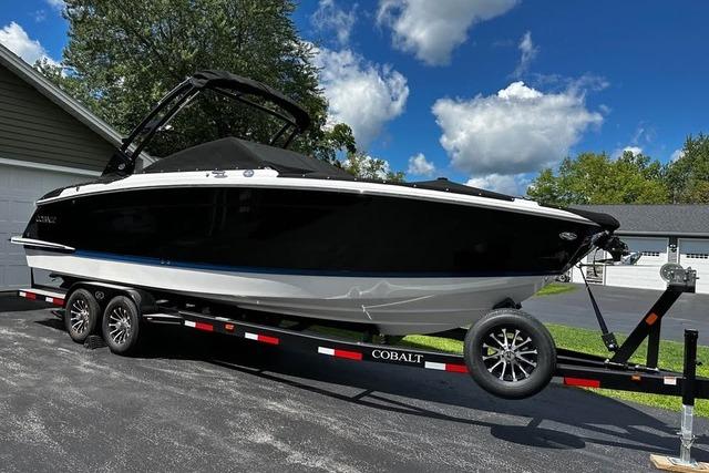 This single owner freshwater only 2023 Cobalt R8 Bowrider with 2023 Trailmaster Vanguard custom dual axle trailer w/ spare tire/aluminum rims/pad jack/led lights is new to the market and won’t last at this price. This boat is in impeccable condition and has only been quick launched during the summer and has been stored in heated indoor storage during winters. The vessel has a Mercruiser 8.2L MAG (380 hp) w/DP outdrive with only 75 Hrs w/ Mercury platinum warranty thru August 2030