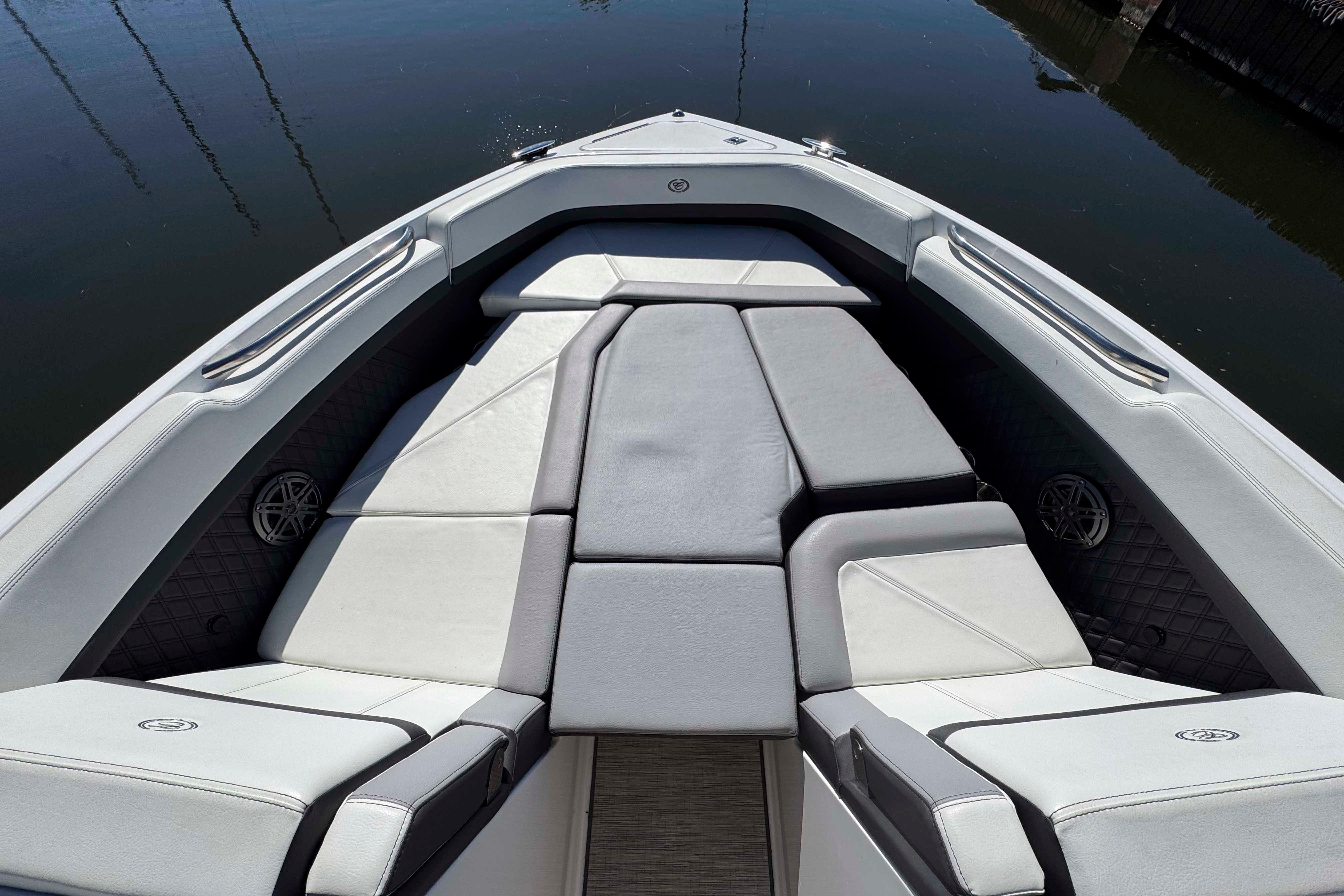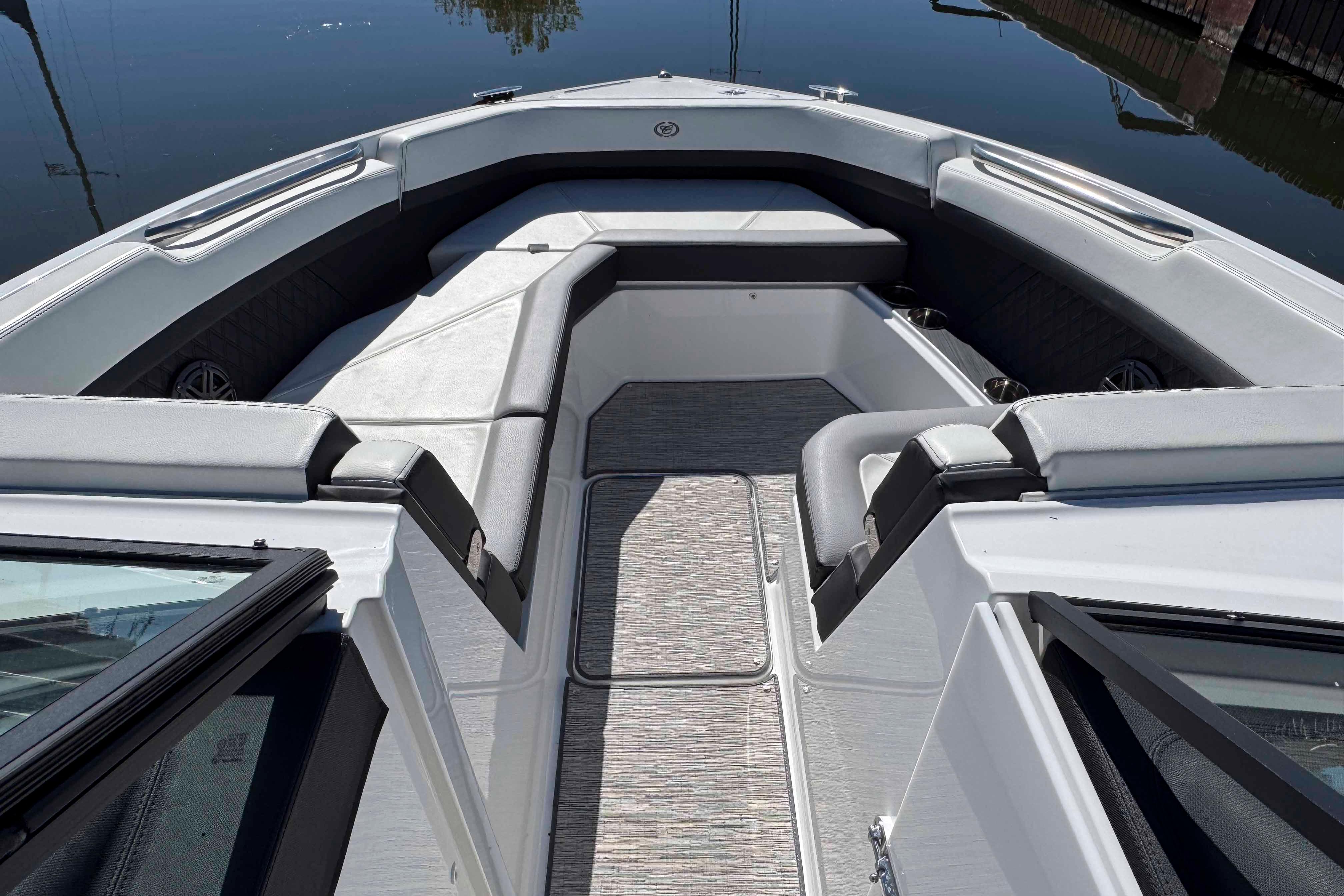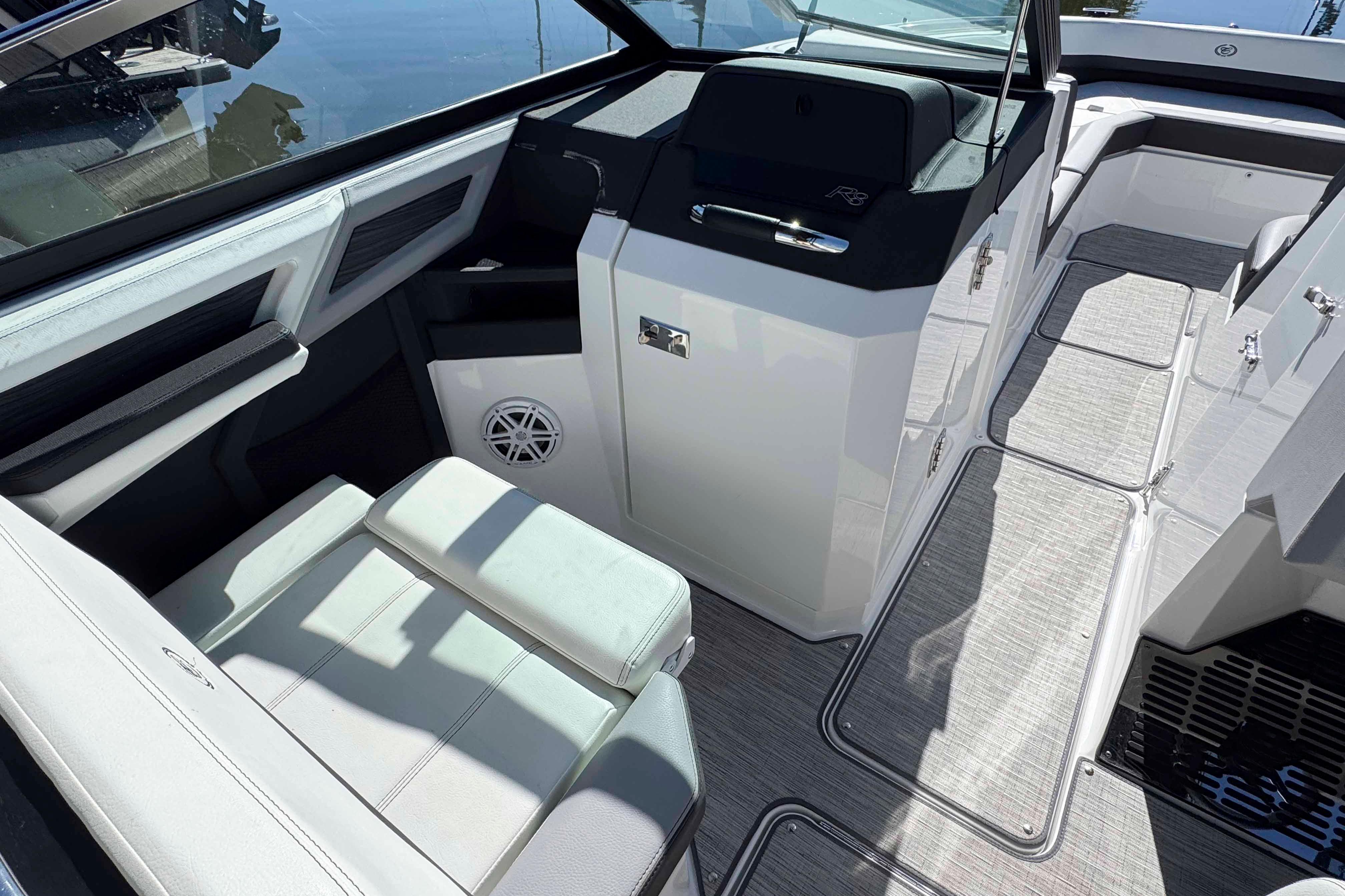 The 2023 Cobalt R8 delivers a perfect mix of luxury, performance, and family-friendly design. With its spacious layout, deep cockpit, and high freeboard, it offers a secure, comfortable ride even in rougher water. Premium materials, refined details, and intuitive controls make every outing feel effortless. Whether you're cruising, anchoring, or towing water toys, the R8 handles it all with power and grace. It's the ideal choice for those who want sophistication and capability in one stunning package.