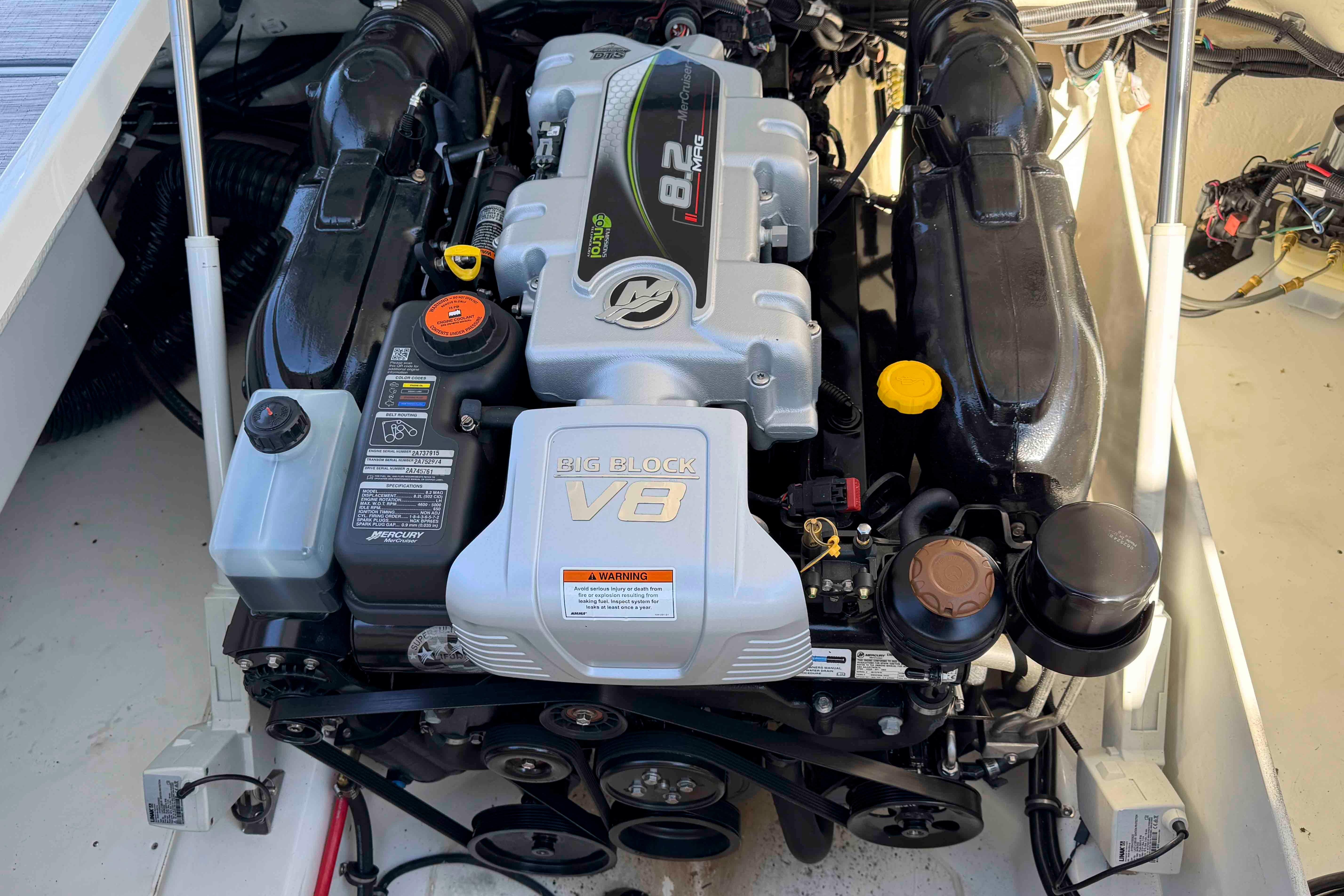 - Mercruiser 8.2L MAG (380 hp) w/DP outdrive with only 75 Hrs w/ Mercury platinum warranty thru August 2030